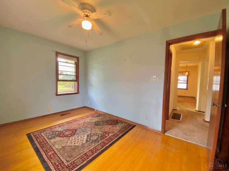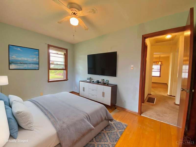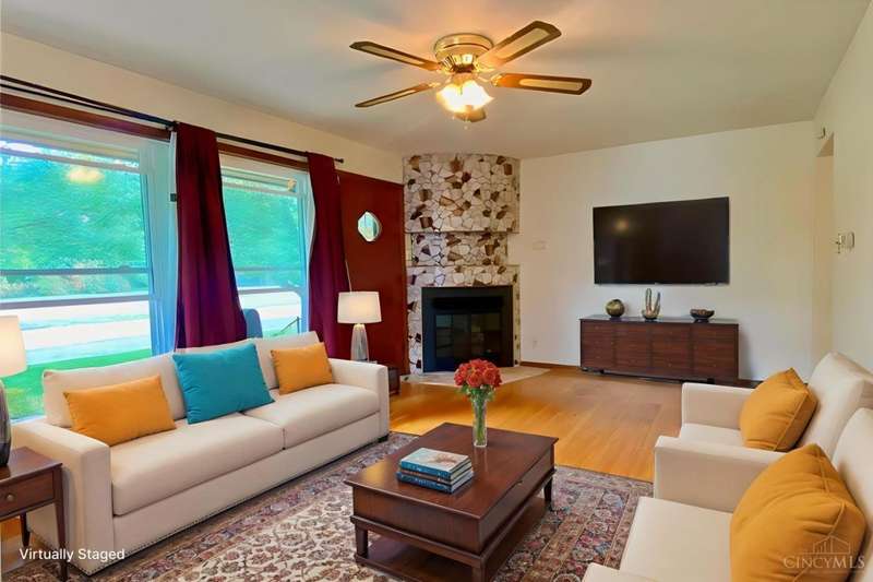 Featuring over 1,450 sqft this ranch with basement & great recreation + a fantastic yard, 2 Bedrooms, gorgeous hardwood flooring, a fenced yard and oversized 20x11 one car garage + energy efficient solar! New Roof at closing! Noticed the excellent curb appeal leading to the 18 x 12 family room with gas fireplace, insulated picture window & gas fireplace. Open kitchen has smooth top range front door, refrigerator wrap around countertops plus breakfast bar overlooking the dining room. Two bedrooms access the Bathroom with classic tile and retro appeal. The basement has a huge recreation, bar, game area. Basement utility with tub, softener, washer & dryer. Utility shower and fireplace deemed not warranted. Furnace is high efficiency, New Water Heater. Sale Subject to buyer acquiring the Solar lease in place @ graduated $54/mo for 24yrs * see attachments. Covered patio with fenced yard, shed & access to covered area to garage