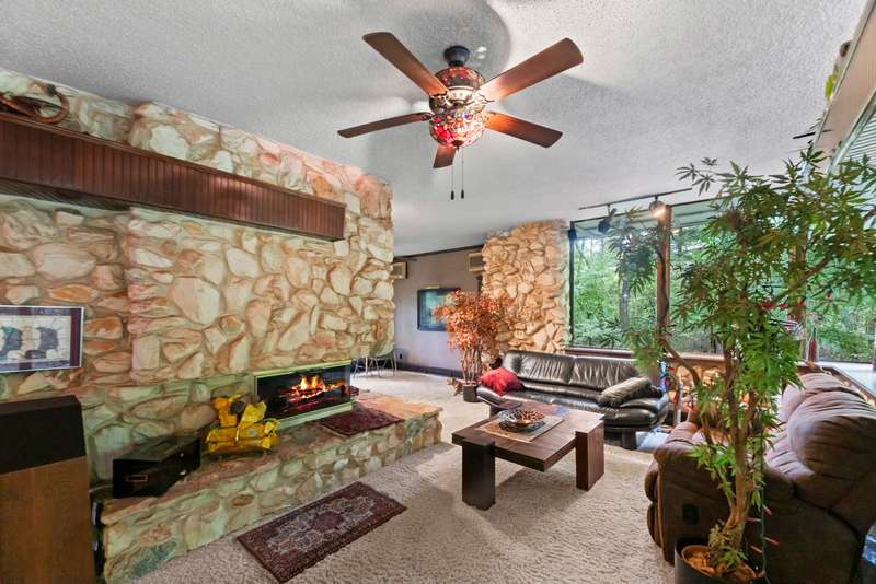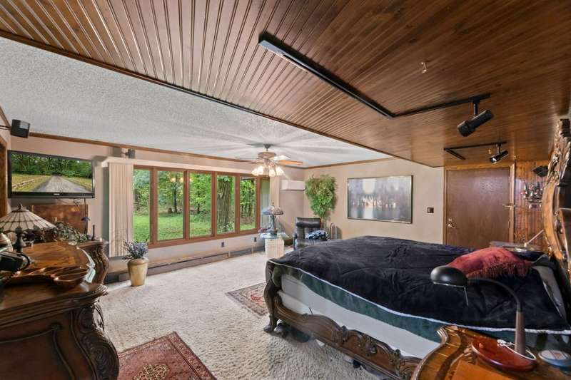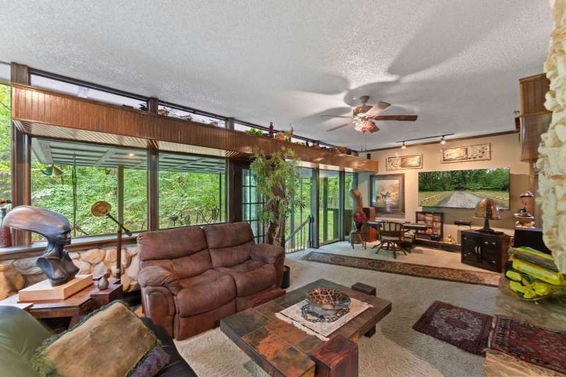 Discover a truly unique home designed by renowned architect LaVerne Lantz. This one-of-a-kind ranch masterfully blends timeless mid-century modern design with the beauty of its surrounding wooded landscape, thanks to striking floor-to-ceiling windows and solarium. A massive stone fireplace artfully anchors both levels of the home. Currently 2 beds, 2 baths encompassing 2,200 square feet, but the layout could easily be modified to accommodate its original 4-bedroom form. The partially exposed lower level offers more space for entertaining and is just as bright and inviting as the main floor. The location offers unbeatable convenience- just minutes to I-94 and charming Oconomowoc town center. Even with this incredibly convenient location, the setting is private, offering an unheard-of 2.4 acres of peaceful seclusion and wildlife viewing rivaling the Northwoods.