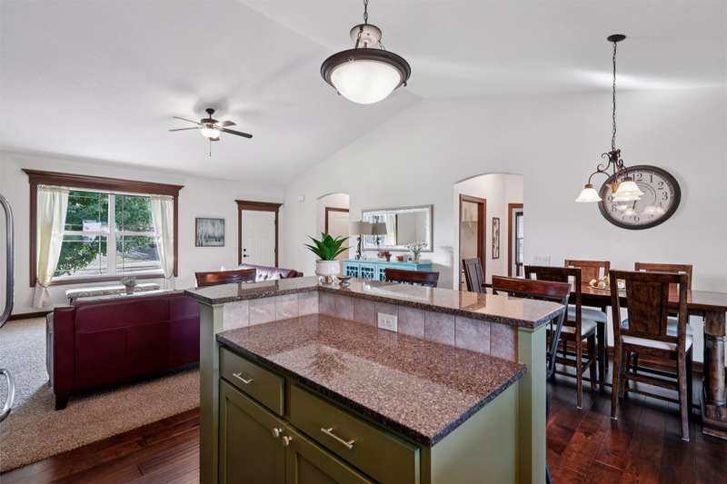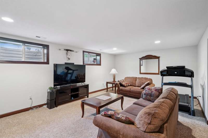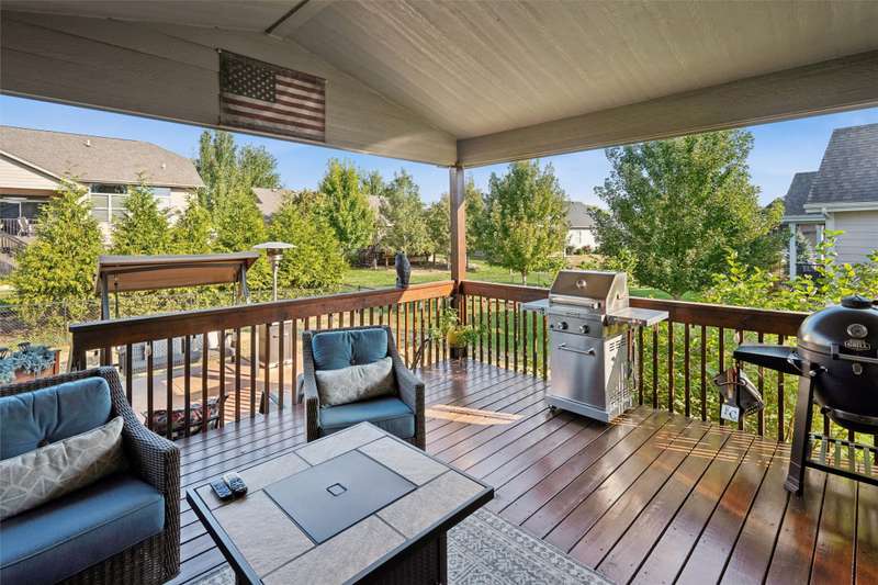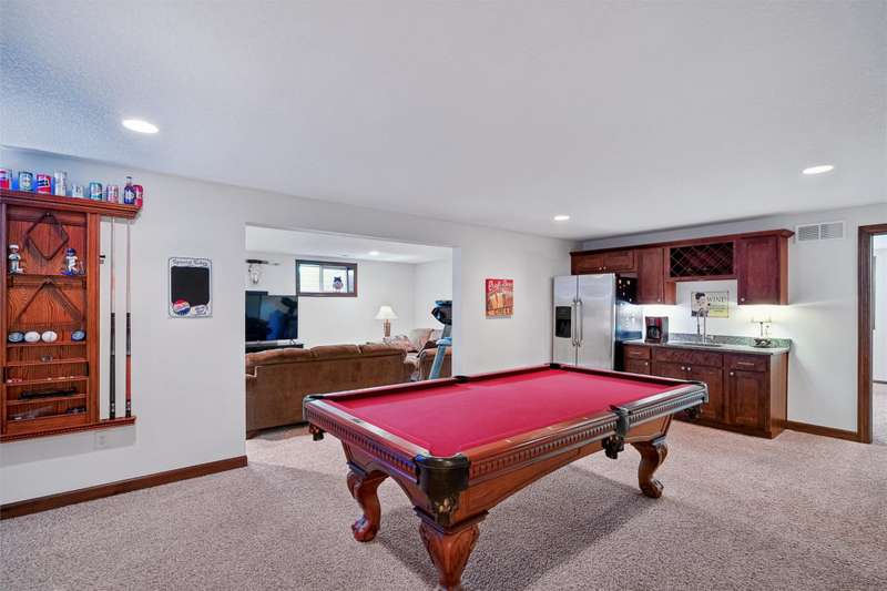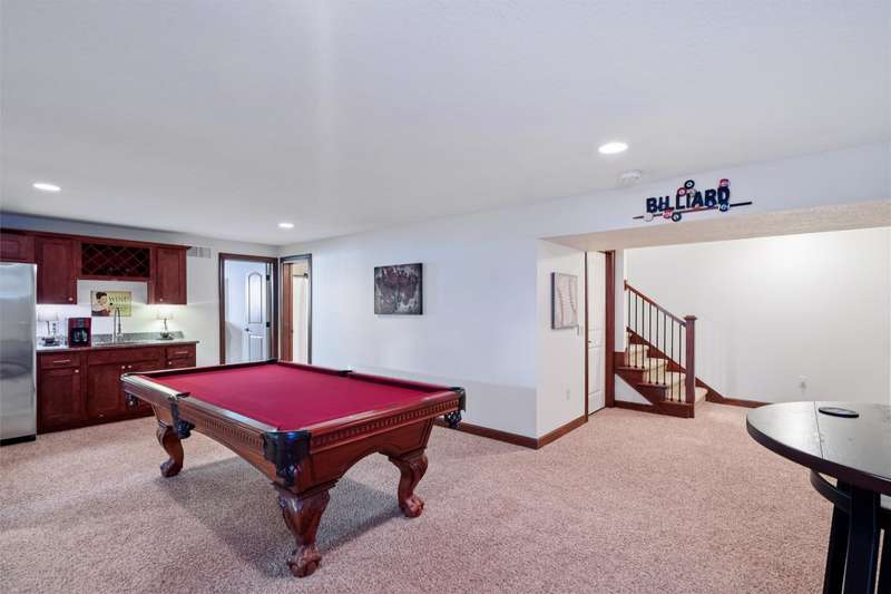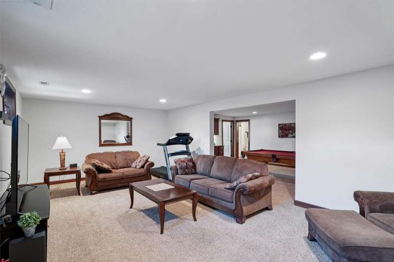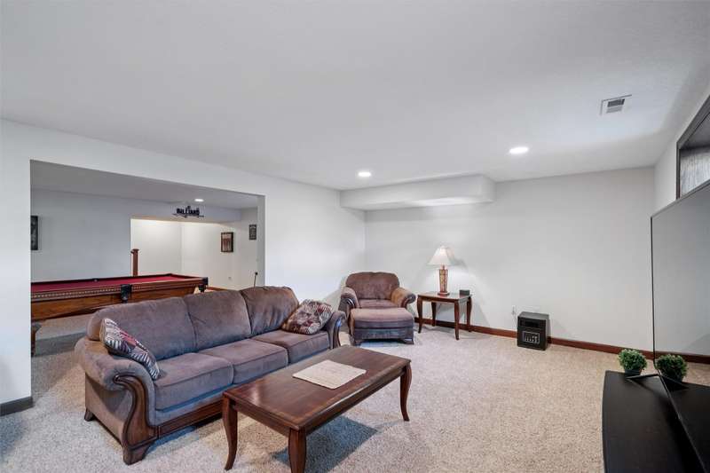 Move in ready ranch home on Phoenix Drive in Clive! Walking in the front door you'll see an open floor plan that has been meticulously cared for. The front room immediately draws your eyes to the eat-in kitchen and outdoor covered deck space located right off the kitchen. The outdoor area is such an inviting space set with furniture to stay with the home. Stepping off the deck you'll find more room to enjoy the outdoors with an impressive stamped patio! On the main level of this home you'll find the bright white laundry area, three spacious bedrooms with one currently set up as a home office. As you walk downstairs you'll find a rec area to impress, complete with a wet bar, full fridge, and pool table. Another spacious family room, bedroom, and bathroom are located in this finished basement. Ample storage located in the HVAC room. With most indoor and outdoor furniture to stay, this home is truly ready for you!