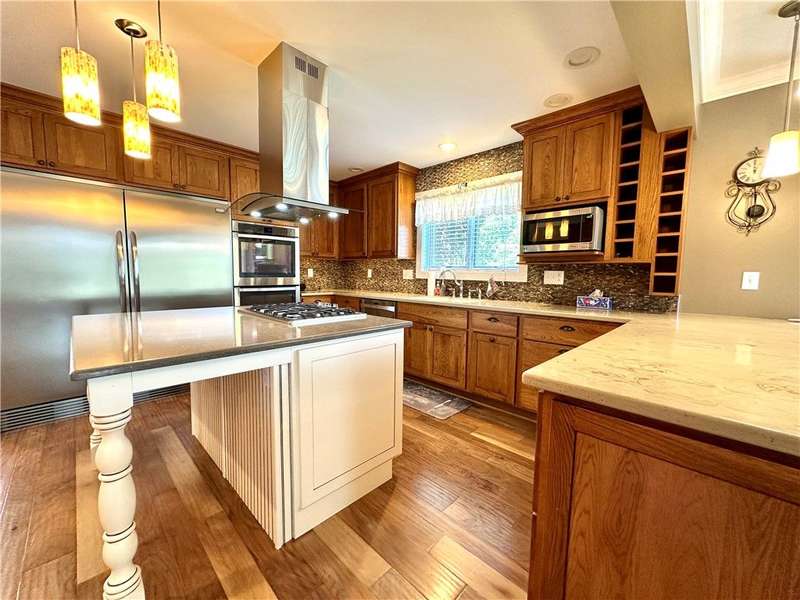 Beautifully updated and remodeled, this year-around 2 bedroom, 2 bath home offers the perfect blend of lake living, comfort, quality, and style. Spacious kitchen features lovely quartz & Corian counter tops, extra large refrigerator, double wall oven, gas cooktop, gorgeous hickory cabinets, counter seating, and even a spacious walk-in pantry. The kitchen area flows seamlessly into a large dining room w/ pellet stove, and then on to a stunning great room highlighted by floor to ceiling wall of windows allowing tons of natural light. Large 1st floor owner's suite w/ walk-in closet, and en suite bath sporting an awesome walk-in shower. Oversized 2 car, 32x30 garage with extra storage on the 2nd story, concrete floors, and electric - perfect for parking needs, workshop, and storage. Convenient 1st floor laundry room, whole house water filtration and UV systems, water softener, 2 decks with remote-controlled Sunsetter awnings, whole house generator, lake privileges, water access to Waneta Lake, and even your own dock. If you're seeking a peaceful retreat or a full time, move-in ready home this gem delivers it all and then some!