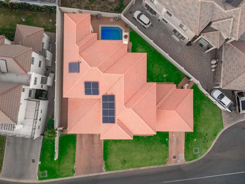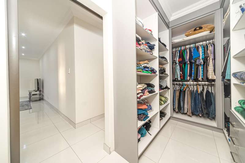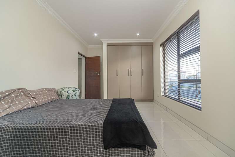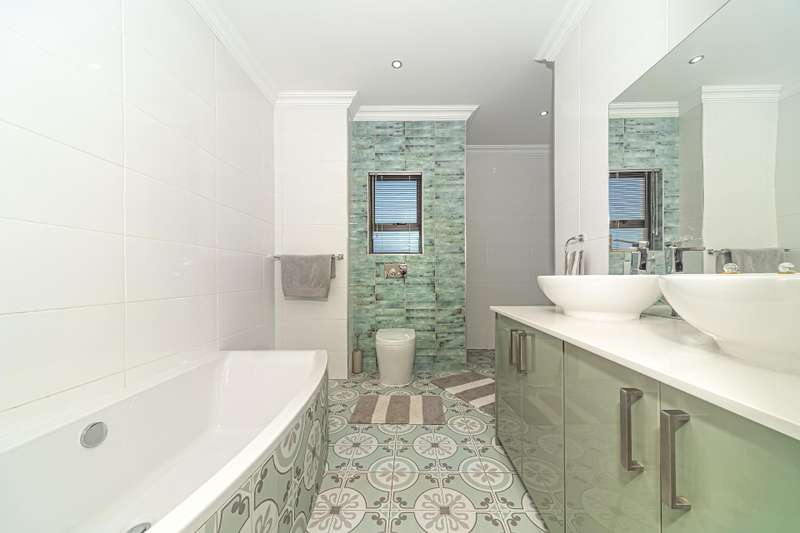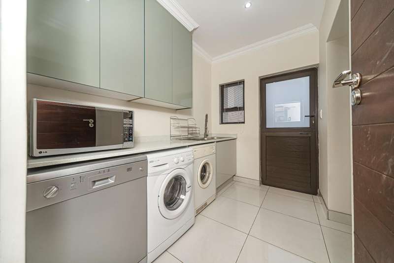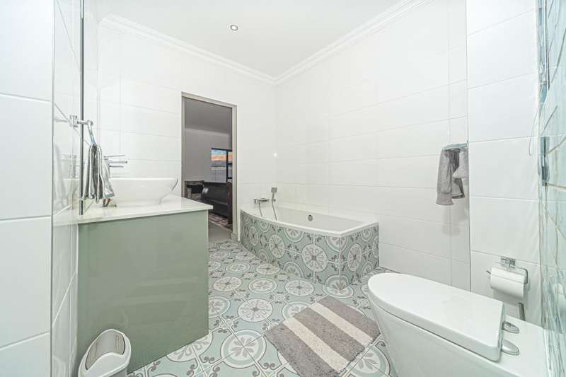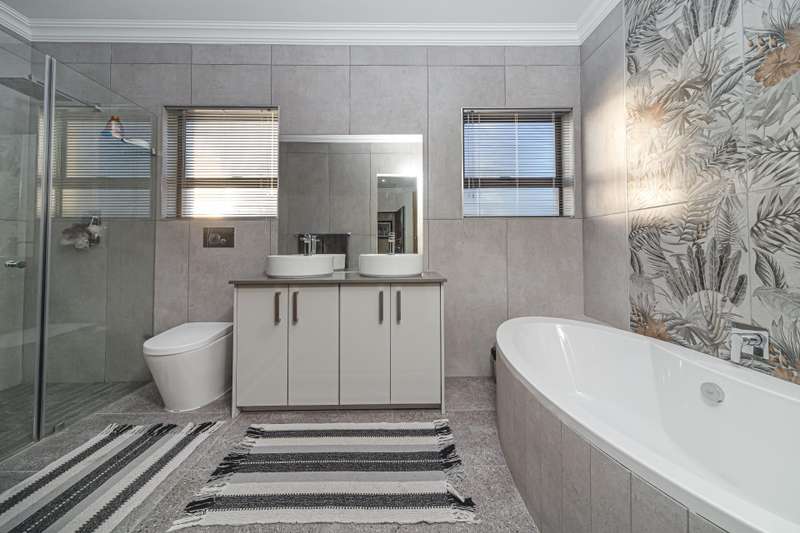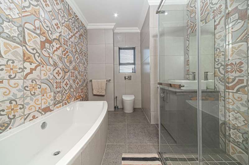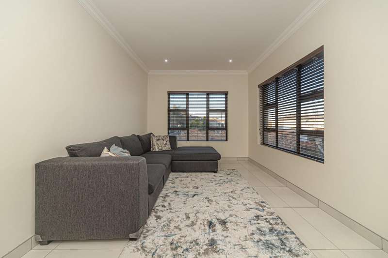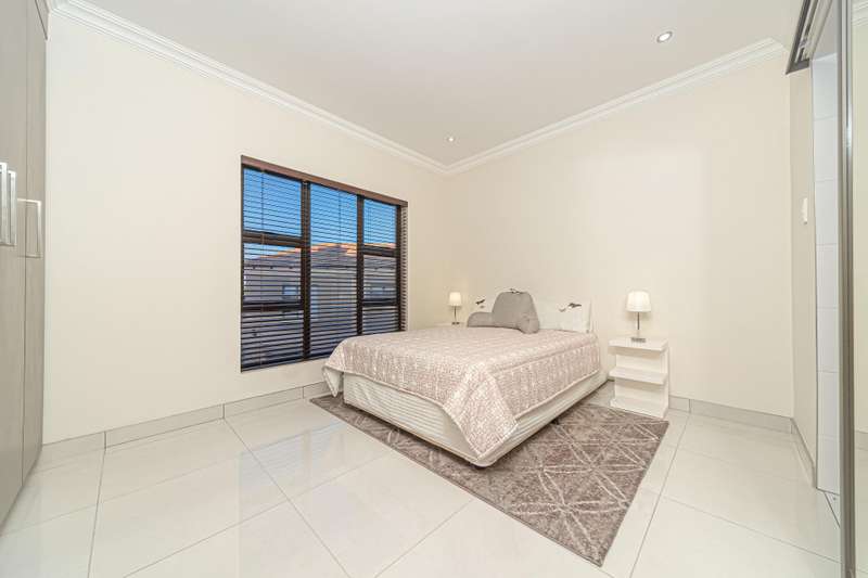 Discover this modern family home in the prestigious Blue Valley Golf and Country Estate, where luxury and comfort meet in perfect harmony. A striking double-volume entrance welcomes you, highlighted by an elegant staircase that sets the tone for the home?ÇÖs sophisticated design. The open-plan kitchen flows seamlessly into the dining area and connects to a separate scullery, making it ideal for both everyday living and entertaining. The home boasts two lounges with a central fireplace, creating a warm and inviting atmosphere. These living spaces open onto a covered patio with a built-in braai, overlooking the sparkling pool, Jacuzzi, and landscaped garden ?Çö a true entertainer?ÇÖs dream. Accommodation includes four spacious bedrooms, all ensuite. A private guest suite is conveniently located downstairs, while the upper level offers three ensuite bedrooms and a study. The main bedroom is a luxurious retreat with its own lounge area, walk-in closet, and a generously sized bathroom. This residence offers the perfect blend of style, comfort, and estate living at its finest.