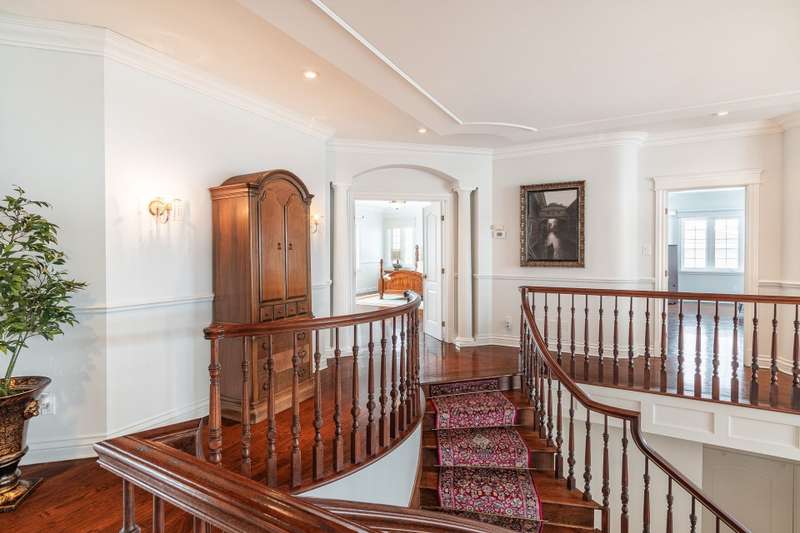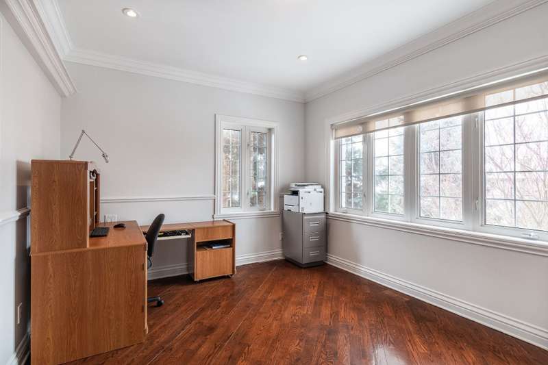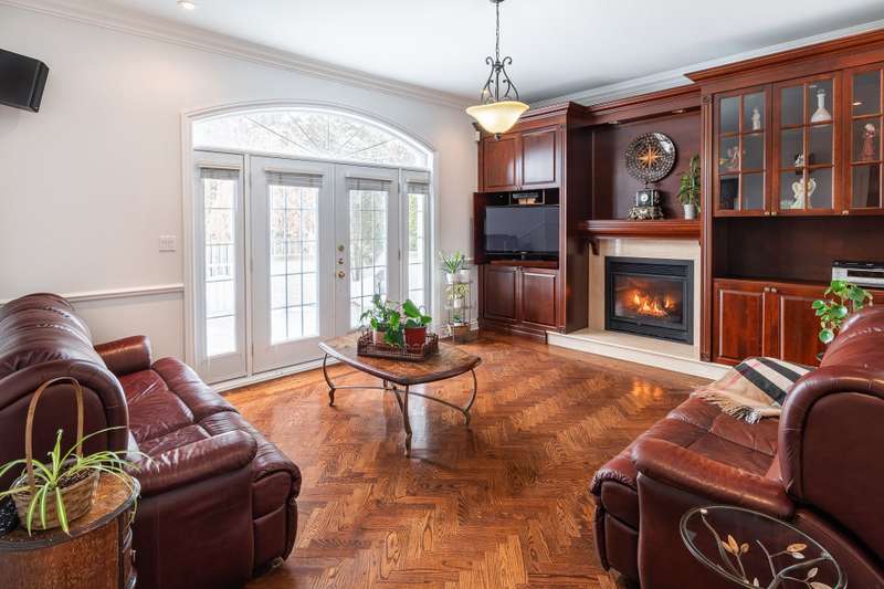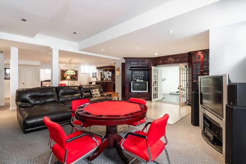 This value-packed custom-built residence by esteemed builder Jean Houde offers exceptional living. The home features spacious rooms with herringbone hardwood floors and a gourmet kitchen with granite countertops and custom cabinetry. The upper level includes four bedrooms, including a retreat-style primary suite with a spa-inspired ensuite, plus a second family room with Palladian windows. The fully finished, intergenerational basement boasts a playroom, billiards area, wet bar, gym, and dry sauna. Located on a family-friendly crescent with a west-facing backyard.