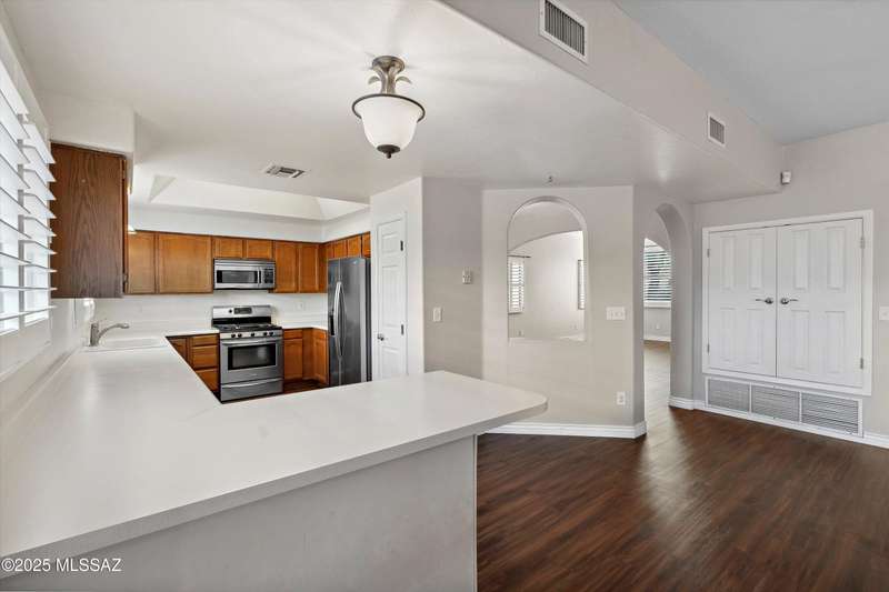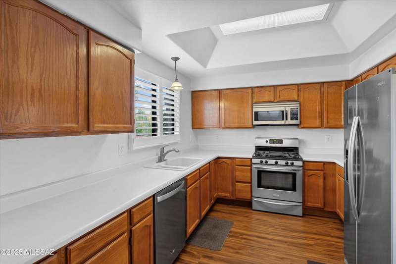 Located in the heart of Oro Valley, this spacious 2,418 sq ft two-story home offers 3 BD/2.5BA, and breathtaking views of the Pursch Ridge and Catalina Mountains. Home has no poly pipes. Step inside to find a flexible floor plan featuring separate living and dining area, a cozy family room with a fireplace, and versatile flex room-perfect for a home office or hobby space. The upgraded master suite boasts a private balcony with sweeping mountain views and a beautifully updated en-suite bathroom. Enjoy the peace and privacy of a tranquil backyard with natural desert landscape and no rear neighbors. Just minutes from top-rated schools, shopping, dining, and endless opportunities for walking and hiking, this home offers the perfect blend of comfort, convenience and scenic beauty.