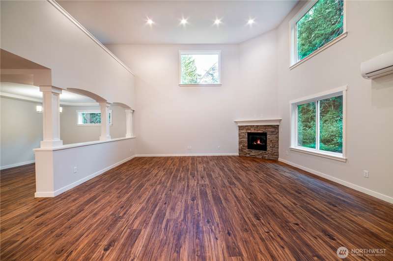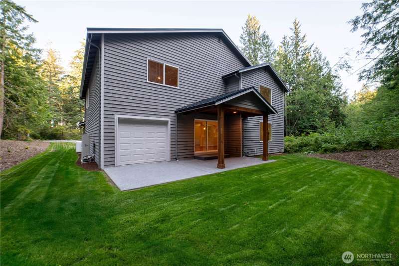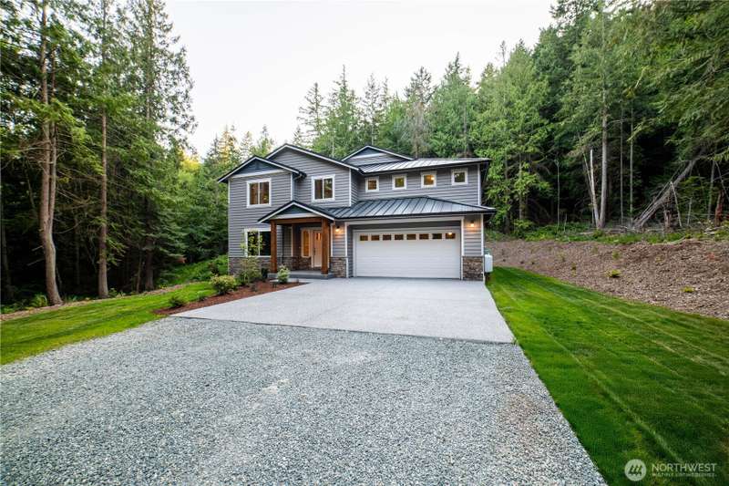 Brand new home on a secluded 4.49 acre lot. 3 car Tandem garage. Neighborhood is gated with an unattended guard house for added security and privacy. Trails lead to Whistle Lake. Metal roof and cedar siding. The home is completed with white painted cabinets, LVP and tile floors, slab granite counters, full height backsplash, white painted millwork, wood wrapped windows, double panel white painted doors and stainless steel KitchenAid appliances. High ceilings in the huge family room, formal dining room, downstairs office and a huge master bedroom make this home extremely functional. Hybrid heat pump water heater, High Efficiency ductless mini splits provide both heating and air conditioning to the entire living space.