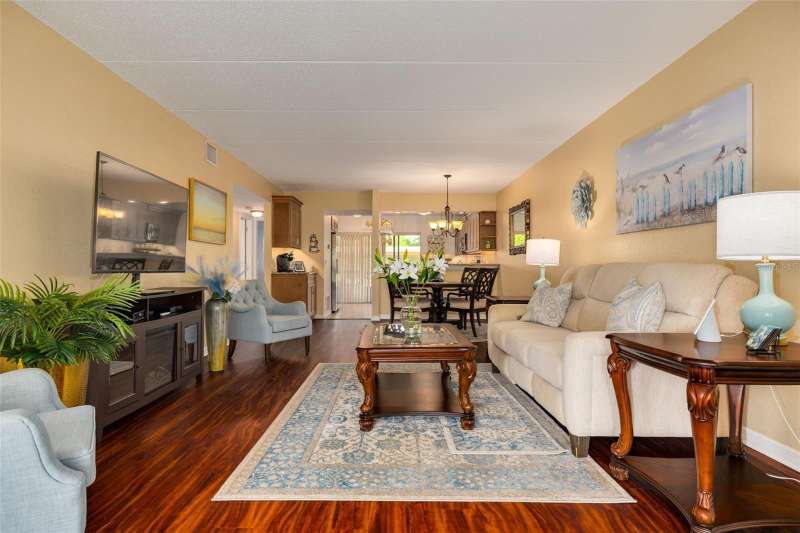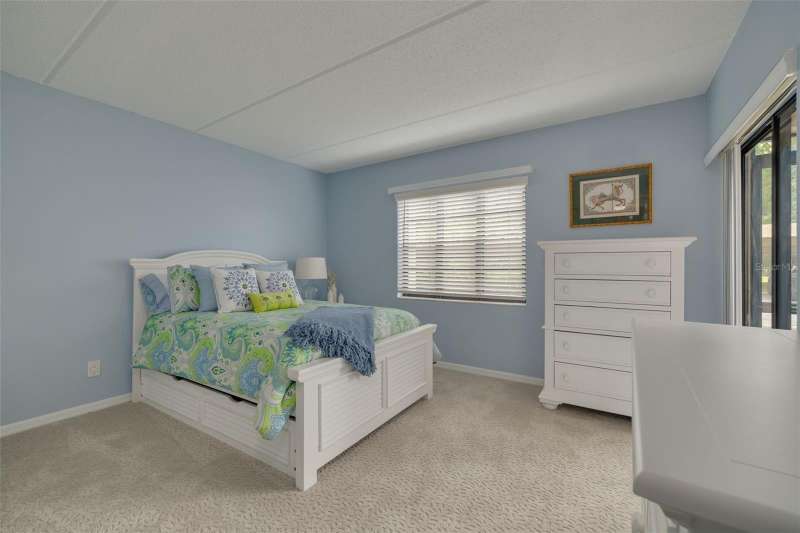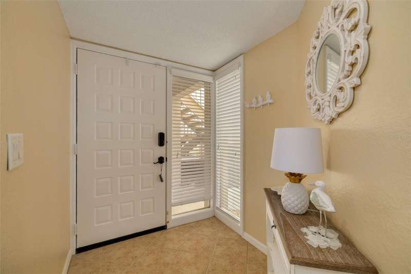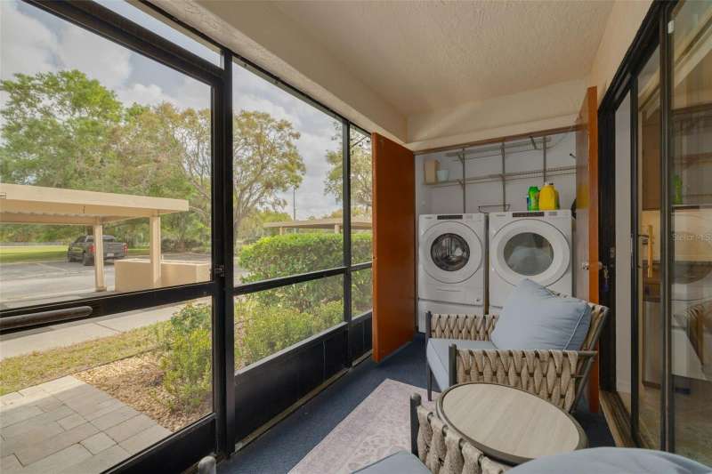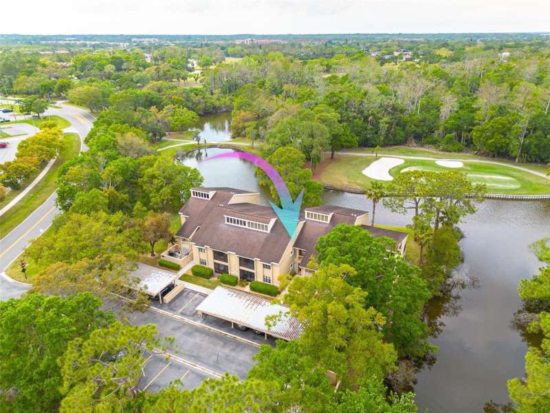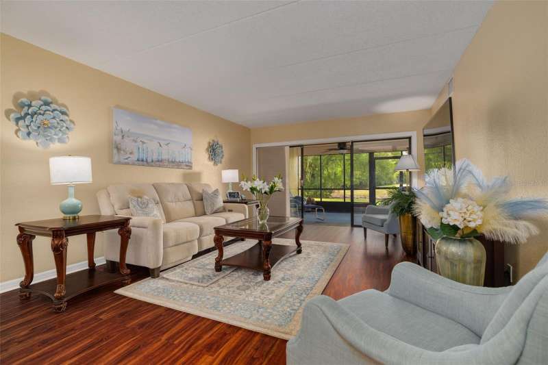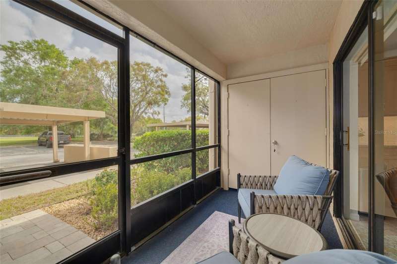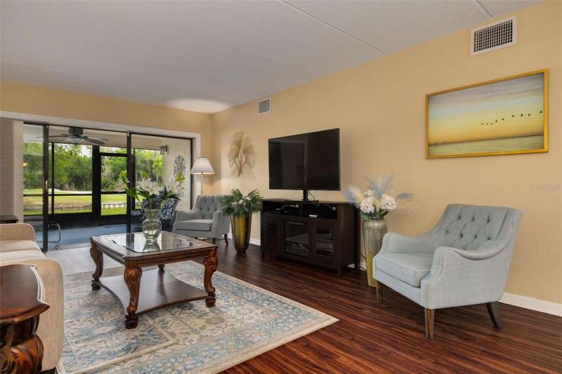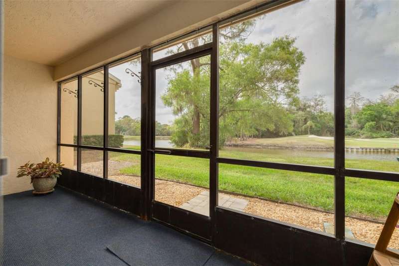 A true breath of fresh Air! Welcome to this exceptionally updated ground-floor condo located on the 9th hole of East Lake Woodlands Country Club. With a private entry, this spacious 2-bedroom, 2-bathroom residence offers an open floor plan with a living room that has views of nature, water and the 9th hole! What else could you be looking for! The large living room flows seamlessly and welcomes you into the home with it's warm tranquil colors and natural light. To the left of the living room is a spacious east facing kitchen, with sliding glass doors that open to another patio giving it the warm bright feeling of home. The kitchen features recently updated soft-close, and generous amount of beautiful solid wood cabinets, neutral granite countertops, tile flooring, and stainless steel appliances. There's also plenty of lighting, including under-cabinet lighting, a convenient coffee bar for morning breakfast as well as bar top seating—perfect for everyday use or entertaining. You will not lack for storage space for all your kitchen accessories. The dining area has the added feature of either a wine bar or coffee bar for your enjoyment. As you move through the living room you can step outside onto the tranquil lanai, where you can relax and enjoy serene water and golf course views. The lanai is large and can be used to entertain or relax and read a book. It is equipped with a ceiling fan for added comfort and can be accessed from the living room and primary bedroom. It’s the ideal spot to unwind after a round of golf or simply enjoy the peaceful outdoor setting. The primary bedroom is generously sized, offering ample space for all your furniture, an extra large walk-in closet, and a lovely view of the golf course with sliding glass doors leading out to the lanai and watching sunsets. The updated primary bathroom features solid wood cabinets, dual sinks, a soaking tub, and a separate walk-in shower. The guest bedroom is also spacious and is located on the opposite end condo making it a true split plan arrangement. The guest bathroom offers an oversized vanity and a tub/shower combo. You will lack nothing in this excellent tranquil condo that is move in ready and waiting for you! The community provides a variety of amenities including a swimming pool. With its unbeatable location on the 9th hole of the East Lake Woodlands Country Club and an excellent range of community amenities, this property is a must-see. Don't miss the opportunity to make this gorgeous condo your new home! A/C 2019, Water Heater 2019, Newer Washer & Dryer, 2022 Cabinets, Microwave & Refrigerator!