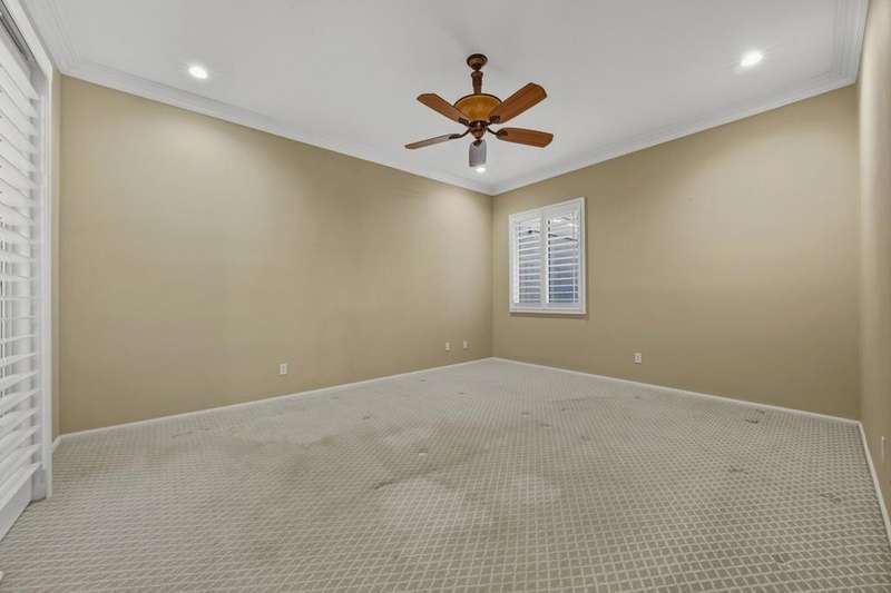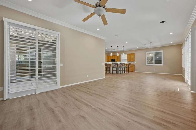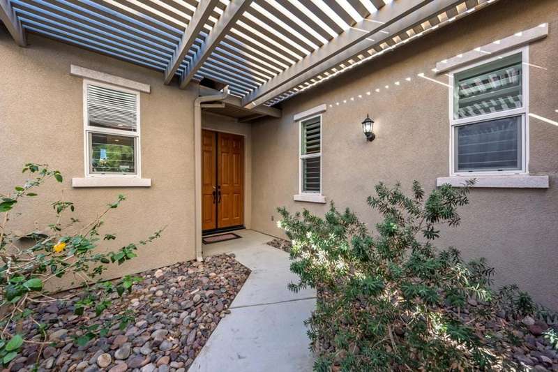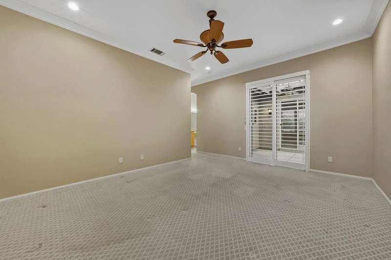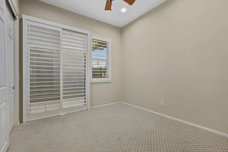 Desert Living Meets RV Enthusiast - and more. A perfect home for those with 'toys'. A 14 x 45' RV garage with AC & cleanouts, plus a 2-car garage w/AC and a golf car garage is perfect for the car collector, those with a large RV's, boats or perhaps even use this as an art studio. A gated courtyard entry leads to this home with its spacious Great Room layout offering open concept living. With high ceilings, a cozy fireplace, plantation shutters, custom shade screens, lux vinyl flooring in main living area and breakfast bar in the kitchen,. There is good counter space, a covered patio for outdoor dining and an indoor dining area. With 2 Bedrooms, 2 1/2 Baths this well-designed home is adjacent to a small parklike area on its north side and is on an interior lot not backing onto a main thoroughfare. There is just enough backyard to enjoy the outdoors without much maintenance. Located in a welcoming country club setting that has short term rentals (please check current status with HOA & city) this home provides a good mix of privacy and community with access to reasonable golf, dining, recreation & music festivals.