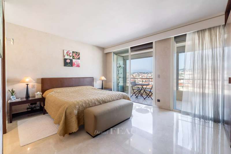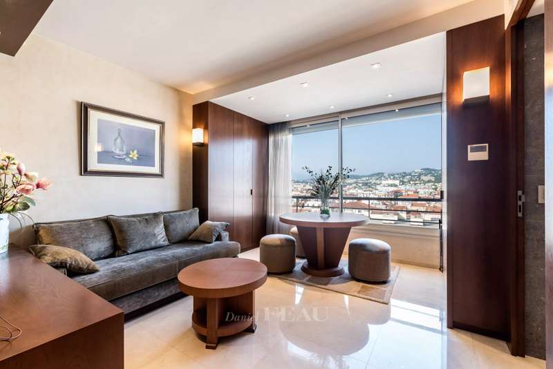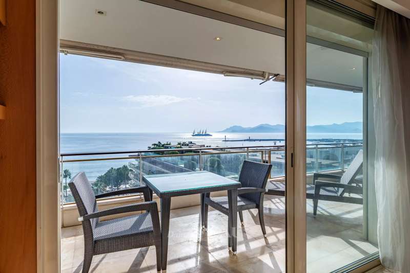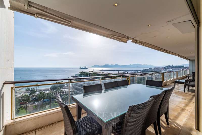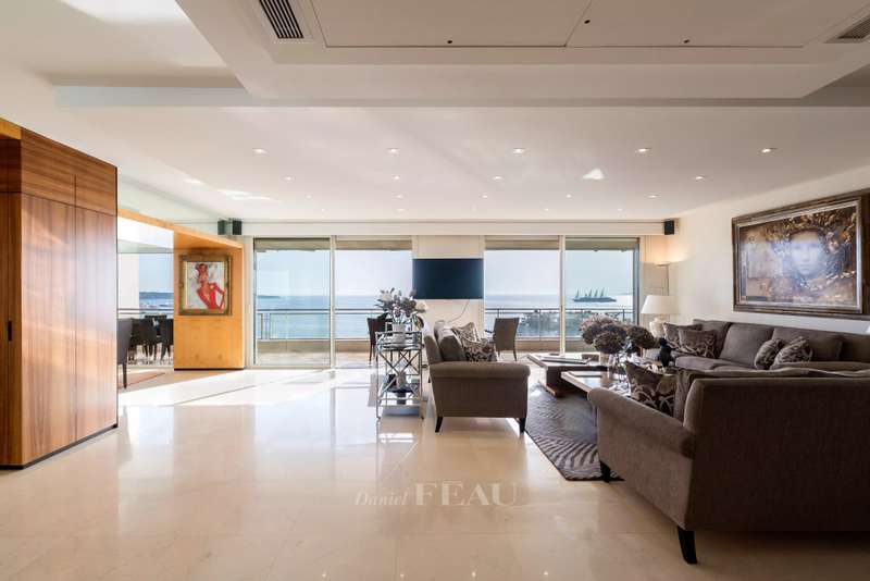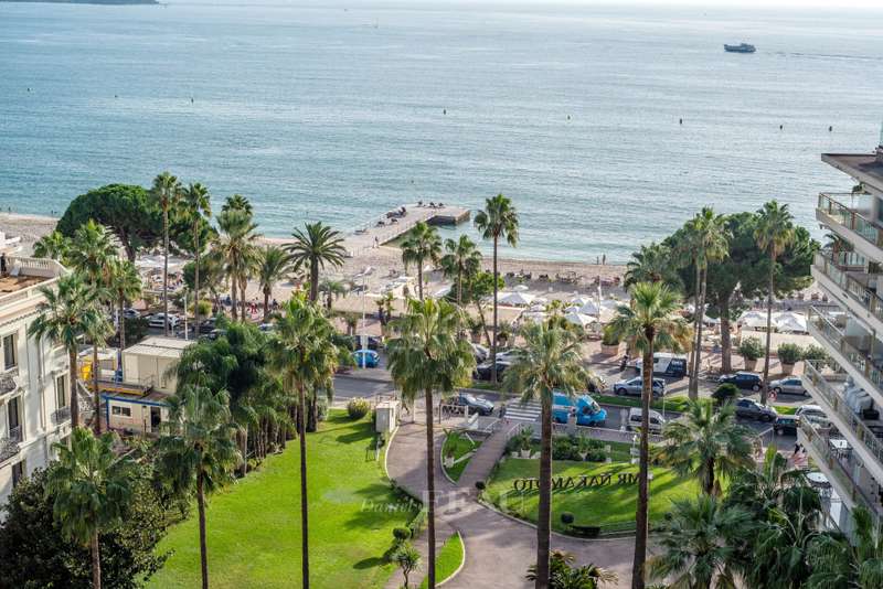 This magnificent apartment is on the 8th floor of a renowned residence located just a stone’s throw from the Palais des Festivals in the heart of the world-famous Croisette. South-facing, overlooking the renowned Grand Hotel’s leafy gardens and commanding a panoramic view of the Mediterranean, it offers 247.03 sqm of living space as defined by the Carrez Law and benefits from a 30 sqm terrace, a balcony, a 7 sqm maid’s bedroom and two garages. The apartment includes a near 90 sqm living/reception room, dining room and equipped kitchen, five suites (two facing the sea), and a studio apartment. With two 14 and 20 sqm garages, as well as a cellar. Units : 42