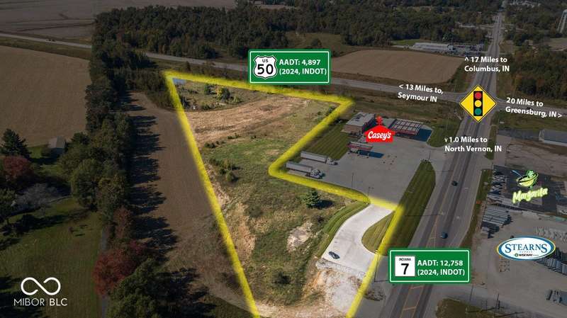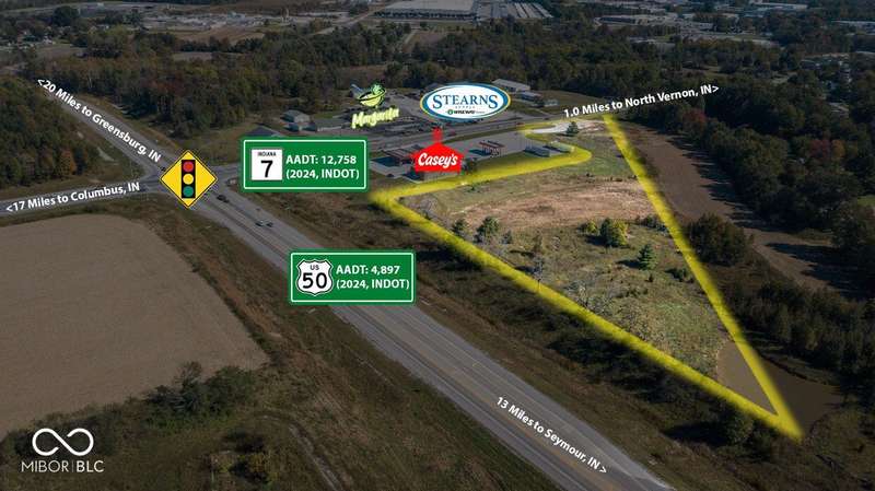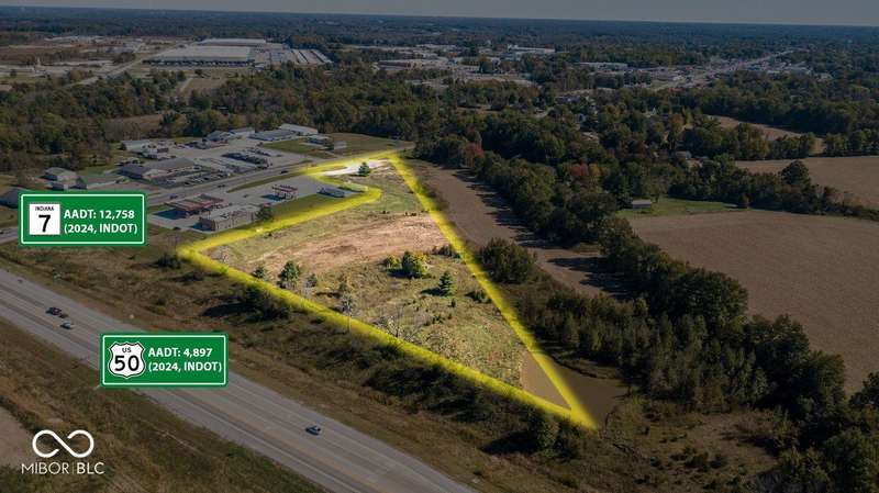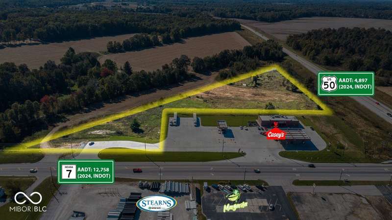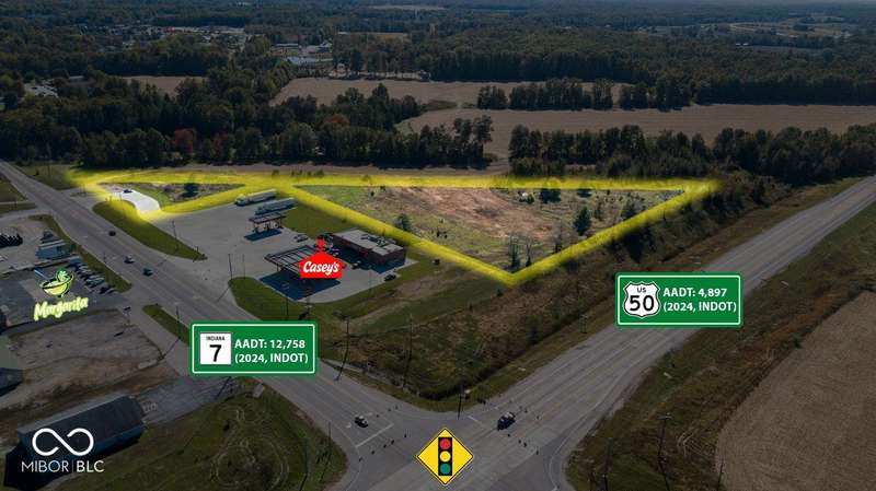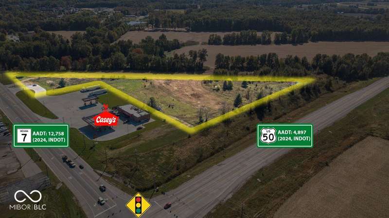 An exceptional opportunity to own 7 acres of commercially zoned land at one of the most strategic and high-traffic intersections in the area: US Highway 50 and State Road 7. This undeveloped parcel sits directly behind Casey's General Store and includes a privately owned, recorded commercial easement providing direct access from the highway, currently utilized by Casey's. The land offers level topography, excellent visibility, and is fully equipped with available utilities, including water, sewer, and electricity - making it shovel-ready for a wide range of commercial or mixed-use development.