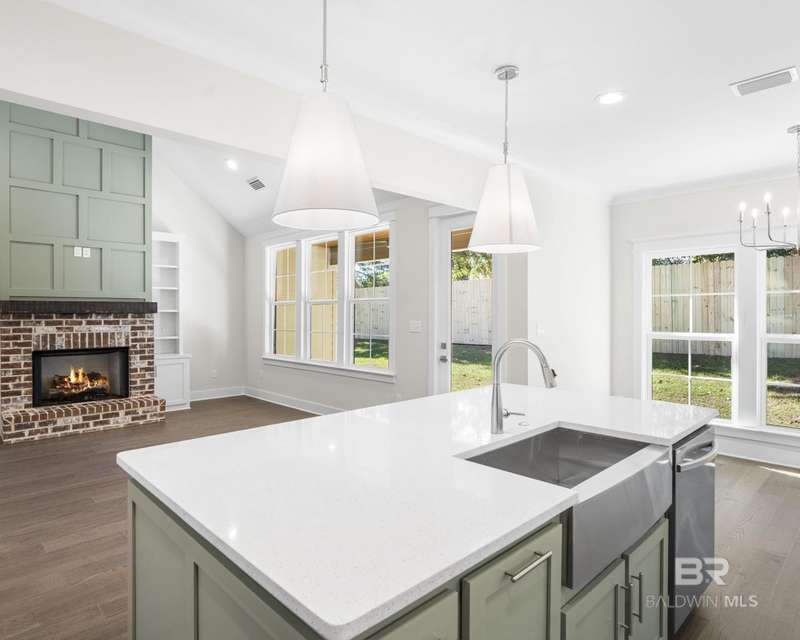 Welcome to the Ridgeland plan by Tower Homes, a beautifully crafted home that blends Southern charm with modern convenience. A welcoming front porch leads to a bright foyer and spacious family room anchored by a gas fireplace with custom built-in shelving. The chef's kitchen features quartz countertops, custom-painted cabinets, a walk-in pantry, and a large island with cabinets on both sides. Stainless appliances, including a gas cooktop, built-in oven, and microwave, create the perfect space for everyday meals or entertaining. The formal dining room, enhanced with elegant wainscoting, offers a refined setting for gatherings, while a nearby half bath keeps guests comfortable. Gorgeous wood flooring and tile flow throughout the main level, which also includes a private office, drop zone, and laundry room for added functionality. The first-floor primary suite is a peaceful retreat with a spa-like bath and roomy walk-in closet. Upstairs, three additional bedrooms, two full baths, and a versatile bonus room provide plenty of space for guests, media, or hobbies. A dedicated study zone with built-in desks is ideal for remote work or home management. Additional amenities include a tankless water heater, whole-yard irrigation, tongue-and-groove-stained porch ceilings, and countless thoughtful upgrades throughout. With its beautiful windows, thoughtful storage, and curated finishes, the Ridgeland delivers the quality and attention to detail that have made Tower Homes a trusted name in Alabama. Located in the Summer Lake subdivision, lot 7 is full of mature oaks and overlooks the neighborhood pond with a water feature and a fishing dock. Gold Fortified, 1-yr builder warranty, 10-yr PWSC structural warranty, and a 1-yr termite bond with Formosan coverage. One or more principals of the selling entity are licensed real estate agents and/or Brokers in AL. Floor plans example only. Buyer to verify all information during due diligence Buyer to verify all information during due dil