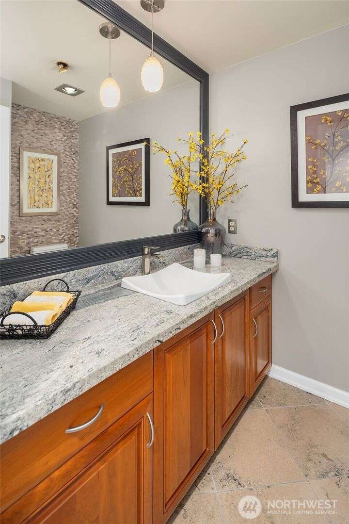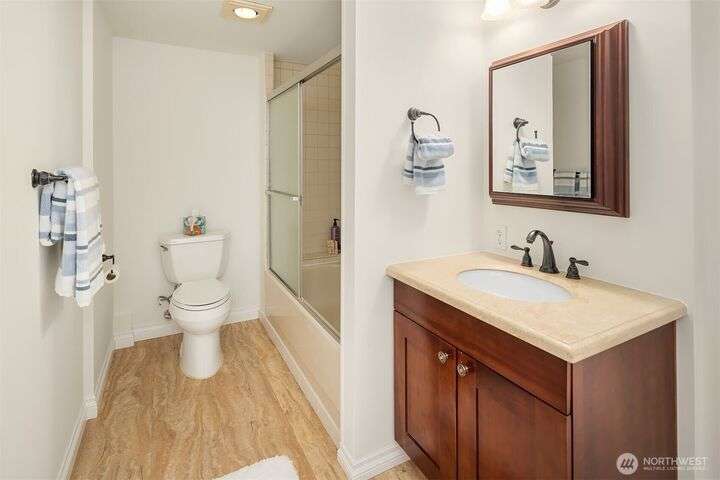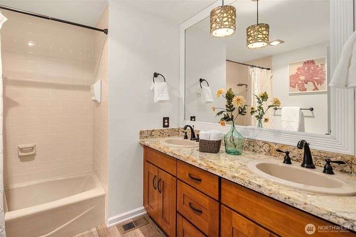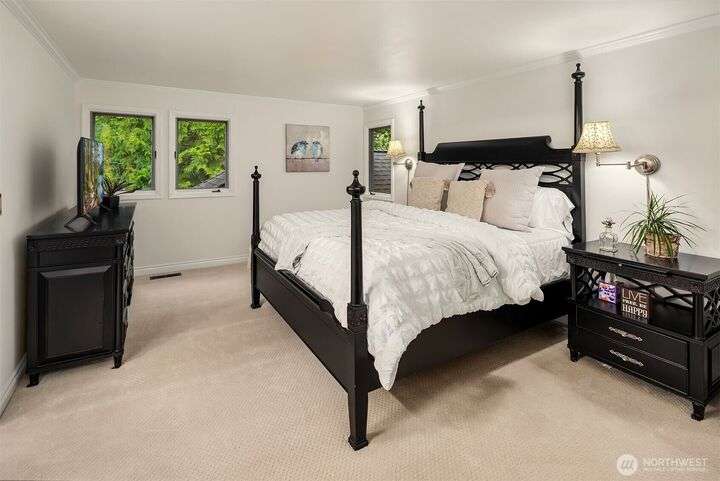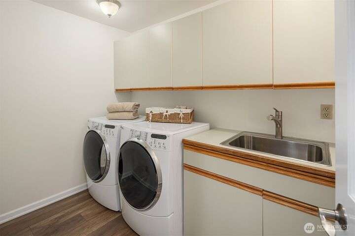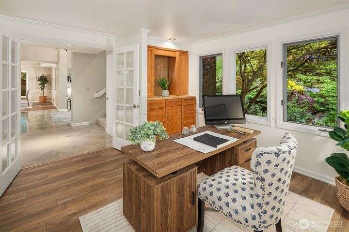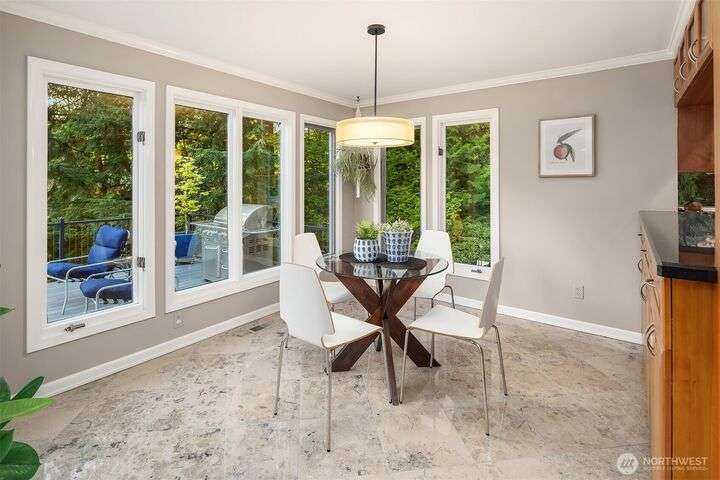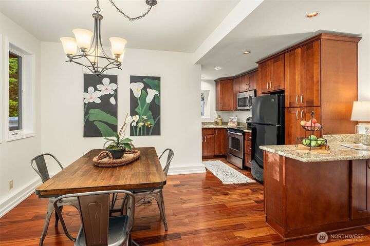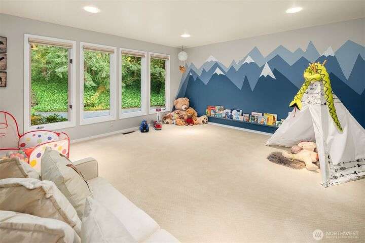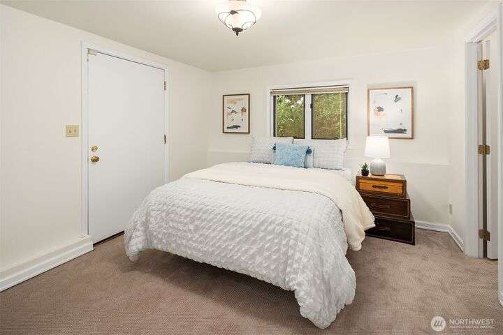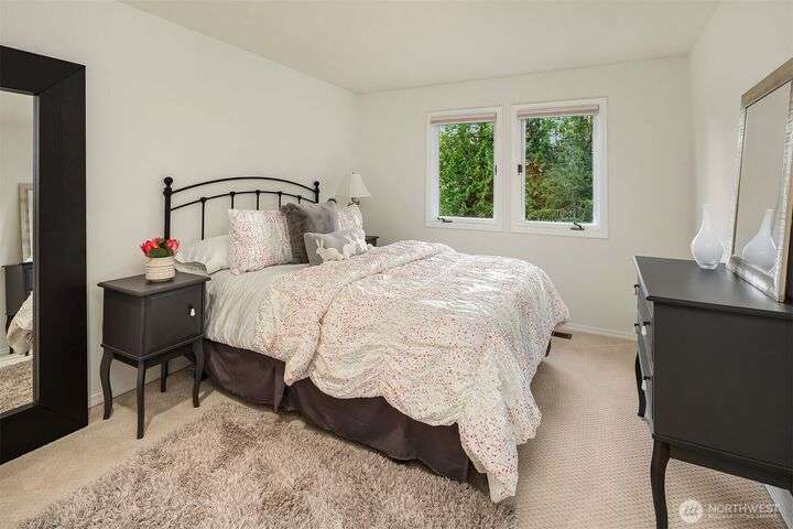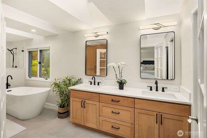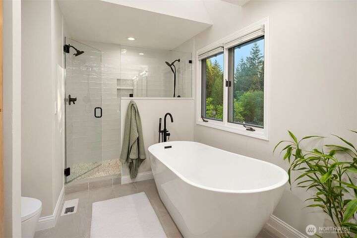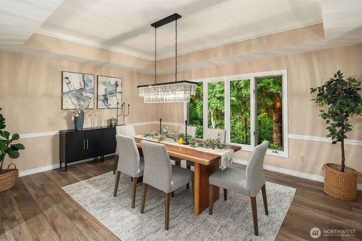 Impressive updates! Stunning estate style home on a sunny 1+ acre backyard oasis! Inviting living room has vaulted ceilings & wall of windows. Elegant dining room. Remodeled Chef’s kitchen offers dual ovens, warming drawer, large island & built-in buffet. Family Rm flows seamlessly to entertaining deck. Main floor office. Sumptuous primary suite has new renovated bath. Fabulous bonus rm! Lower level has full guest suite w/exceptional versatility: Kitchen, large bonus, Bdrm, bath, exercise rm & hidden storage. Separate entry is a perfect guest suite/entertaining area. Sunny backyard offers multiple decks, covered patio, huge level lawn, gazebo w/waterfall, hot tub, potting shed & more. Sought after Cherry Crest Elem. Home on sewer-No septic!