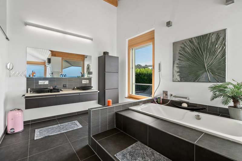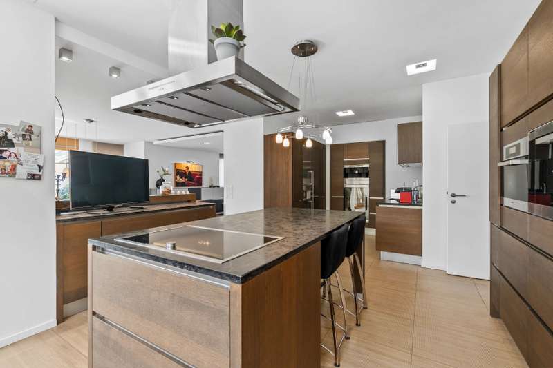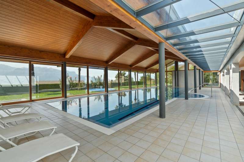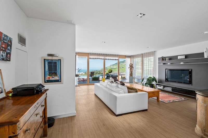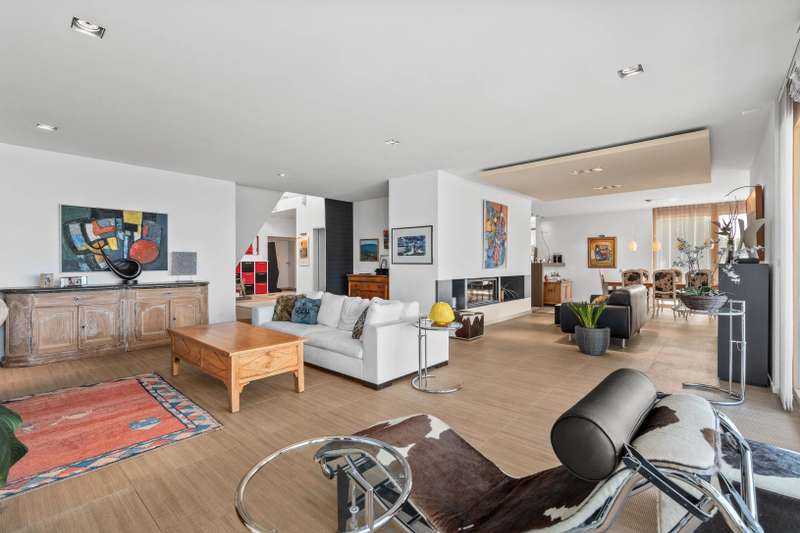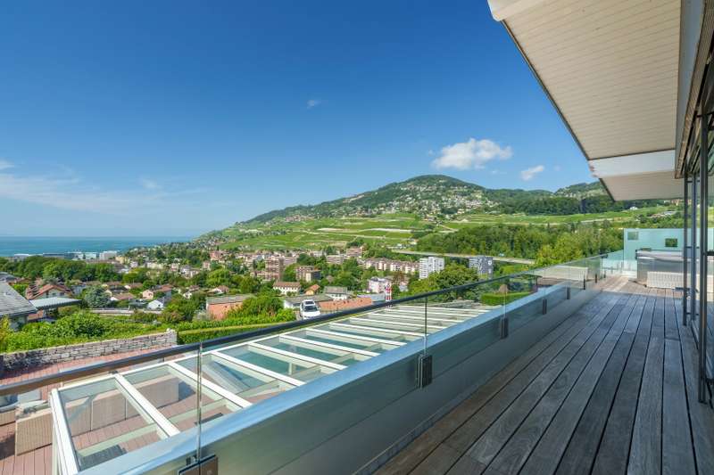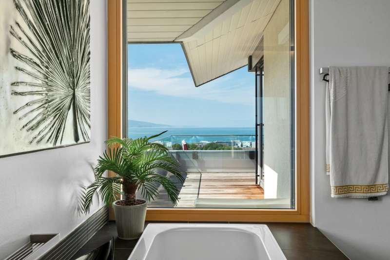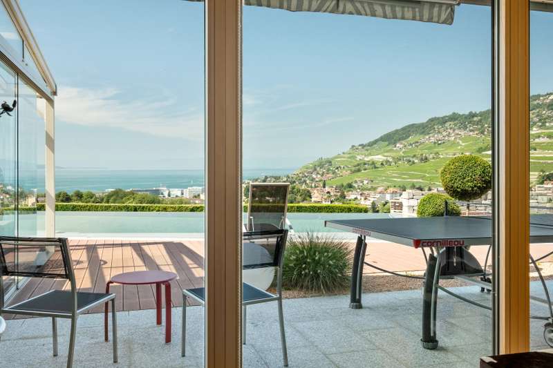 Located within a private and secure estate, this magnificent high-end property offers an idyllic living environment, combining tranquility with excellent accessibility. Thanks to its modern design and large bay windows, the villa is bathed in natural light throughout the day and enjoys breathtaking views over the entire lake and surrounding vineyards. Situated on a generous 1,836 m² plot, the property boasts an impressive 424 m² of usable space. The ground floor features vast reception areas, including an entrance hall with guest restroom, a spacious living room with a fireplace, a dining area, and a large fully equipped kitchen with a central island. This level also includes a large bedroom with an en-suite shower room. A vast terrace, complemented by a heated stainless steel infinity pool with a mirror effect, two cellars, a laundry room, and two garages accommodating three vehicles, complete this floor. Upstairs, you will find two spacious and voluminous en-suite bedrooms, one of which features a veranda. Each has access to a large terrace with a jacuzzi. Additionally, there is a generous hall, a bedroom with an en-suite shower room, and a sauna area for your well-being. The high ceilings throughout the villa create an unparalleled sense of space and volume. Every detail has been carefully considered, with high-quality finishes and meticulously selected materials. Residents of the prestigious Jolimont estate have the privilege of accessing a communal building that houses an indoor swimming pool and a wellness area. This property is the most exclusive in the neighborhood. Thanks to its dominant position and orientation, privacy is preserved, whether by the pool, on the terraces, or in the bedrooms.