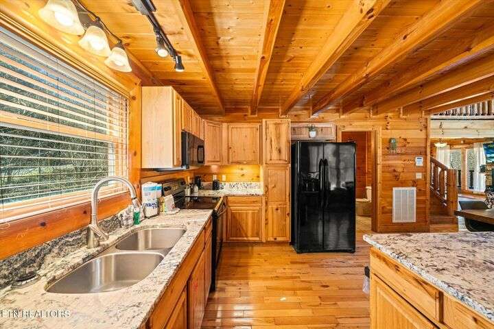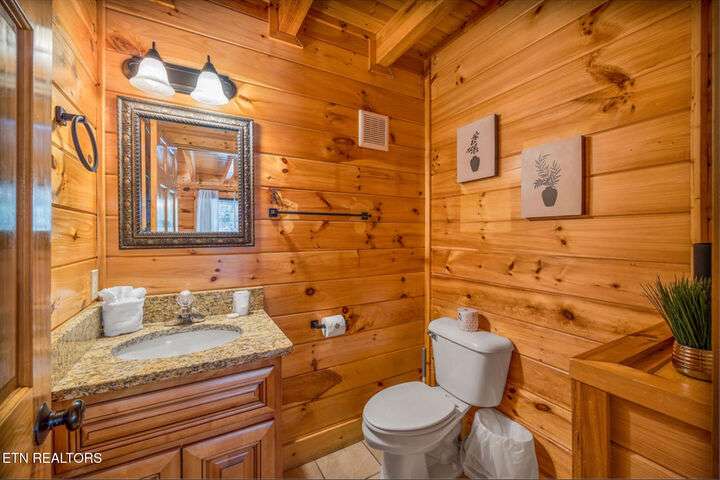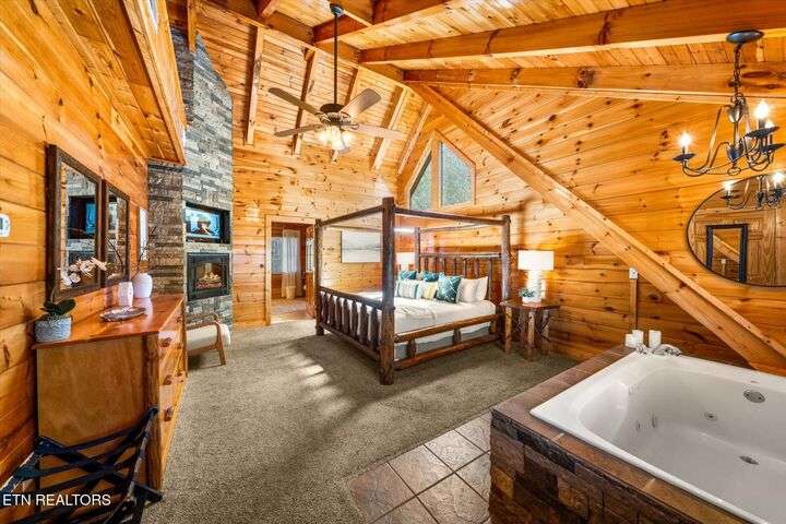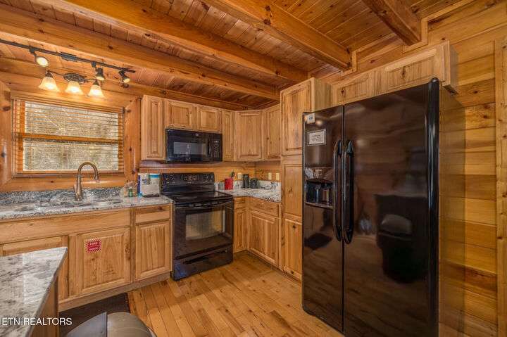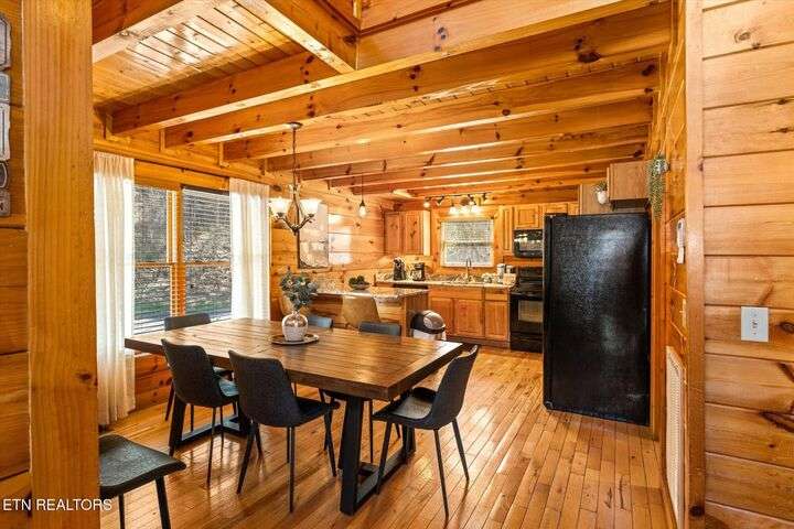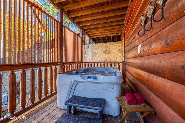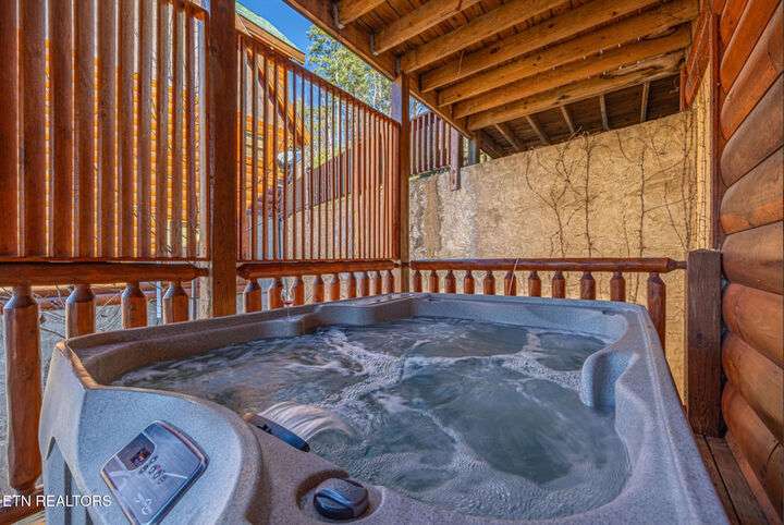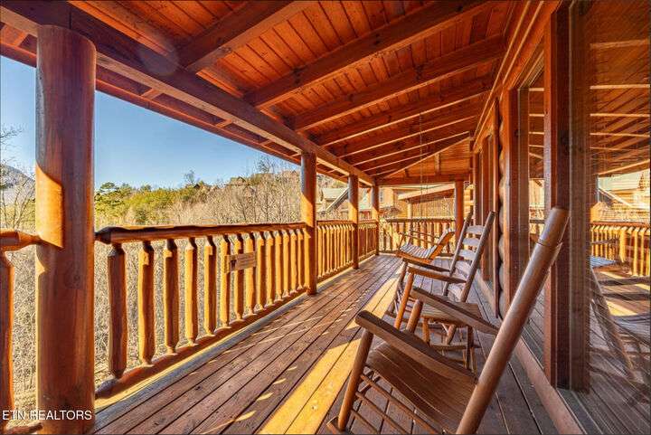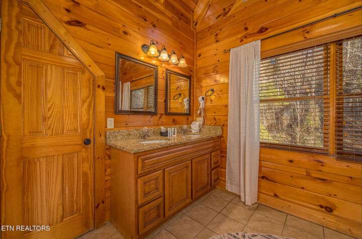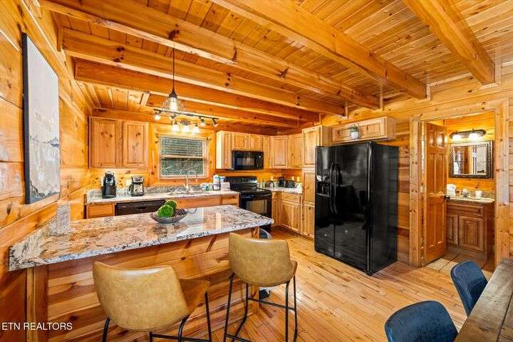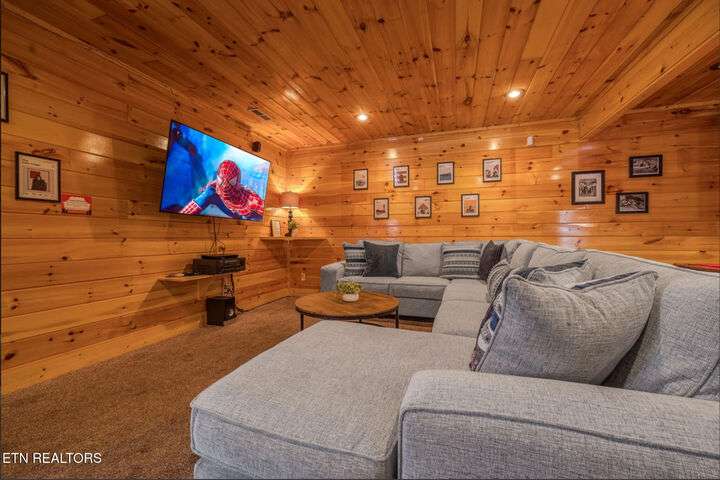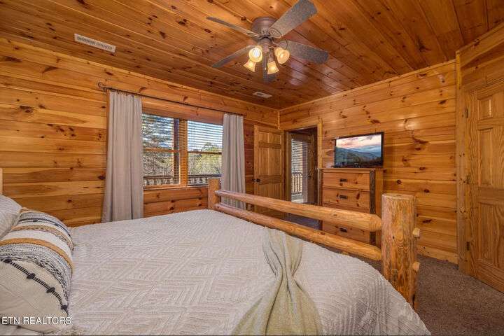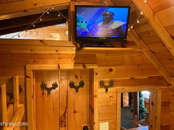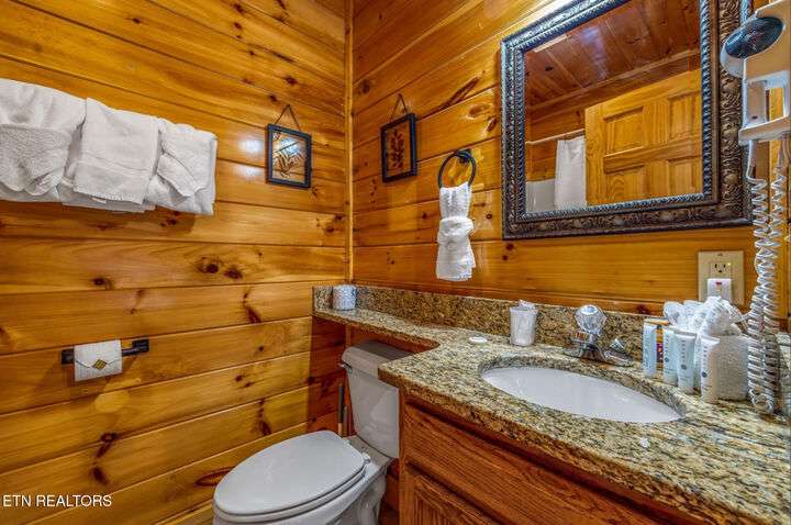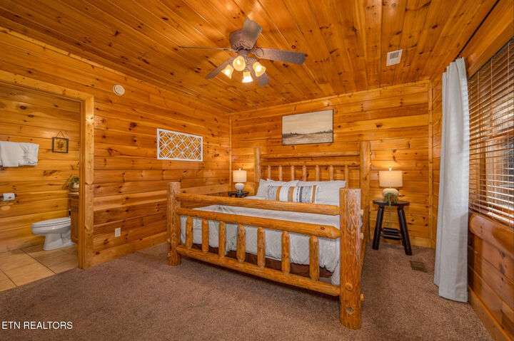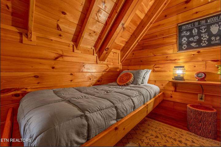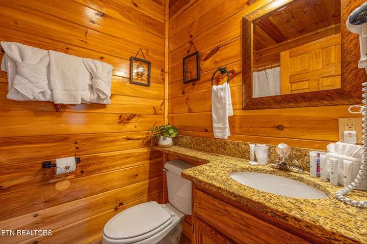 HUGE PRICE REDUCTION!!! MOTIVATED TO SELL THIS UNIQUE LUXURY LOG CABIN LIKE NO OTHER WITH INCREDIBLE MOUNTAIN VIEWS!!! The cabin name is ''Playhouse Cinema''. Just wait until you see what's inside!! When you enter look up & you will see what sets this cabin apart and makes it unique. There is a ''Custom Built Log Cabin Playhouse'' which was perfectly crafted for the kids and family to enjoy!! It is much more than just a playhouse for children, though. It actually functions as their very own private area to sleep, play, watch TV and more. I love the front porch with rocking chairs but take a closer look inside and take note of the vaulted ceilings, lighting, furniture & 3 beds for sleeping! It will literally entertain them for hours on end!! On this level there is also an oversized Master Bedroom that has very tall vaulted/beamed ceilings, a floor to ceiling stone fireplace and a bedside Jacuzzi. The Master Bath on this level is Huge and has double vanity sinks, Granite countertops, a shower and lots of storage space-closets. This cabin has been meticulously maintained by the owner who has upgraded the cabin with thousands of dollars in the finest furnishings. When you walk into this cabin you will notice the large foyer with high top table and seating to the right. The Living Room is very large and spacious. It features a floor to ceiling Stone Fireplace, Beamed Ceilings, Sleeper Sofa, Loveseat, and even more additional seating. The dining area has a large dining table with seating for 8 guests. The Fully Equipped Kitchen has lovely granite countertops. There is a Breakfast Bar with additional seating and tons of counter space. A half bath just off to the side is also very convenient for all guests to use. On the main level is another oversized bedroom with King Size Bed, and private bath. The main level of the cabin has a completely covered walk around deck with rocking chairs, bbq grill and even a swing where you can relax and take in the most breathtaking Mountain Views!!! Now lets go downstairs and discover the Cinema Room with comfortable lounging area for a large number of guests to enjoy watching their favorite movie!! There is a full size Pool Table, Multi-Cade Game, and even a Wet Bar!! Let the fun begin!!! Two more huge bedrooms on this level have their very own private baths as well. The deck on this level wraps around the cabin and there is a Hot Tub to enjoy in privacy while taking in those Mountain Views!! This log cabin is nestled in the private and gated community of Bear Creek Crossing Resort. This highly sought after Resort is located just minutes to all the attractions, entertainment, and dining. Bear Creek Crossing Resort is a well known cabin community that is popular for its breathtaking 65' waterfall, indoor and outdoor pools, miniature golf course and play area for children. This Cabin is easily accessible and the roads are good. Families love staying here as noted by all the incredible reviews!! This cabin has 4 bedrooms, 4 full baths and 1 half bath and can easily accommodate up to 13 guests. The cabin is perfect for large groups of people, multiple families or family reunions! All bedrooms in this cabin have King Size Beds, Plasma TV's with DVD player's and their own private bathrooms with granite countertops. High Speed Comcast Cable Internet Lines are currently being installed all through this resort, though the current internet and tv work exceptionally well. Cabin being Sold Fully Furnished!!