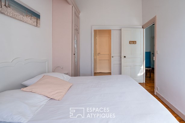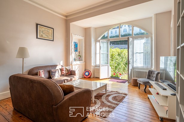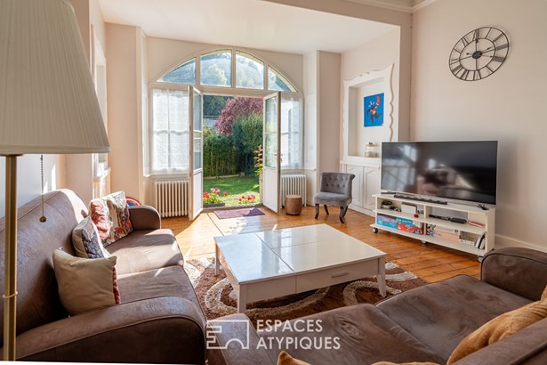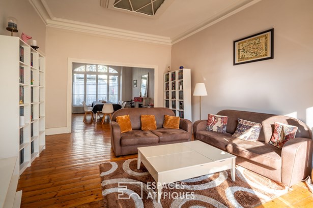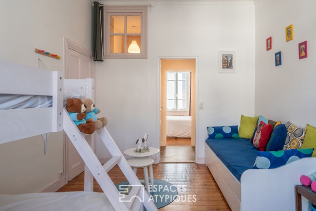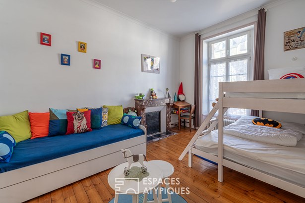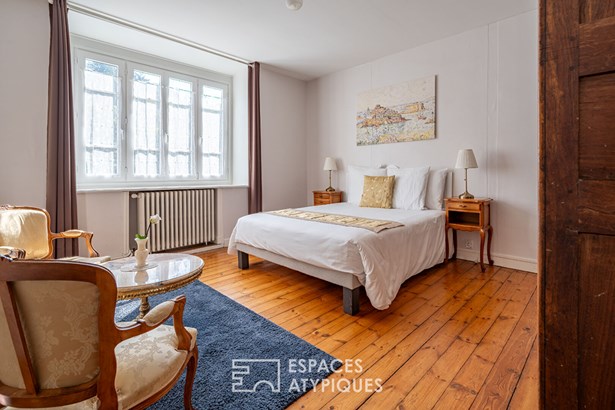 In the heart of Morlaix, this elegant townhouse blends old-world charm with modern city life. Behind its typical historic center facade, it offers 245 square meters of light-filled living space, extending onto a southwest-facing enclosed garden. Its stone silhouette, punctuated by granite window and door frames and tall, symmetrical openings, showcases a distinctly Morlaix architectural style, a blend of Breton classicism and bourgeois influences. At the rear, a large arched bay window opens the house onto the garden, providing both light and continuity between indoors and outdoors-a perfect balance between architectural presence and the tranquility of city living. From the moment you enter, the bourgeois character is evident: high ceilings, antique parquet floors, moldings, and fireplaces define the spaces. The 55-square-meter living room, which flows into the dining room, offers a welcoming and tranquil atmosphere. Light, captured by the large, south-facing windows with their elegant arches, flows seamlessly from one space to the next. The generous proportions and fluid circulation enhance this impression of an interior open to the garden. The elegant dining room, with its marble fireplace, invites shared moments around a large table, in a setting where the charm of the old blends with the soft light. The separate, fitted and equipped kitchen flows naturally from the reception rooms. Bathed in light, it offers a functional and welcoming space, open to the garden. An adjoining room provides space for everyday meals or can be used as a bright office nook. With its direct connection to the outdoors, the kitchen encourages indoor-outdoor living as soon as the weather warms up. The original wooden staircase, punctuated with colorful accents, leads to the light-filled upper floors. On each level, the landings offer a bright and welcoming atmosphere, where the charm of the old interacts with contemporary tones. The fluid layout allows everyone to move easily between the sleeping areas, spread over several levels, creating a welcoming and family-friendly atmosphere. The floors offer seven bedrooms, all bathed in light, featuring original parquet flooring and generous proportions. Some have their own bathrooms, while others are ideal for family life or accommodating visiting friends. Among them, an elegant suite with a freestanding bathtub opens beneath tall, lace-trimmed windows, creating a peaceful and hushed ambiance. The other bedrooms, in soft or bolder tones, each offer a unique character: a cozy atmosphere, bourgeois charm, or a contemporary touch, depending on the floor. The whole exudes an impression of light and harmony, where every detail contributes to the warm spirit of the house. Facing southwest, the enclosed garden provides an unexpected green oasis in the heart of the city. Bordered by greenery and dotted with flowerbeds, it offers a tranquil spot for summer meals or moments of relaxation. A cellar and an attic complete the house, while a stone outbuilding extends its charm outdoors, ideal for a workshop, tools, or garden treasures. Located in the heart of Morlaix, this house combines elegance and everyday practicality. Ready to write a new family chapter, it offers a bright and vibrant living environment, just steps from all amenities.