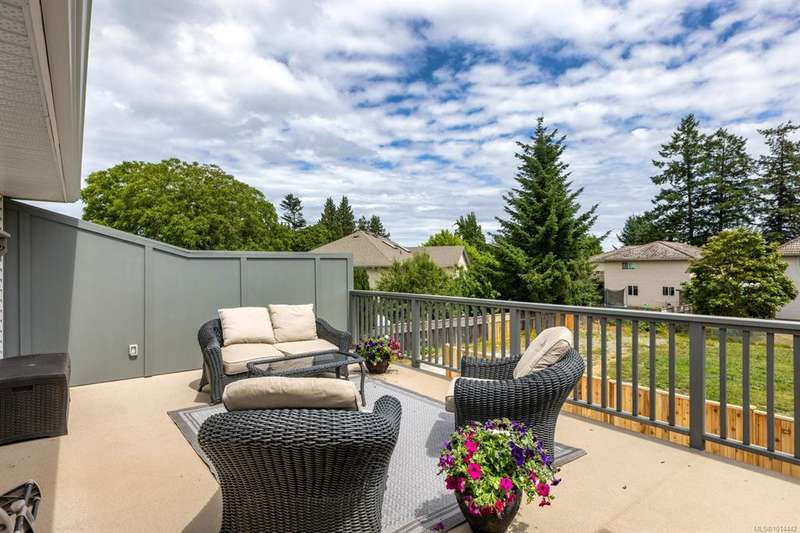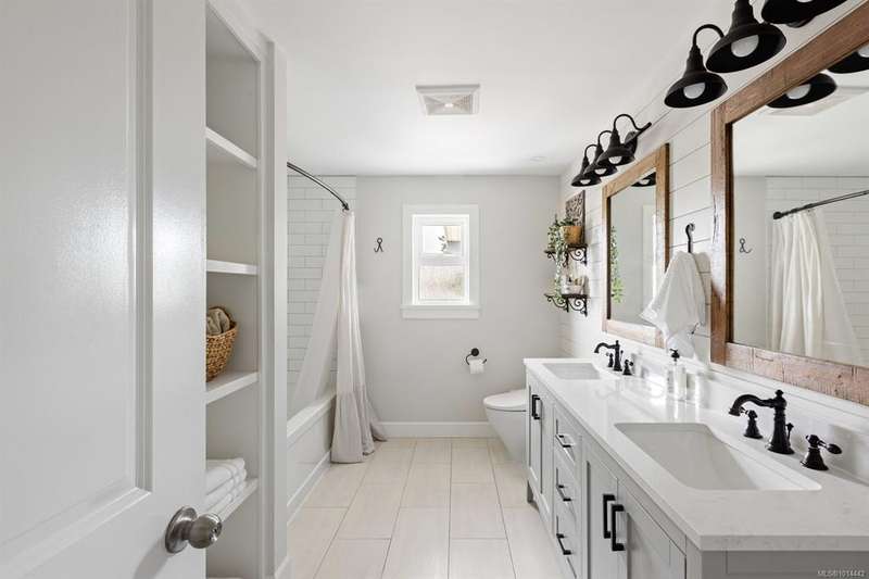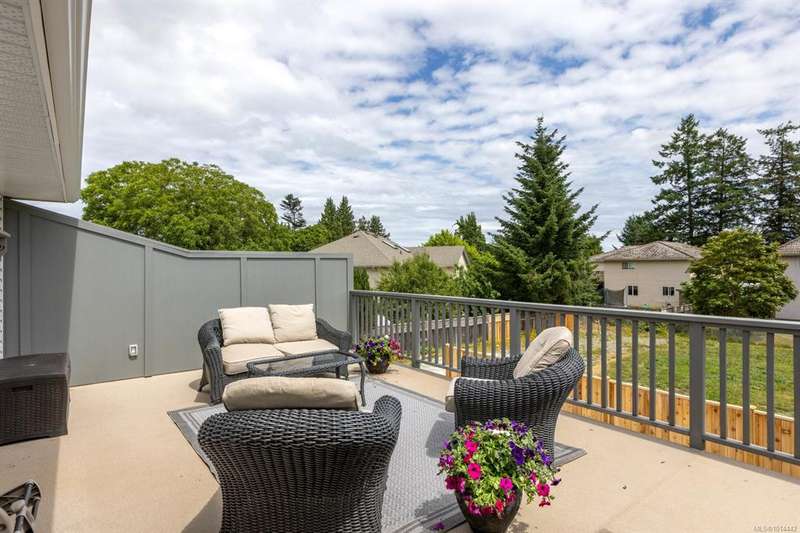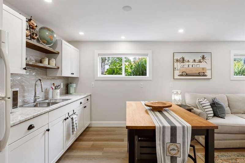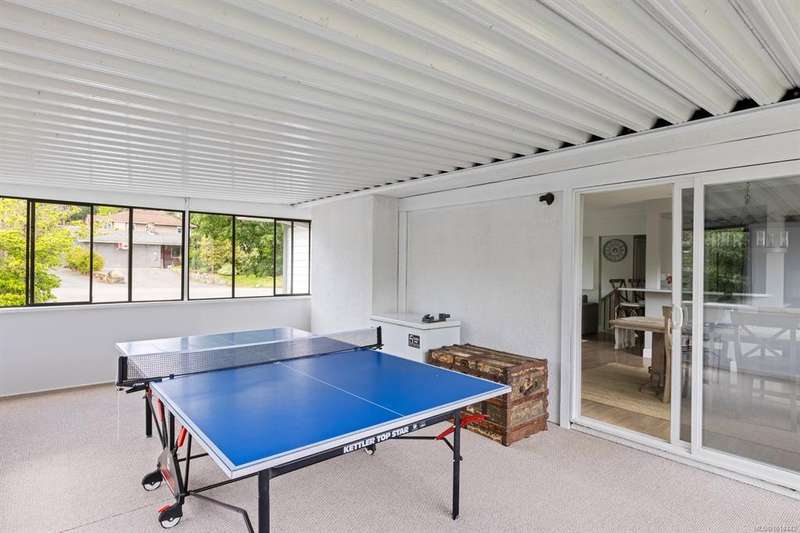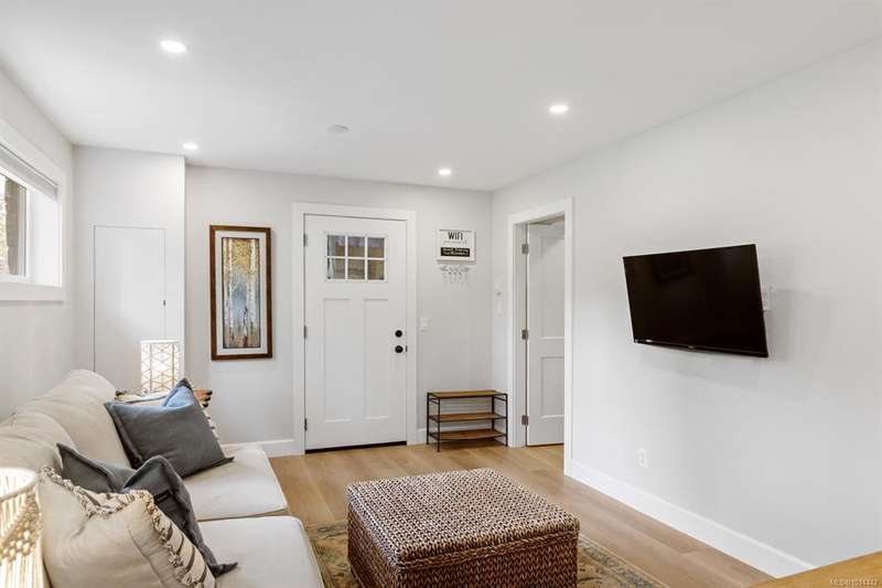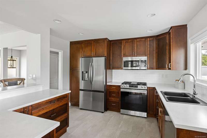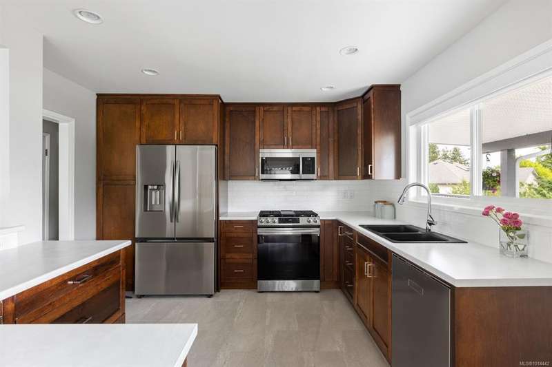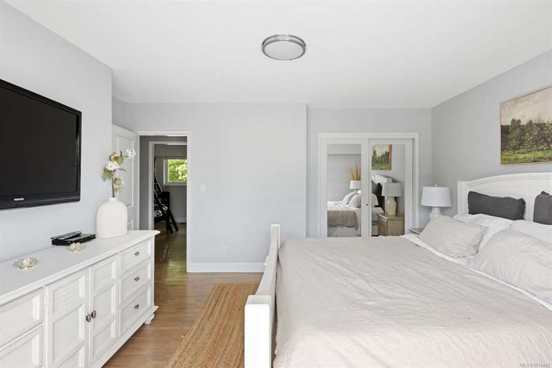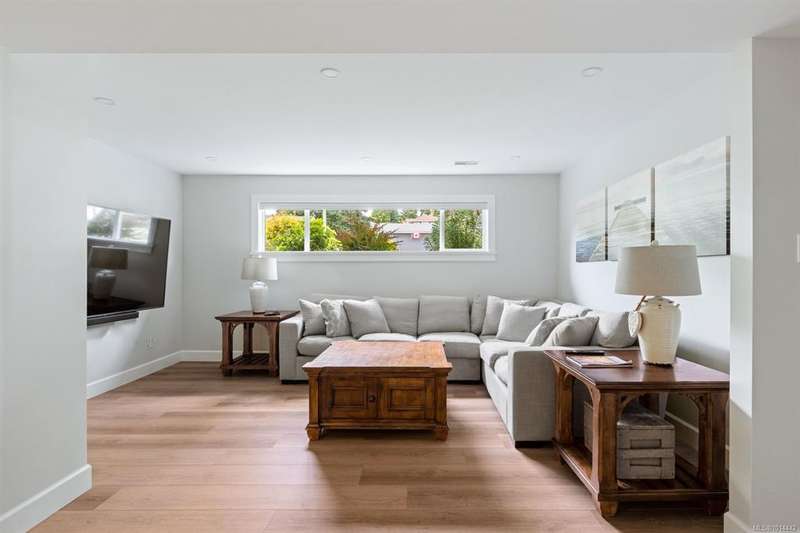 Beautifully renovated 4 bed/3 bath home with timeless appeal in sought-after Tanner Ridge! Offering 2,465 sqft of refined living space, the main level features 3 bedrooms, including a generous primary with sundeck access and a spa-like 5-piece bath. Enjoy an open-concept layout with hardwood floors, abundant natural light, and a stylish kitchen with wood cabinetry and stainless steel appliances. The lower level includes a spacious family room, 4-piece bath, laundry, and a 1-bed in-law suite. Highlights: wood burning fireplace, gas gas furnace with A/C, vinyl windows, new roof, and a large garage/workshop. Outside, relax in the fully fenced yard with manicured gardens, a sundeck, and covered patio—perfect for kids and entertaining. Close to parks, schools, and just minutes from Saanichton and Sidney.