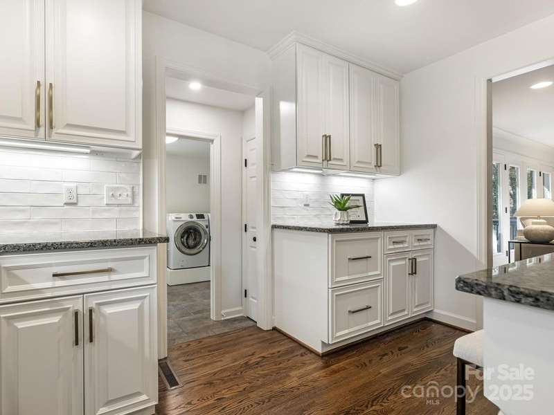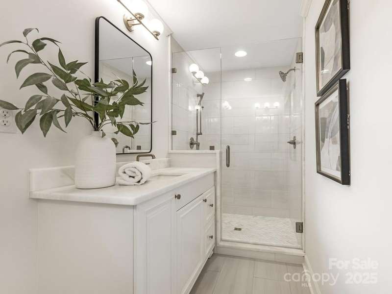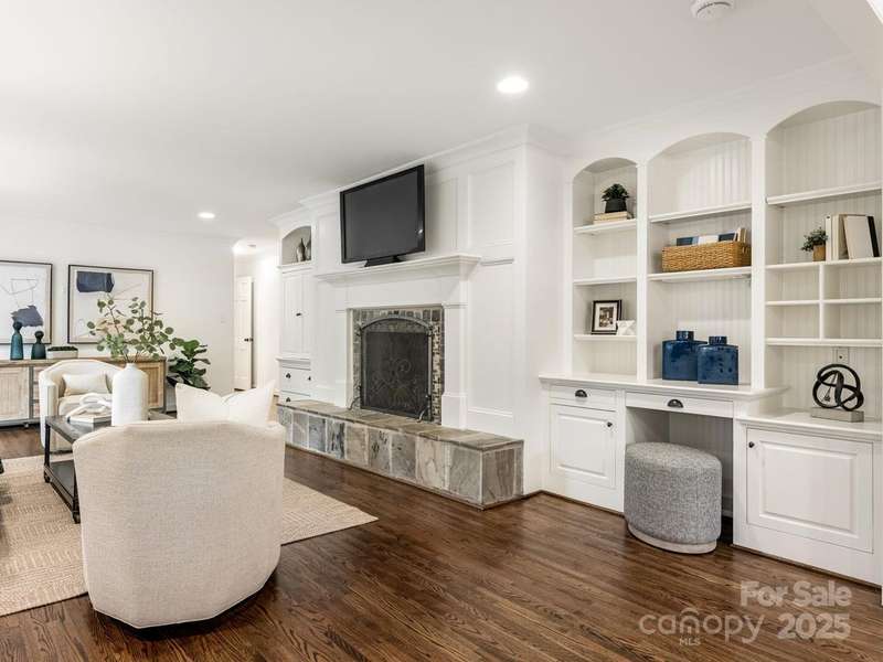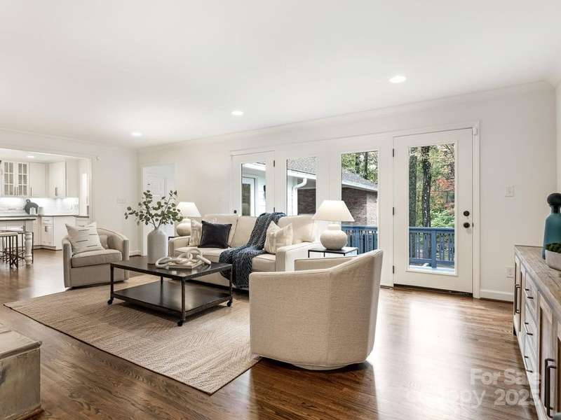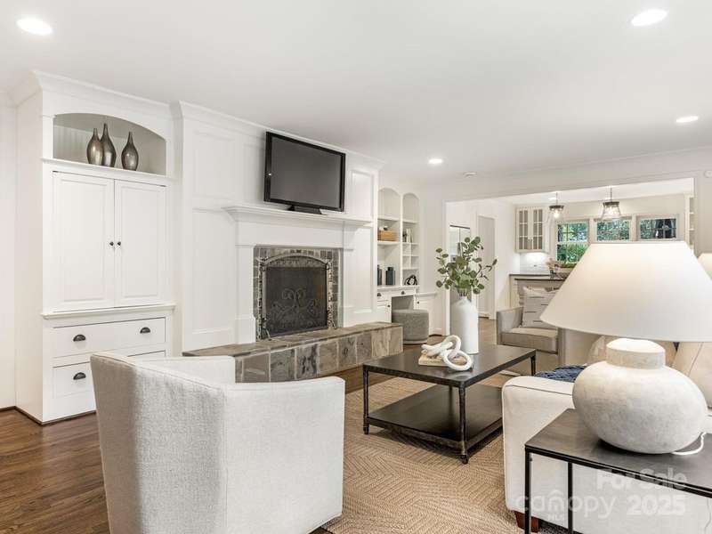 WELCOME - Picture Perfect "Like New" Updated Four Bedroom Brick Ranch Located in Highly Sought After Mountainbrook Neighborhood - Move-in Ready! Conveniently Located to Excellent Shopping and Restaurants Near SouthPark and Phillips Place. Home is Located on Beautiful .62 Acre Wooded Lot with Great Curb Appeal Complete with Irrigation and Outdoor Lighting. Tasteful Upgrades Throughout Including Refinished Hardwood Flooring in Most of Home, Fresh Neutral Colors Inside and Outside, Updated Lighting and Abundance of Recessed Lighting and So Much More. Open Kitchen/Den with Fireplace and Built-in Bookcase. Kitchen with White Cabinetry, Large Center Island with Gas Range, White Subway Tile Backsplash and Granite Countertops. Living Room, Dining Room and Private Office. Primary Bedroom with Renovated Full Bath with White Cabinetry, Split Double Vanities with Marble Countertops and Frameless Glass Shower - Gorgeous! Updated Hall Bath with Double Vanity/Quartz Countertops and Tub/Shower Combination. New Roof and Tankless Water Heater (2025). Attached Two Car Carport with Storage Room. Expect to Be Impressed!