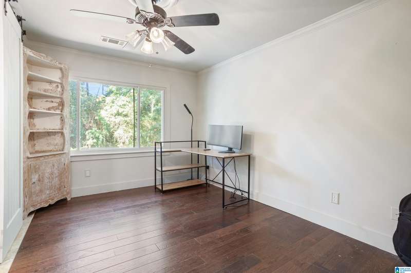 Charming & well-maintained cottage tucked away on a flat cul-de-sac lot in the heart of Hoover. 3 bedrooms, 2 baths, & additional office or 4th bedroom, this home offers flexibility, comfort, and style. Step inside to find gorgeous hardwoods in the foyer, great room, & dining area as well as vaulted ceilings in the great room. The kitchen is a standout with granite countertops, updated cabinetry and stainless appliances. Enjoy year-round outdoor living on the amazing covered back porch, just off the dining room and overlooking the private fenced backyard—ideal for kids, pets, or gatherings. Two guest bedrooms on the main level share a full hall bath, while the spacious upstairs master suite is a true retreat, complete with dual vanities, a separate shower, and a luxurious jetted tub. The add'l upstairs room makes a perfect home office, study, or optional 4th bedroom. The full unfinished bsmt offers a 2-car garage and tons of storage space—or finish it out for even more living area!