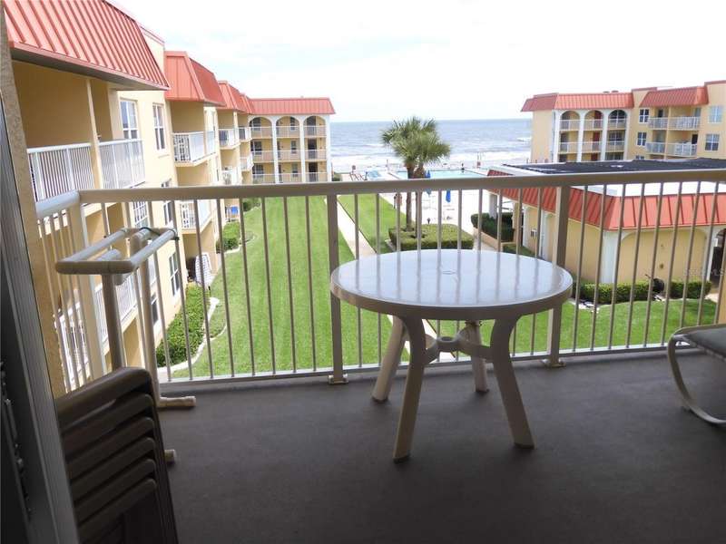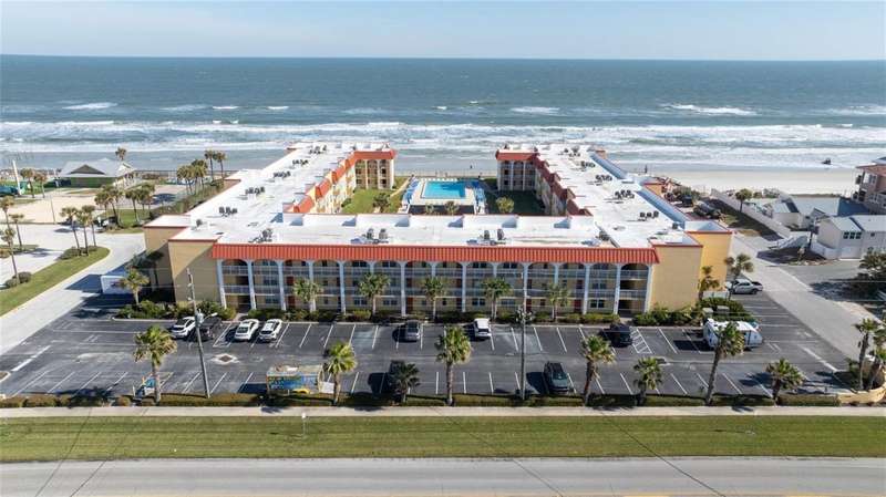 One of the best condos for the money on the car free beach in New Smyrna situated on the top 3rd floor at the popular Point East Condos! Exceptional views of the pool & the ocean from the minute you open the front door to the kitchen, to the living areas & to the spacious balcony! Fully furnished in coastal decor, this turn-key 2BR/2BA allows short term rentals, so it can be a cash producing investment that you can enjoy as much as you want between renters. Seller has many repeat renters through VRBO and will be glad to show a new buyer their website & process to accommodate & maximize potential rental income. Seller will consider owner financing with $100,000 down, 5% interest, 5 year balloon! Located on the no drive beach & walking distance to shops, church & restaurants, this property has onsite management which provides a condo that is financially & structurally in good shape! Gourmet kitchen has SS appliances new in 2020, a large pantry and is completely stocked for family get togethers! Upgrades to this fabulous condo in 2021 include new soundproof tile floors throughout, new ceilings, new doors, vanities in baths & freshly painted. Also replaced for your comfort was a new A/C 2023, new windows & doors 2018 & new water heater in 2020 & new water shut off valves. Major renovations to the community in 2021 include new roof, seawall, windows, doors, balconies & the exterior of the building & walkways were just repainted November, 2024. The building is in top condition and the budget & financial situation is also in great shape. No minimum rental period and a pet friendly complex for owners, so your large dogs are allowed! Large private storage closet, 5x5, is great for beach toys, chairs, golf clubs & fishing gear. Located one block to Shopping center with a Dollar Food store, restaurants, fitness center, hair & nail shop & only 1 mile to Publix shopping center with more shops & restaurants. Only 2.5 miles to historic Flagler Ave. where you can enjoy wine walks, art shows, shops & bistros. Enjoy the many amenities Point East has to offer, including a large heated pool, kiddie pool, clubhouse, library, bike room, shuffleboard & a private storage unit. Situated next to the 27th Ave. park which offers a kids playground, basketball, picnic tables & lots of parking for extra guest, which is allowed between 5PM & 9AM. Enjoy the Florida lifestyle today!
