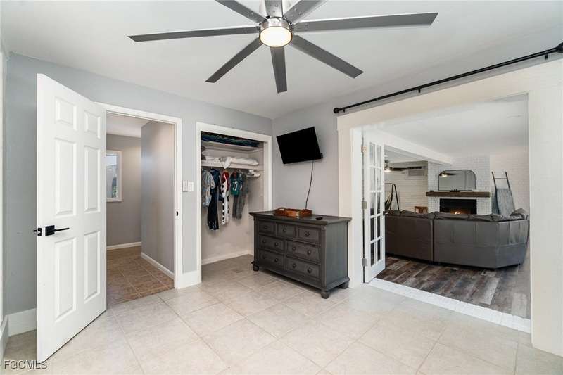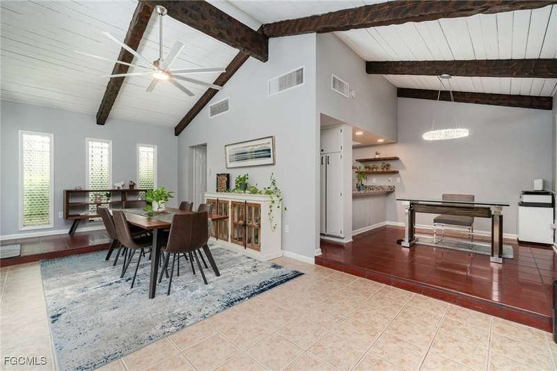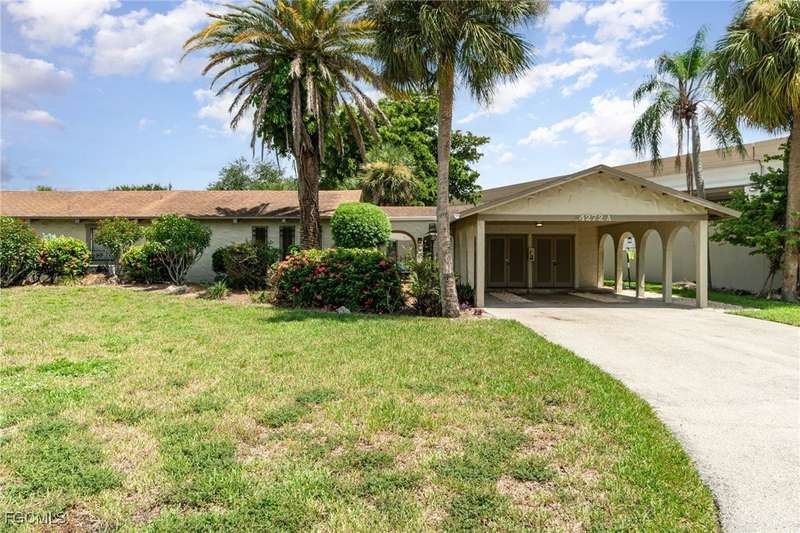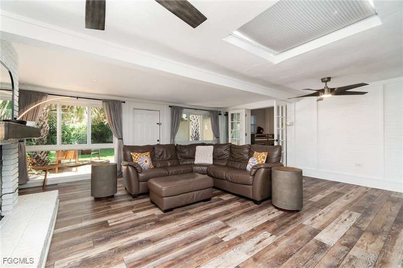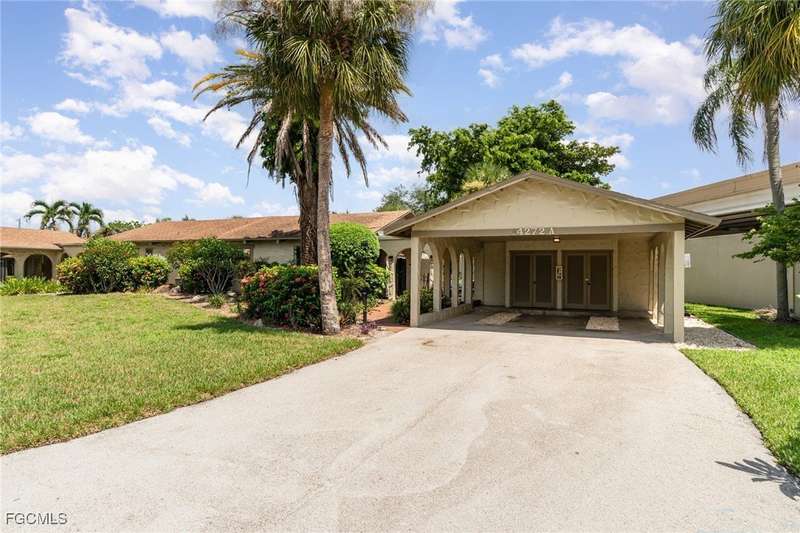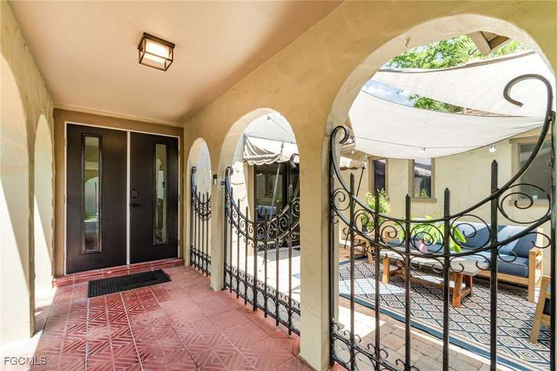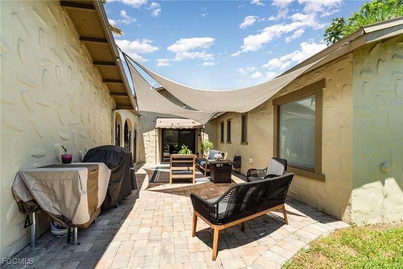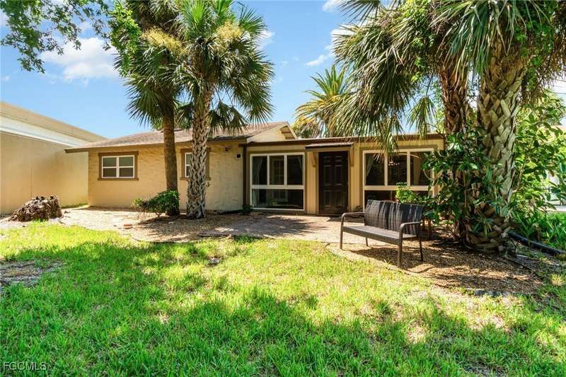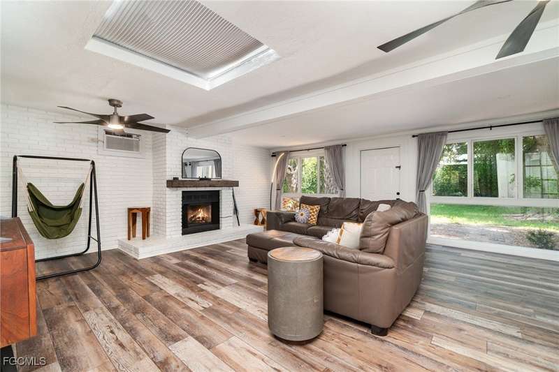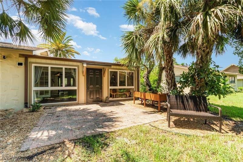 This Caloosa Bayview Village home is one of only 44 villas, and nestled in a tranquil corner of the community. Positioned in the far southeast section, this villa borders a privacy wall and is surrounded by lush green space, creating a serene and private oasis. Upgraded with modern kitchen and bathroom updates, the home features a spacious great room that combines the dining and kitchen areas. The sliding glass doors open to an exterior Spanish-style courtyard, perfect for intimate outdoor living and entertaining. The Family Florida room, adjacent to the great room, boasts a charming brick fireplace and large windows at the back, offering abundant natural light and picturesque landscape views. The guest bedroom, connected to the Florida room by garden doors, can serve as a home office or hobby room. The primary suite is situated at the far southeast end of the villa, providing privacy and seclusion. Caloosa Bayview is beautifully positioned along a canal, with water views prevalent throughout the community. Elevated in this area, the home has maintained its safety during recent storms, including Helen, Milton, and Ian - No Flooding Here! Residents enjoy numerous amenities, including a community pool, tennis courts, clubhouse with a kitchen, billiard and game rooms, fitness center with men's and women's saunas and showers, barbecue grills, and more. Located in South Fort Myers off College Parkway, between McGregor Boulevard and the Caloosahatchee River, Caloosa Bayview offers convenient access to Downtown Fort Myers, Cape Coral, Gulf beaches, and beyond! Plan your visit to this lovely villa TODAY and experience its charm and comfort firsthand. Come explore the spacious rooms, beautiful outdoor courtyard, and serene views. Get a feel for the tranquility and community atmosphere that makes this place so special. Fall in love, settle in, and make it Your New Home!