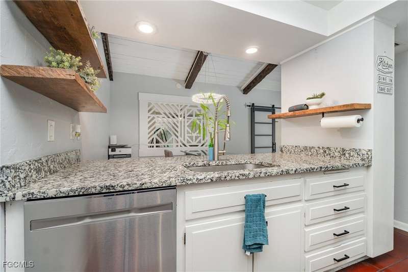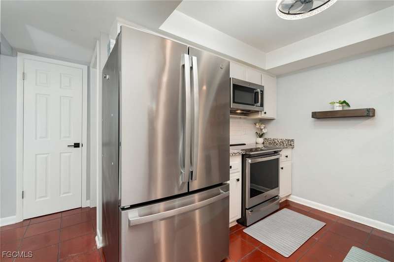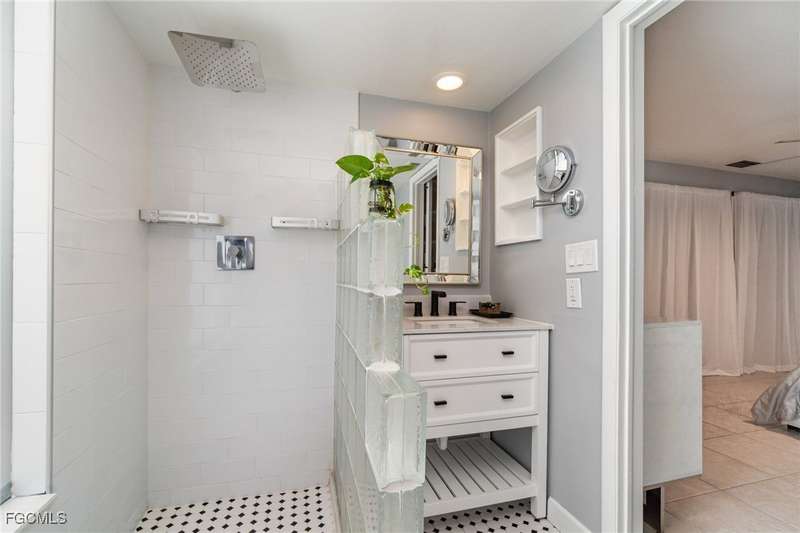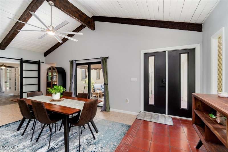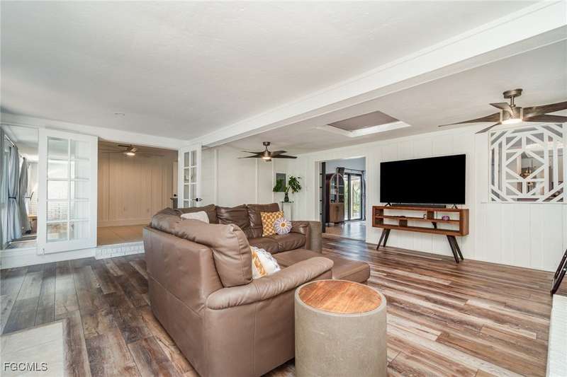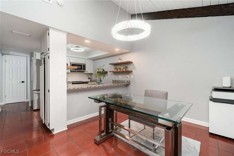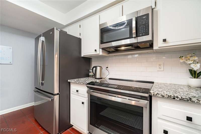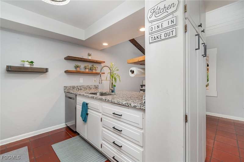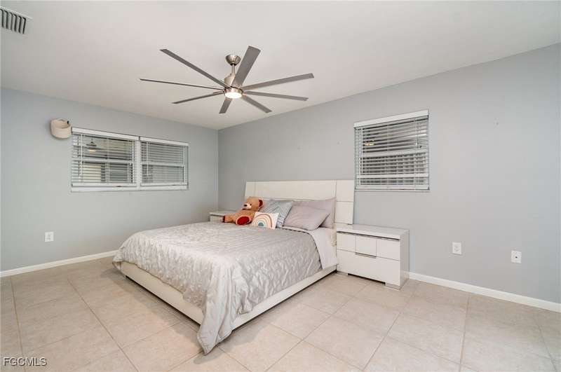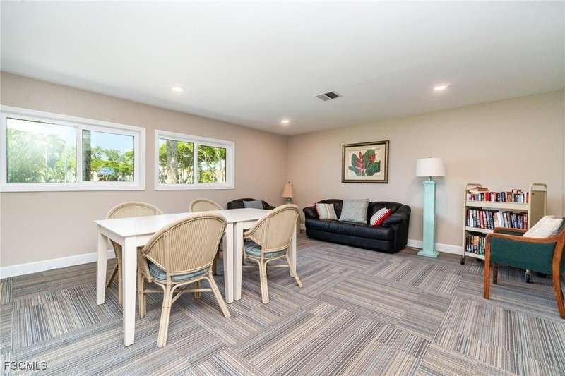 This Caloosa Bayview Village home is one of only 44 villas, and nestled in a tranquil corner of the community. Positioned in the far southeast section, this villa borders a privacy wall and is surrounded by lush green space, creating a serene and private oasis. Upgraded with modern kitchen and bathroom updates, the home features a spacious great room that combines the dining and kitchen areas. The sliding glass doors open to an exterior Spanish-style courtyard, perfect for intimate outdoor living and entertaining. The Family Florida room, adjacent to the great room, boasts a charming brick fireplace and large windows at the back, offering abundant natural light and picturesque landscape views. The guest bedroom, connected to the Florida room by garden doors, can serve as a home office or hobby room. The primary suite is situated at the far southeast end of the villa, providing privacy and seclusion. Caloosa Bayview is beautifully positioned along a canal, with water views prevalent throughout the community. Elevated in this area, the home has maintained its safety during recent storms, including Helen, Milton, and Ian - No Flooding Here! Residents enjoy numerous amenities, including a community pool, tennis courts, clubhouse with a kitchen, billiard and game rooms, fitness center with men's and women's saunas and showers, barbecue grills, and more. Located in South Fort Myers off College Parkway, between McGregor Boulevard and the Caloosahatchee River, Caloosa Bayview offers convenient access to Downtown Fort Myers, Cape Coral, Gulf beaches, and beyond! Plan your visit to this lovely villa TODAY and experience its charm and comfort firsthand. Come explore the spacious rooms, beautiful outdoor courtyard, and serene views. Get a feel for the tranquility and community atmosphere that makes this place so special. Fall in love, settle in, and make it Your New Home!