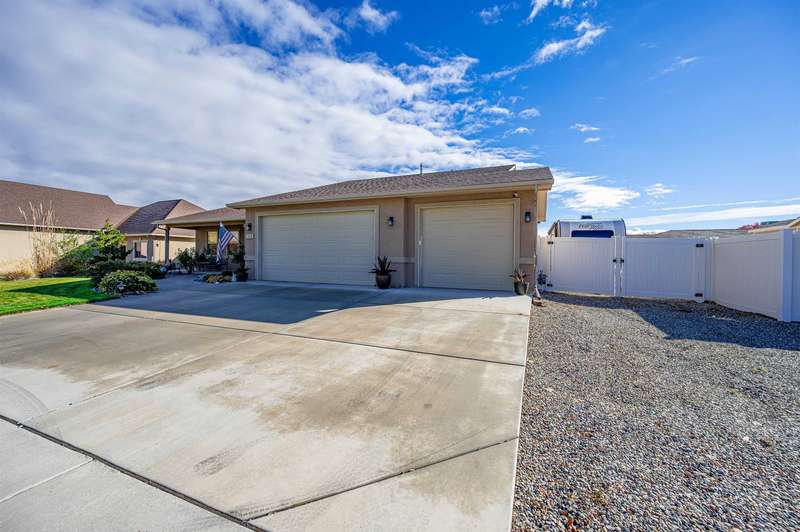 Lovely ranch style home with a 3-car garage and RV parking with outdoor charm. Step into comfort and convince with this beautifully maintained home in Grand Junction. Featuring 3 spacious bedrooms and 2 baths, this property offers the perfect blend of functionality and charm. Cozy living room with a gas fireplace - perfect for cool evenings, and the comfort of a firepit for cool summer evenings. New pergola covered back patio for shade and relaxation. Move-in ready and waiting for its next chapter. Near bike trails, golfing, and outdoor activities.