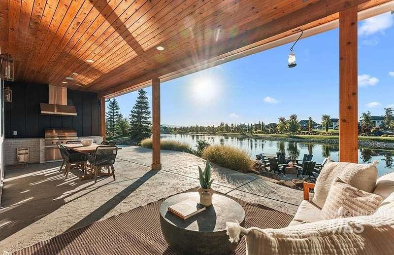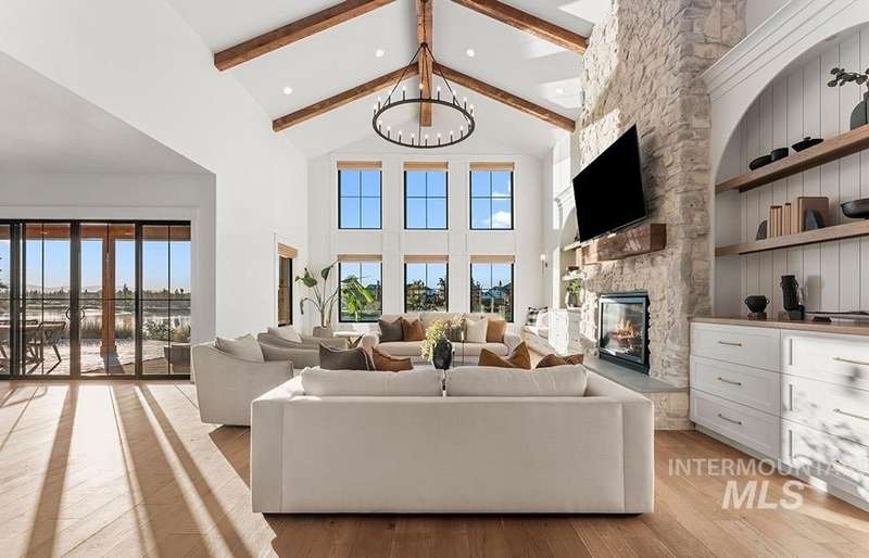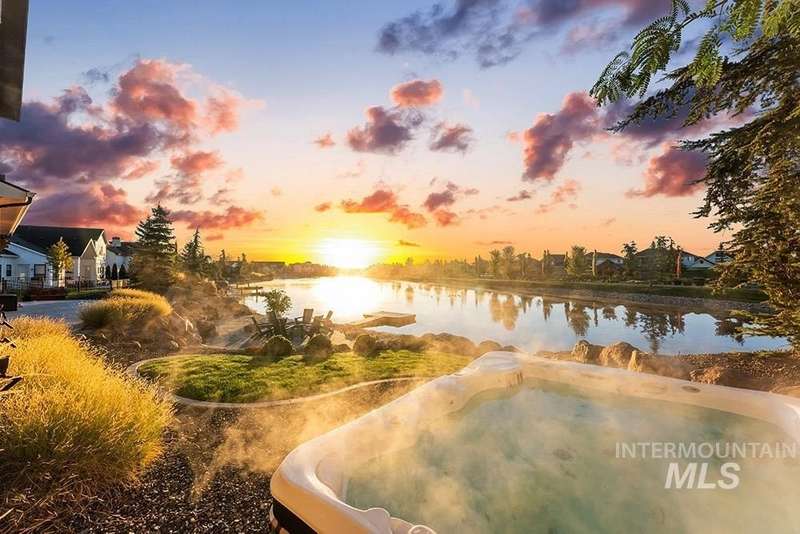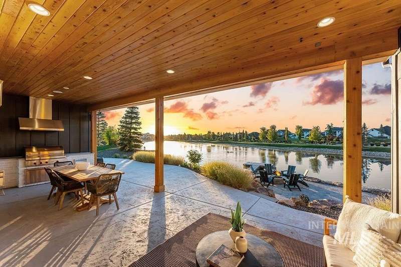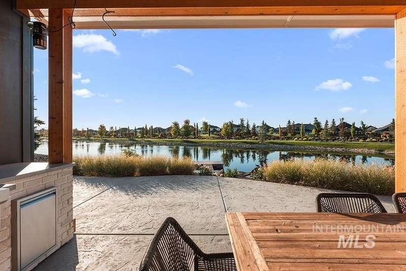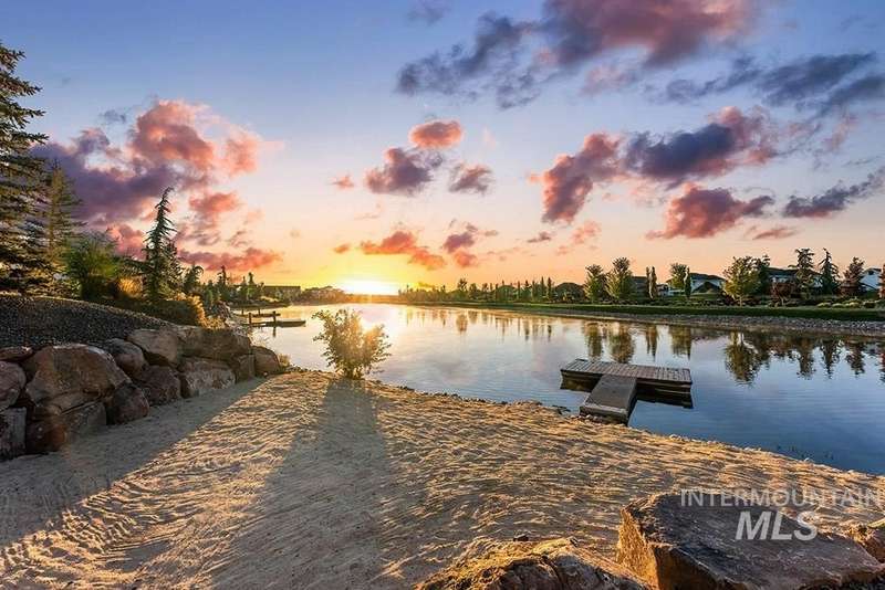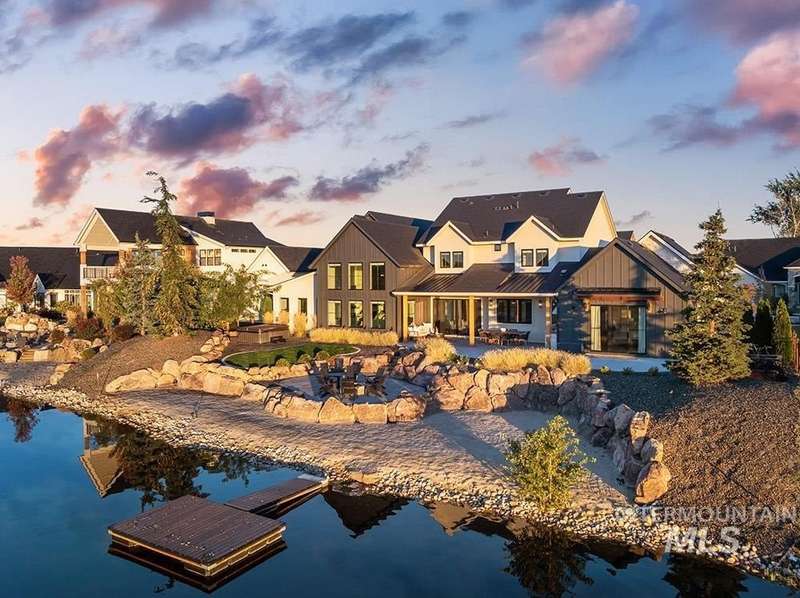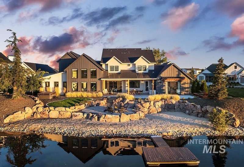 A masterfully crafted custom home set waterfront along a private lake in Legacy! Designed and built as the personal residence of a renowned local builder, this home showcases exceptional design and uncompromising comfort at every turn. Set on a sprawling 0.3+ acre lot, the property features its own sandy beach and private dock, blending luxury and lakeside living. Step inside to soaring cathedral ceilings with exposed beams, expansive water views, and a floor-to-ceiling stacked stone fireplace. The magazine worthy kitchen is lined with custom cabinetry, state-of-the-art appliances, sleek surfaces, & a prep kitchen/pantry. The main-level master showcases vaulted ceilings, patio access, and a luxe spa-inspired bathroom. Designed for comfort and versatility, the main level also includes a dedicated office/homework zone, a private gym with built-in sauna, and a dog-washing room. Upstairs, you’ll find generous bedrooms with en suite bathrooms and walk-in closets, a home theater with a nearby wet bar, a vaulted playroom, and optional 5th bedroom/dressing room. Step into the east-facing backyard, a haven for entertainers, featuring a spacious deck with an outdoor kitchen boasting a Wolf grill, offering stunning views of a waterfront firepit deck, a sandy beach, and a private fishing dock. Enjoy the 50’ RV garage, offering plenty of space for storage and recreational vehicles.