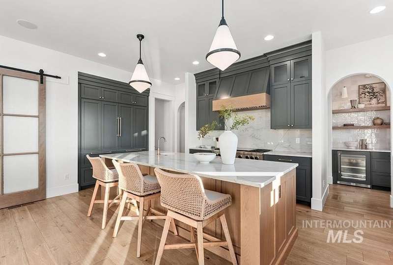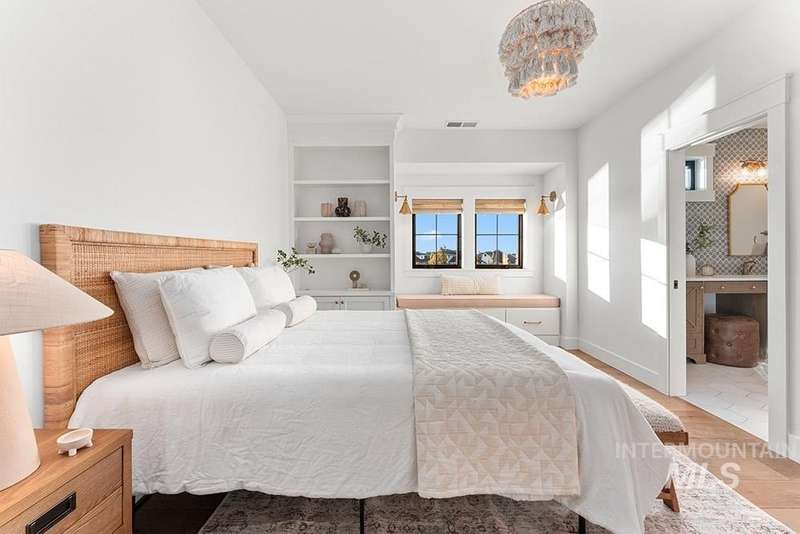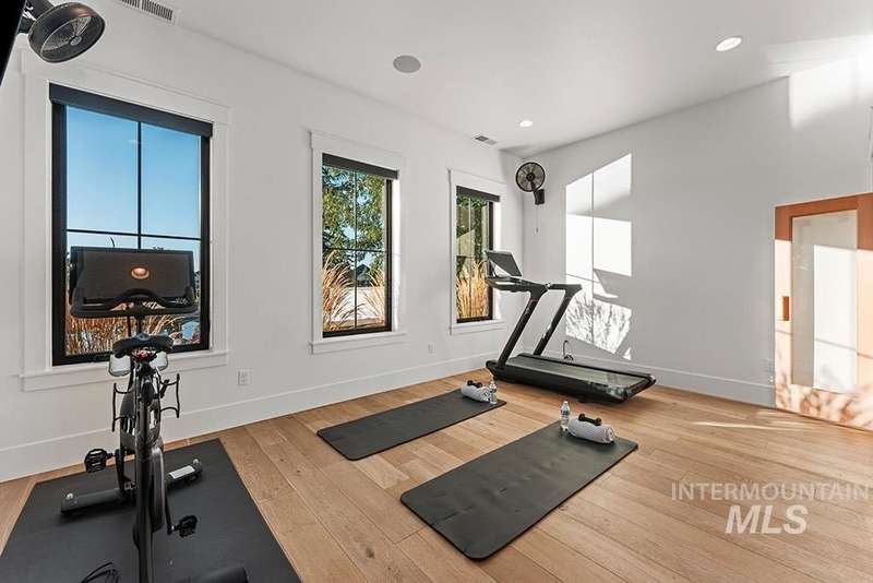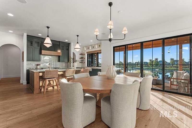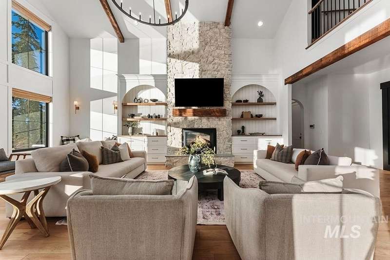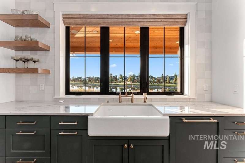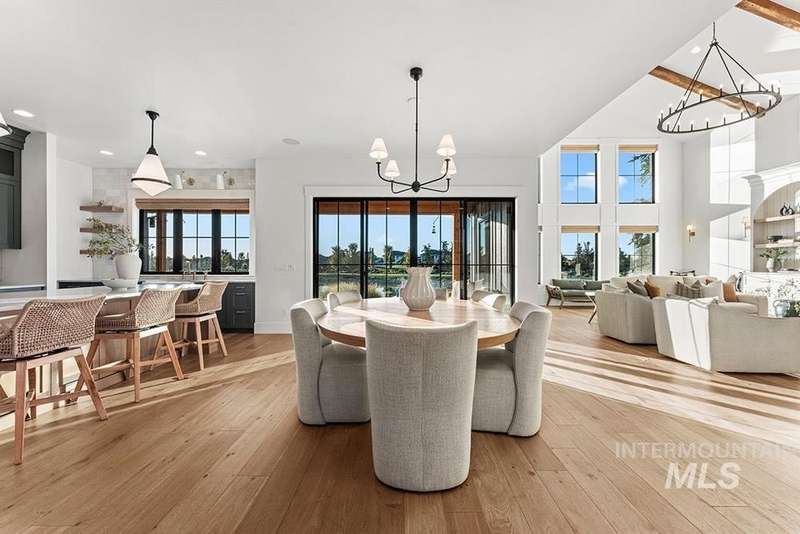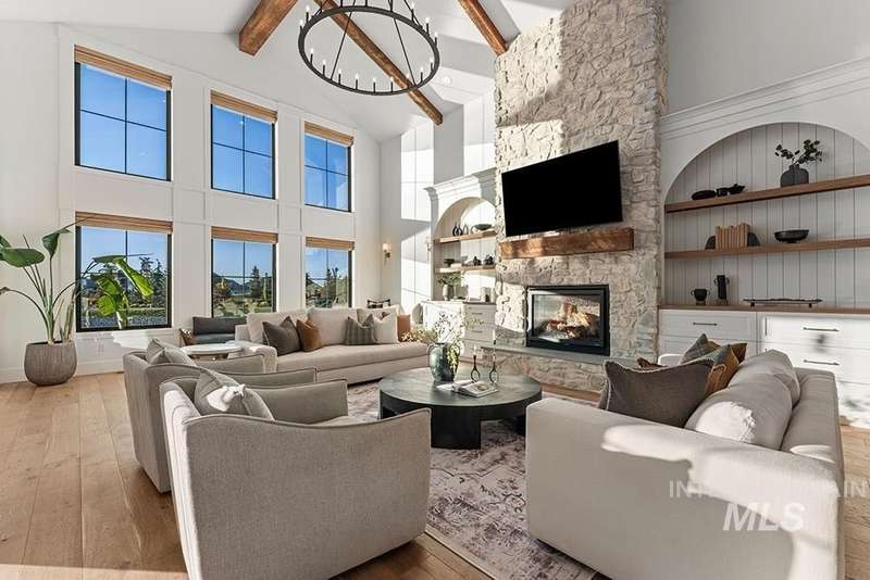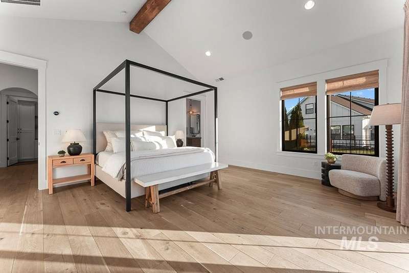 A masterfully crafted custom home set waterfront along a private lake in Legacy! Designed and built as the personal residence of a renowned local builder, this home showcases exceptional design and uncompromising comfort at every turn. Set on a sprawling 0.3+ acre lot, the property features its own sandy beach and private dock, blending luxury and lakeside living. Step inside to soaring cathedral ceilings with exposed beams, expansive water views, and a floor-to-ceiling stacked stone fireplace. The magazine worthy kitchen is lined with custom cabinetry, state-of-the-art appliances, sleek surfaces, & a prep kitchen/pantry. The main-level master showcases vaulted ceilings, patio access, and a luxe spa-inspired bathroom. Designed for comfort and versatility, the main level also includes a dedicated office/homework zone, a private gym with built-in sauna, and a dog-washing room. Upstairs, you’ll find generous bedrooms with en suite bathrooms and walk-in closets, a home theater with a nearby wet bar, a vaulted playroom, and optional 5th bedroom/dressing room. Step into the east-facing backyard, a haven for entertainers, featuring a spacious deck with an outdoor kitchen boasting a Wolf grill, offering stunning views of a waterfront firepit deck, a sandy beach, and a private fishing dock. Enjoy the 50’ RV garage, offering plenty of space for storage and recreational vehicles.