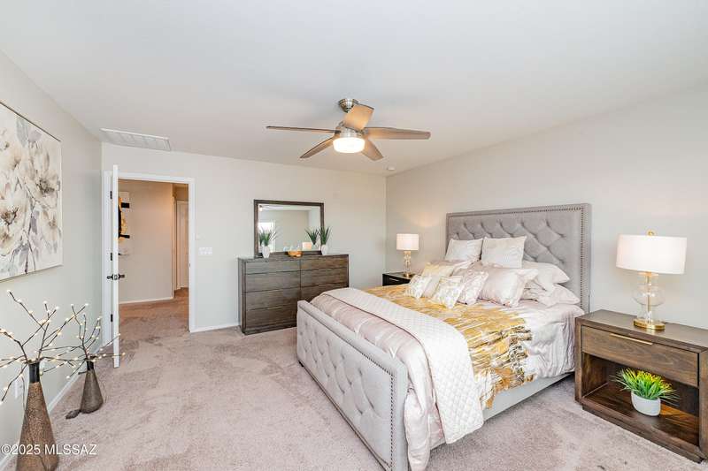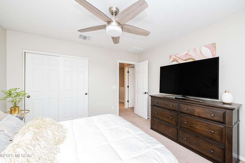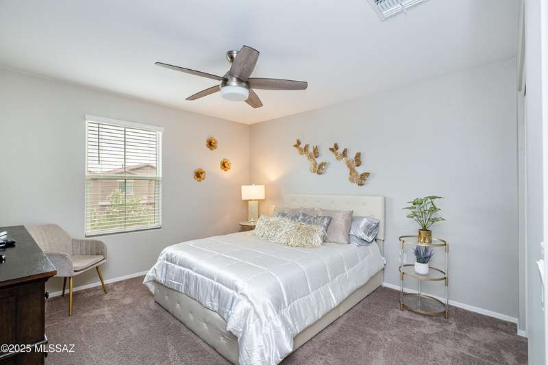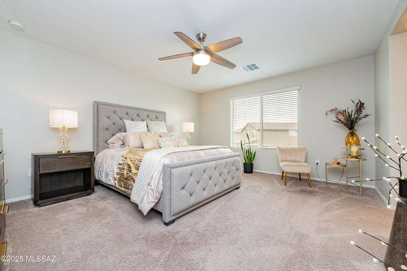 Stunning 4-bed, 3-bath Pearl plan by Richmond American Homes, built in 2022 on a Prime Double Lot. This spacious two-story features an open great room, dining area, and upgraded kitchen with quartz counters, stainless steel appliances, and beautiful white cabinetry. Main level includes a guest bedroom and full bath. Upstairs offers a versatile loft,, laundry room and owner's suite with walk-in closet and private bath. Upgrades include granite bath counters, tile flooring in wet areas, 2 yard gates, and an extended covered patio overlooking the beautiful yard. Move-in ready with modern finishes throughout.