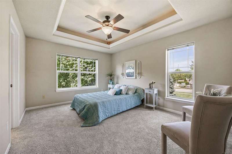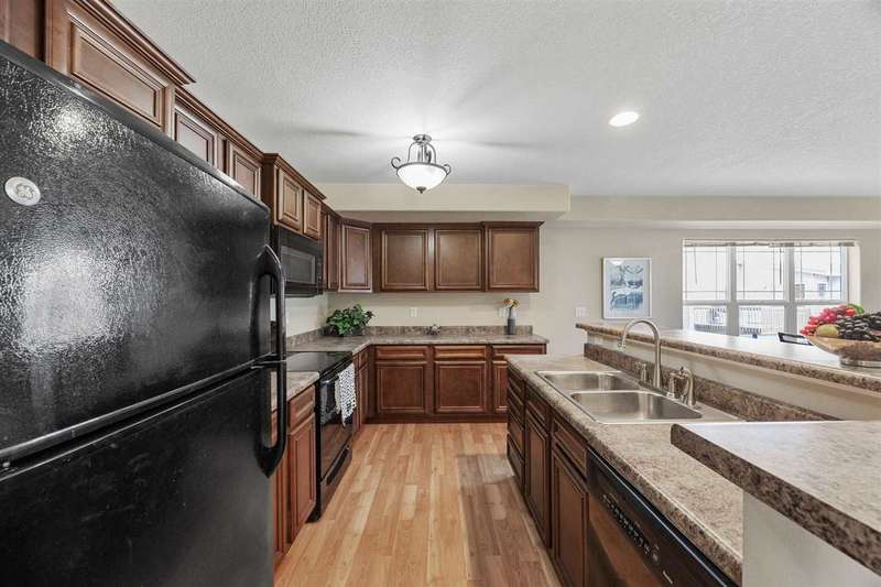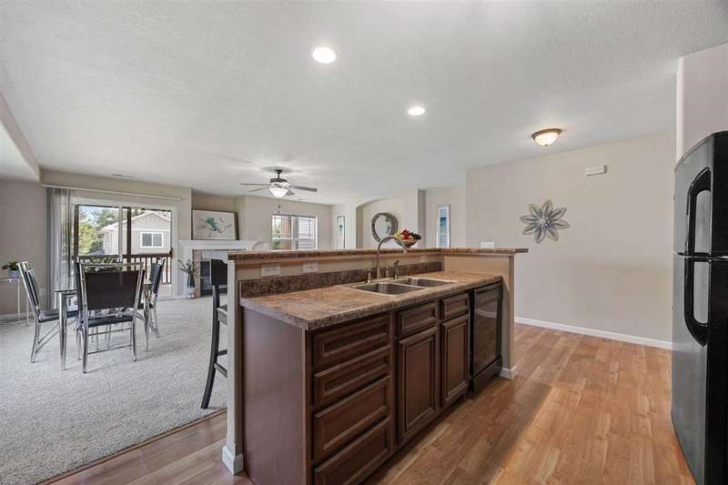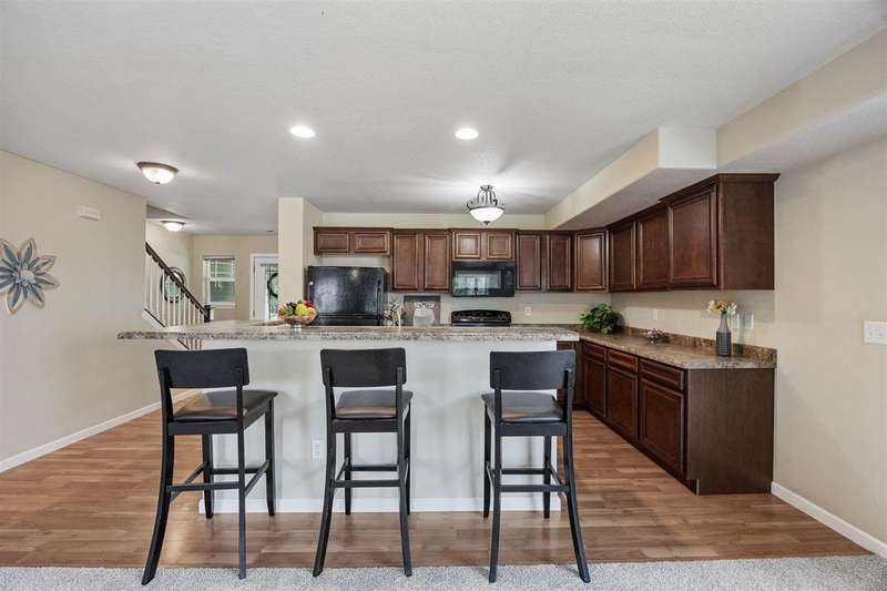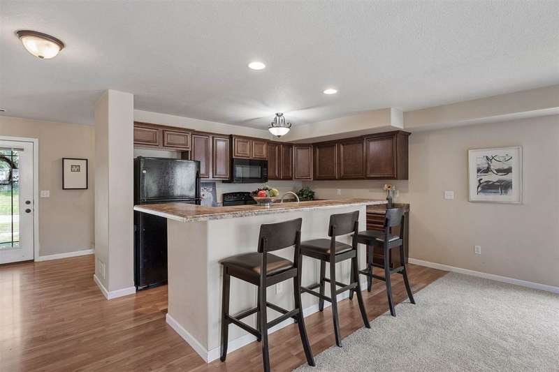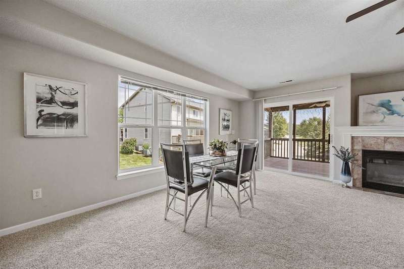 This townhome-style condo offers an open layout on the main level with a kitchen featuring plenty of counter space, dining area, and living room with a gas fireplace. From the living room, step out to the deck and screened porch for additional outdoor living. Upstairs, the primary bedroom includes a tray ceiling, walk-in closet, and private bath with a walk-in shower. A laundry closet is conveniently located in the hallway, along with two additional bedrooms and a full bath. The lower level provides a flex space that works well as a drop zone from the garage entry.