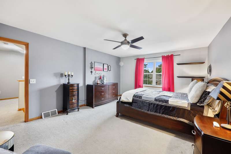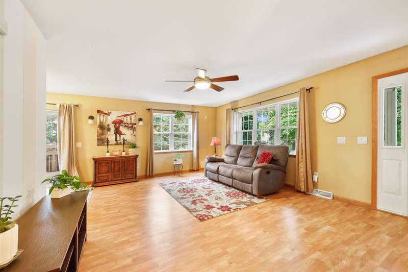 Perfect location in Hickory Meadows! Enjoy your private drive off School St & your welcoming front porch overlooking this residential street. Step inside to a spacious Living rm with plenty of windows for natural light. Area opens nicely to your dining space with private deck. Nice layout in your kitchen with plenty of cabinets & eat at counter & just steps to your private garage. Upper bdrms are beyond the norm & offer tons of space. Both include walk in closets & large windows. Charming loft makes for office or reading space on this level. Retreat to your LL family rm which is perfect for movie night. In unit laundry. Nestled on fully landscaped yard w/mature trees. UHP Ultimate Warranty. Walk to Buck & Honey’s or Prairie Athletic Club. Easy commute in any direction. Come tour today!