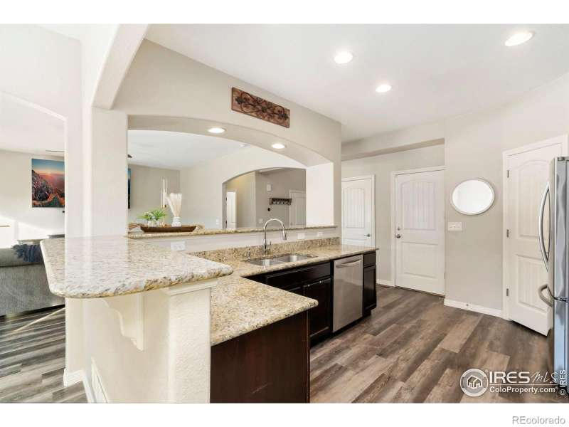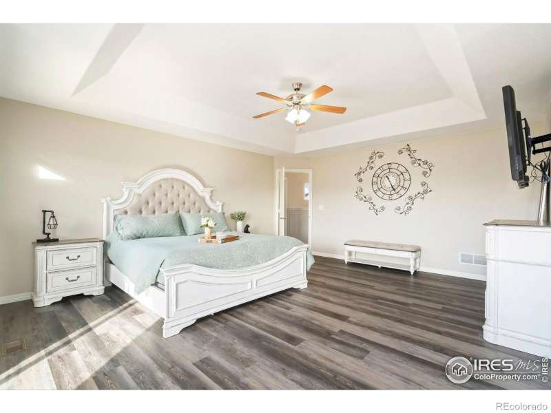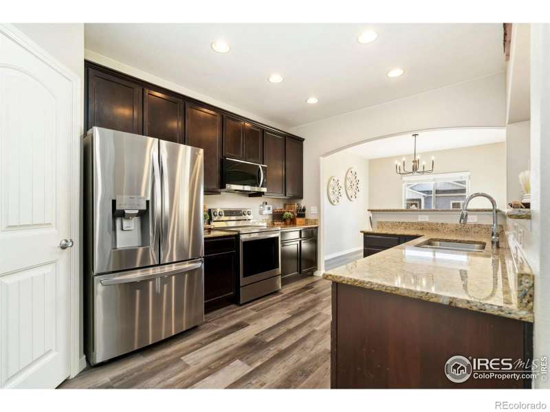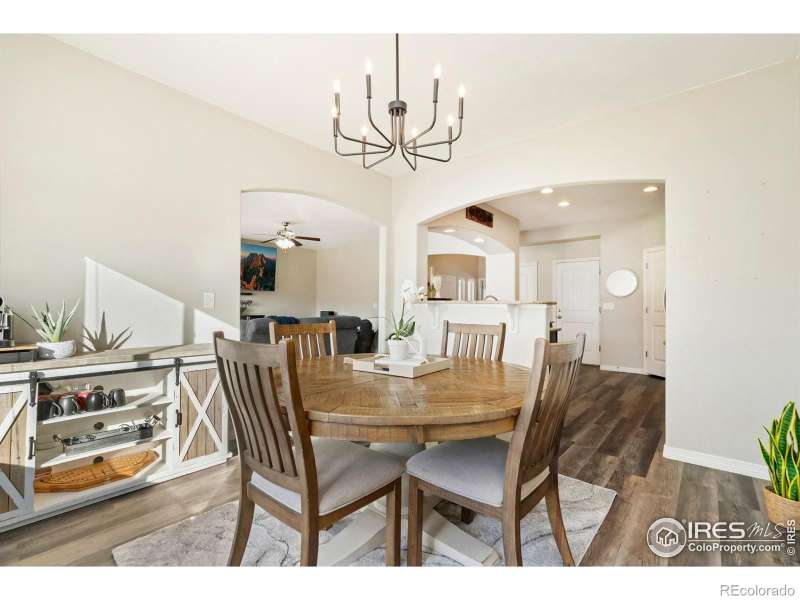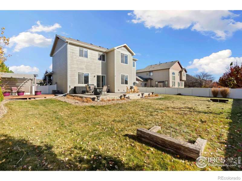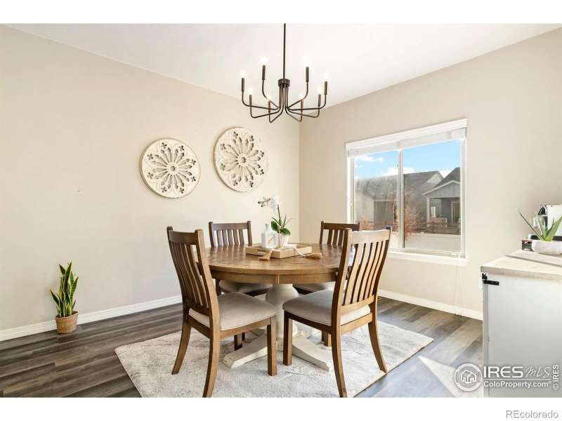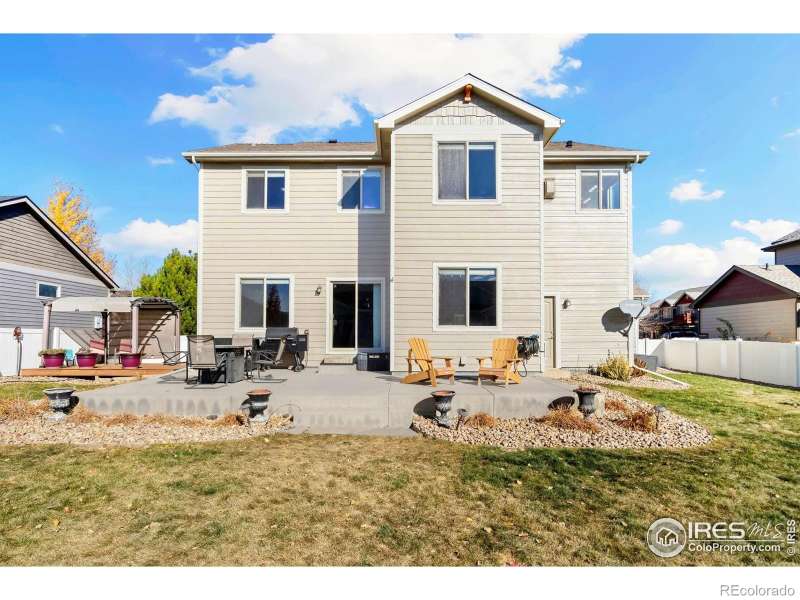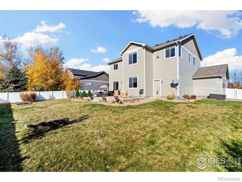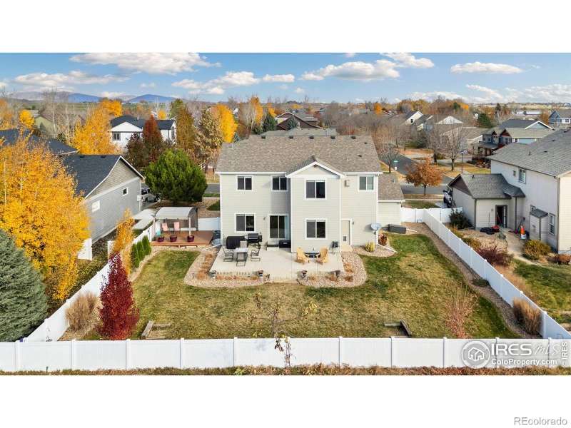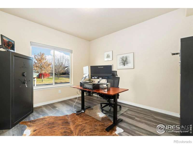 Unbeatable location near shopping, parks, trails, the Berthoud Recreation Center, TPC golf course, dining, and schools-with quick access to US 287 and I-25! This beautifully maintained home blends comfort and style throughout. Step through the inviting foyer onto newer LVP flooring, where an open-concept living room welcomes you with warmth and elegance. The chef-inspired kitchen features expansive granite counters, a large island bar, and generous prep space-perfect for entertaining. All appliances are newer for added convenience. A private main-floor office provides an ideal workspace for remote professionals. Upstairs, enjoy a well-designed layout with a convenient laundry room, three spacious bedrooms, and a luxurious primary suite offering a cozy sitting area and striking multi-faceted fireplace. The spa-like primary bath includes an oversized soaking tub and a roomy walk-in closet. The finished basement is built for entertaining, complete with a stylish bar area and space for a beverage cooler, plus an additional guest bedroom ideal for visitors. Outside, unwind or host BBQs on the beautifully landscaped patio within the fully fenced yard-perfect for kids, pets, or a friendly game of horseshoes. The impressive four-car tandem garage provides ample room for vehicles, storage, or hobbies. With a brand-new roof and no metro tax, this exceptional home truly has it all.