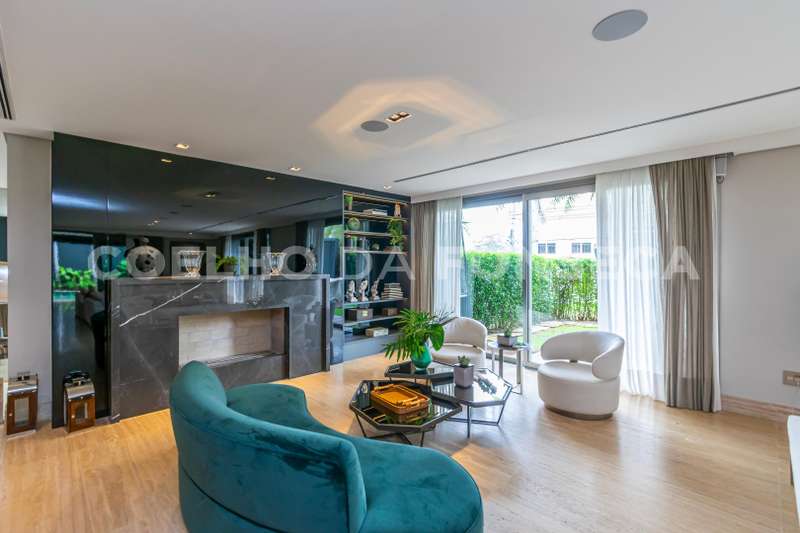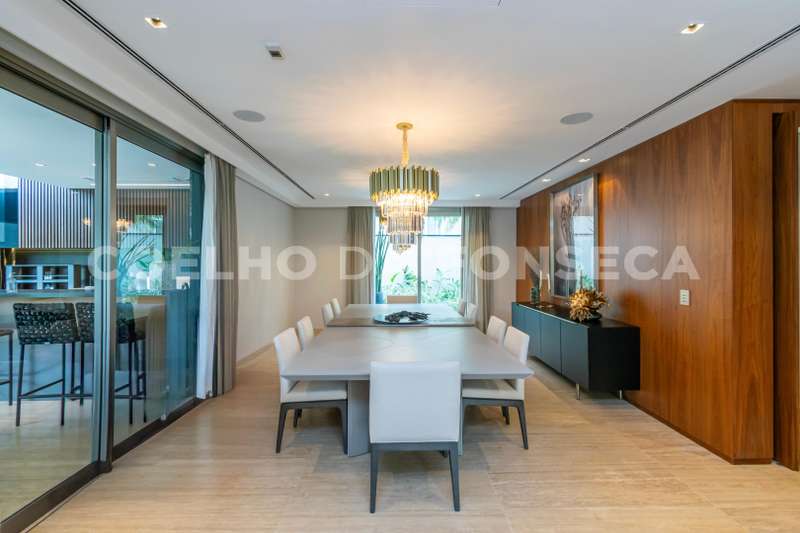 Casa no condomínio TAMBORÉ II, com 1000m² área construída, 6 dormitório(s), 6 suíte(s), 9 vaga(s), 9 banheiro(s), piscina, esquina, mobiliado (a), dep. de empregados, varanda, aquecedor solar.