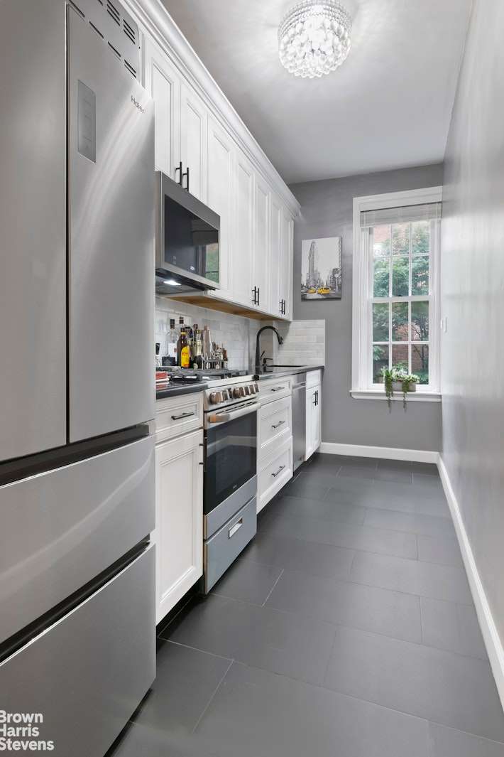 The sizeable kitchen has all new appliances ( refrigerator, oven, microwave, dishwasher, cabinetry and flooring).  Updated plastering, painting and moldings throughout. All new electrical ( circuit breaker, outlets, lines ). There is a faux electric fireplace  in the living room which looks south through treetops.  A windowed bath and kitchen, and oversized windows in the living rom and bedroom.