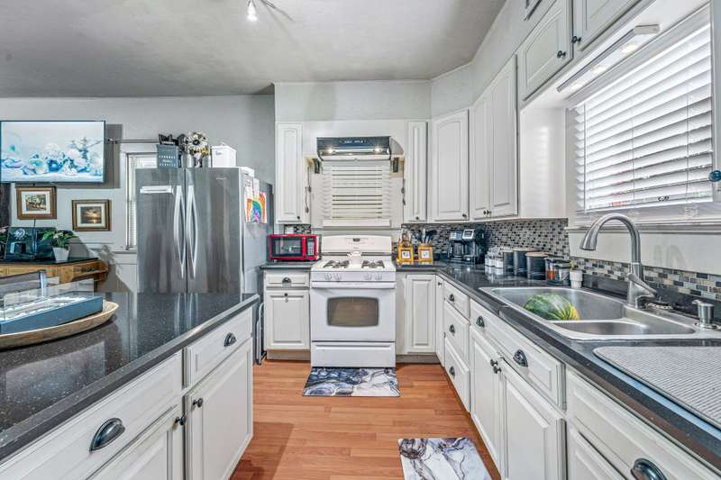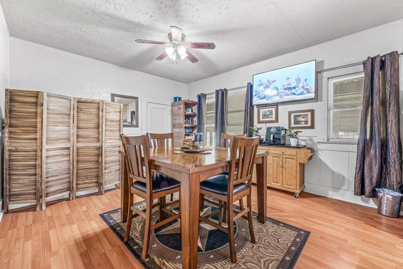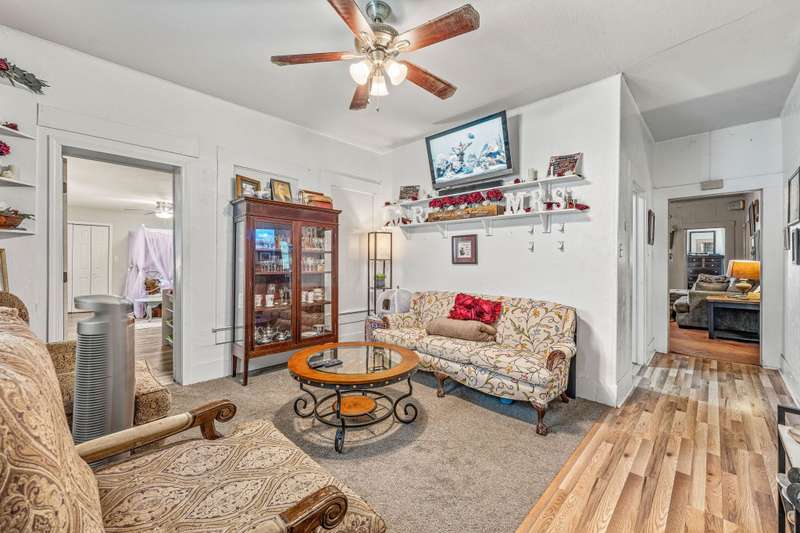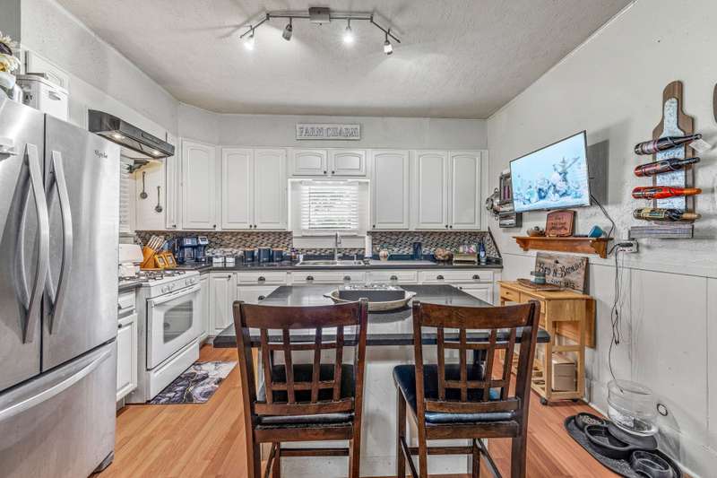 This charming 1930s rock home blends vintage appeal with modern updates on an oversized lot. Offering 3 bedrooms, 2 bathrooms, and an extra den, the layout provides flexibility and space for everyday living or entertaining. The beautifully remodeled kitchen features custom cabinetry, granite countertops, and generous prep and storage space. Throughout the home, enjoy tall ceilings, large closets, and original character that adds warmth and charm. Outside, the fully fenced backyard is ideal for relaxing, pets, or play. A large shop provides ample workspace or storage, while the detached carport and extended parking area accommodate multiple vehicles, trailers, or equipment. Great space for all your projects, animals comfortable living while being in town. With its classic rock exterior and functional design, this home is a rare find ready for its next chapter.