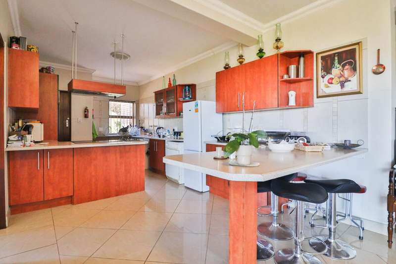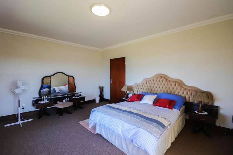 Exceptionally crafted and nestled in a prestigious locale, this property exudes refinement and sophistication. Revel in the unobstructed vistas that grace nearly every angle of this residence. This meticulously designed home, adorned with a durable tile roof, embodies the epitome of effortless luxury living. Step into the grand foyer, a prelude to the expansive open-plan living spaces. The kitchen, adorned with a charming breakfast nook and outfitted with a double eye-level oven, beckons culinary enthusiasts to create delectable delights. A seamlessly integrated scullery, with direct access to the garage, streamlines household tasks, while a dedicated study area transforms remote work into a pleasurable endeavor. Offering ample parking and storage with its three-car garage, this property ensures practicality without compromising on elegance. The main residence boasts two spacious bedrooms, two lavishly appointed bathrooms, a formal dining area, a welcoming lounge, a well-appointed study, and a convenient guest powder room. Additionally, a separate flat provides two bedrooms, a shared bathroom, a cozy kitchen, and a comfortable lounge area. To truly appreciate the allure of this abode, a personal viewing is imperative. Seize this exceptional opportunity to acquire a residence that seamlessly blends beauty with ease of maintenance.