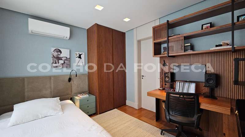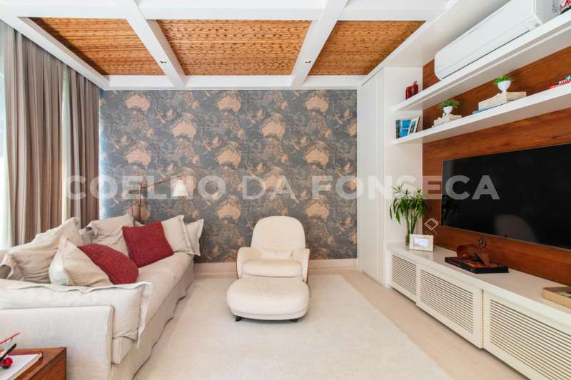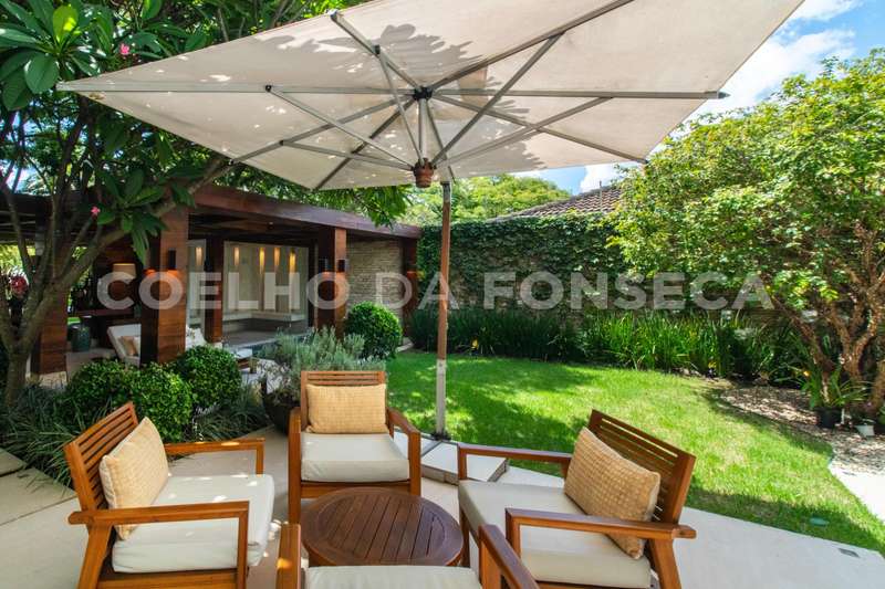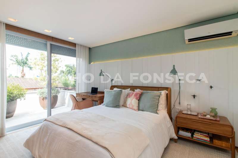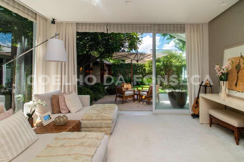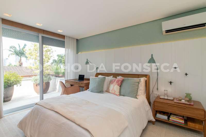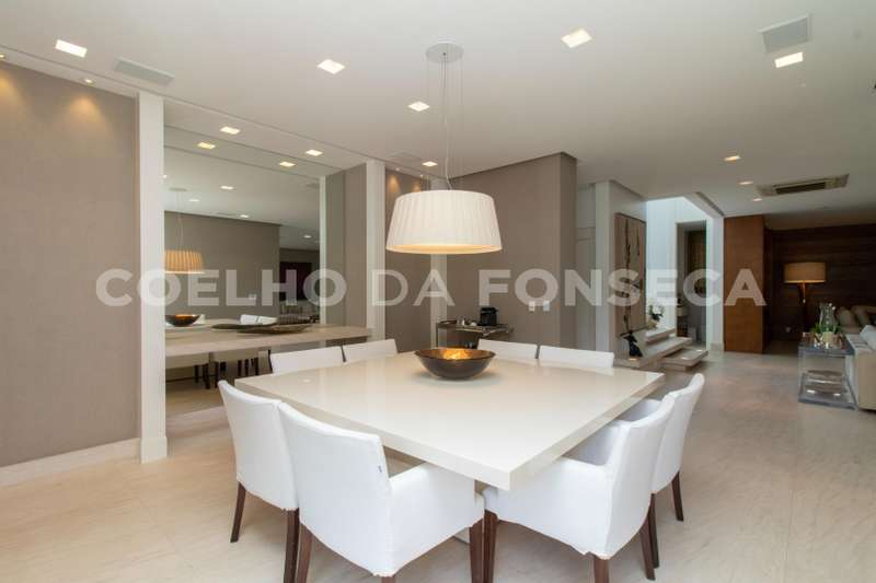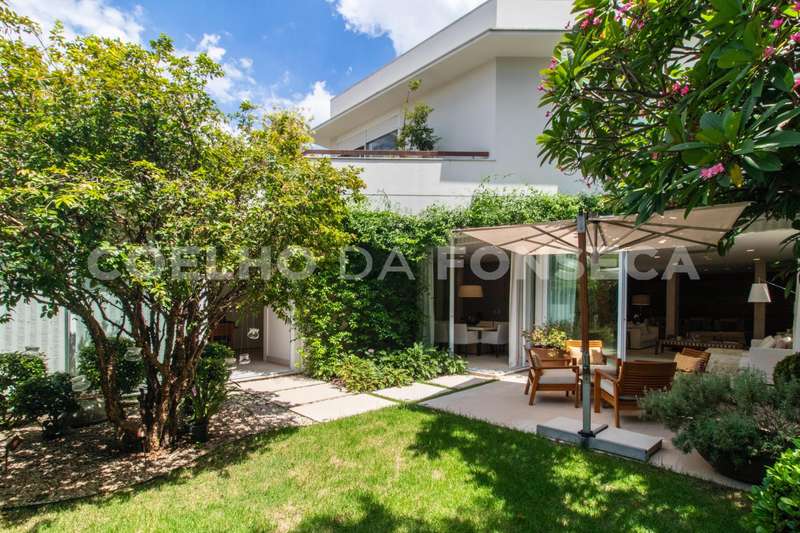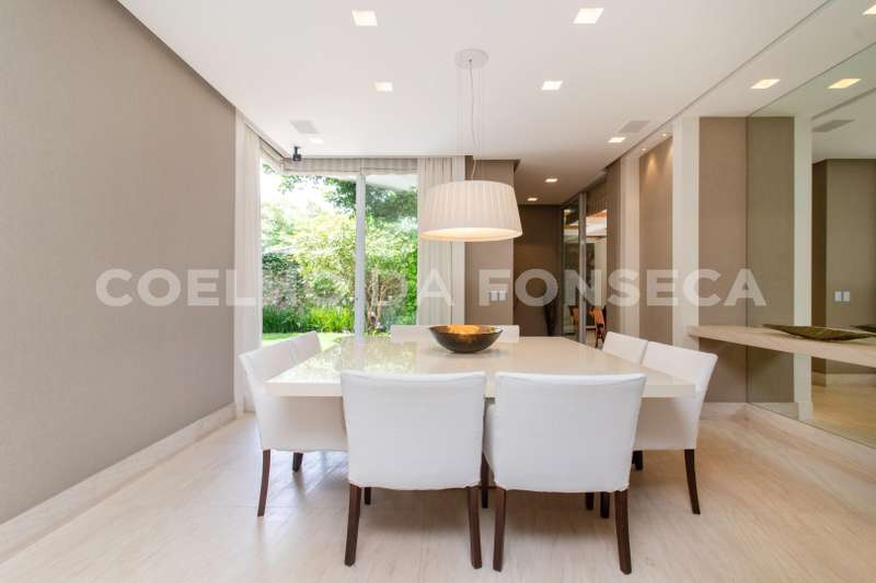 Casa em Condomínio no bairro Brooklin com 467m² área construída, 4 dormitório(s), 4 suíte(s), 6 vaga(s), 6 banheiro(s), piscina, esquina, escritório, sauna, depósito, ar condicionado, dep. de empregados, reformado (a), varanda.