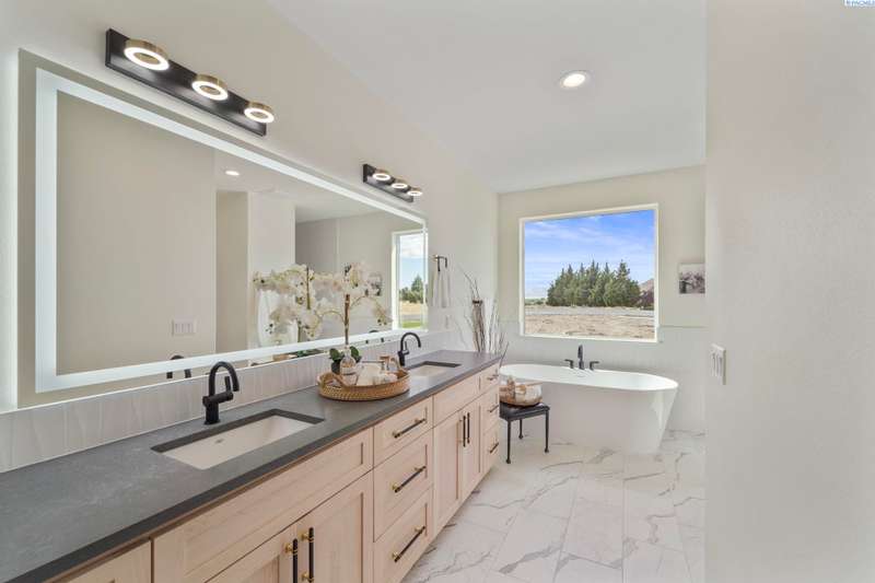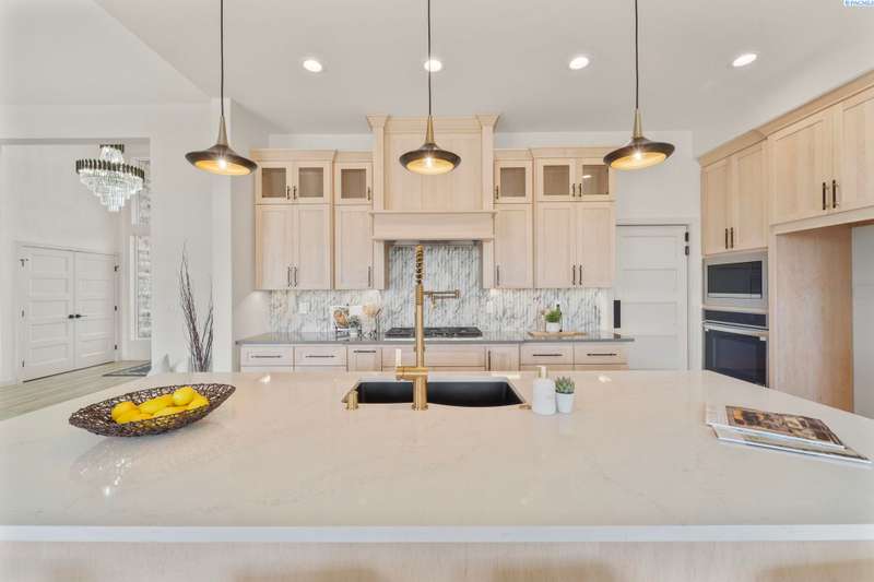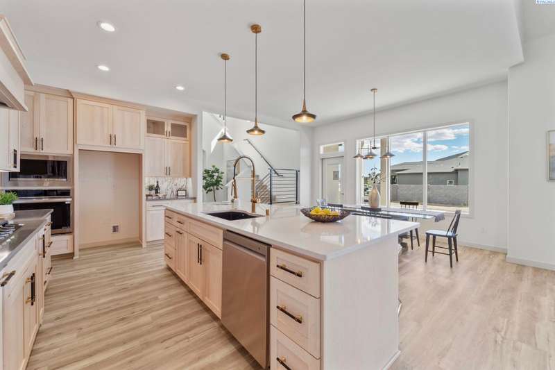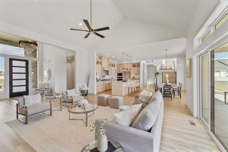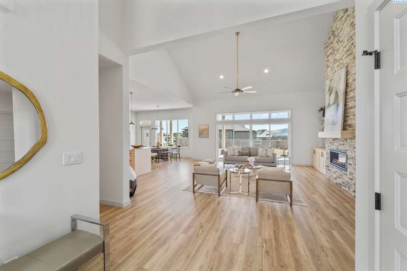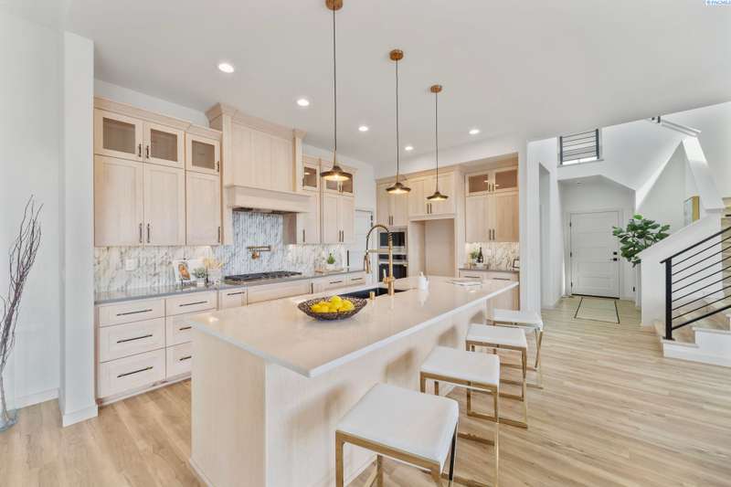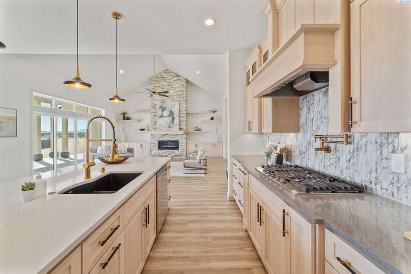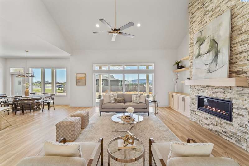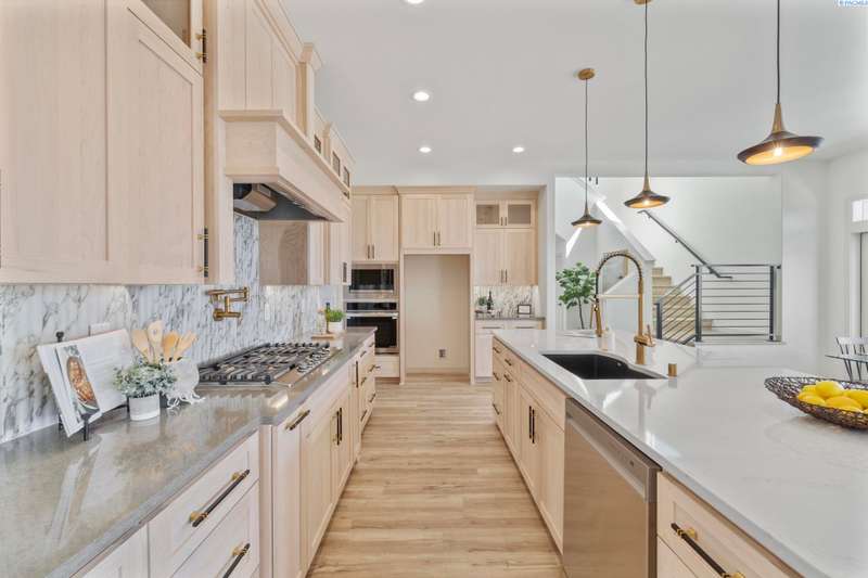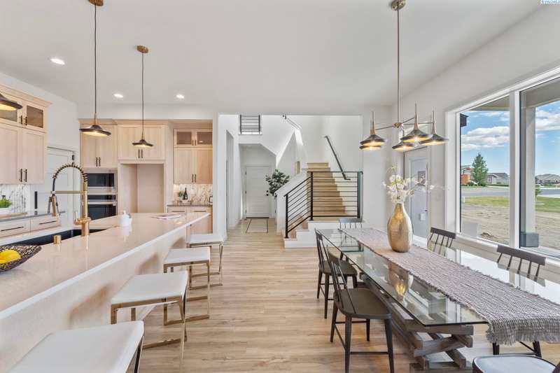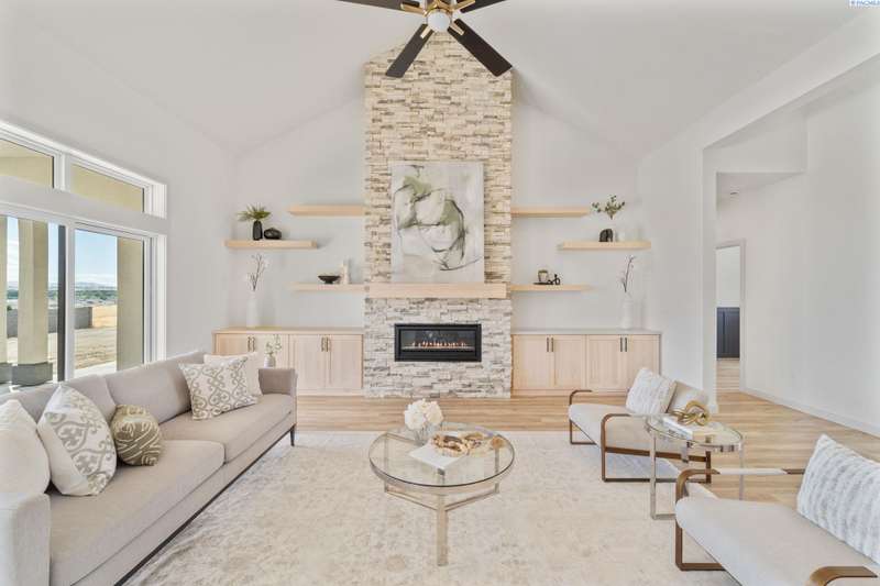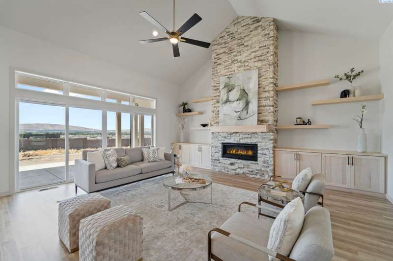 MLS# 284261 Discover unparalleled living in this exquisite custom-built home by Greg Senger Construction, boasting expansive panoramic views. Situated on a generous .65-acre lot in the prestigious Eagle Crest neighborhood of Pasco, this 3,238 square foot single-family residence offers a perfect blend of luxury and functionality. Step into a world of elegance with raised and vaulted ceilings that create an airy, open atmosphere throughout the main floor's 2,558 square feet. The great room, anchored by a cozy gas fireplace, flows seamlessly into a gourmet kitchen featuring custom-built maple cabinets, quartz countertops, designer backsplash and stainless-steel appliances and is open to the large dining area. Luxury vinyl plank flooring graces most of the home, while the primary suite and main bath boast elegant tile floors. The spacious primary suite is a true retreat, complete with a luxurious bath featuring a soaking tub, walk-in tile shower, and the convenience of stackable laundry hookups in the generous closet. Two additional bedrooms, a study, and a large laundry center complete the main floor living space. Upstairs, a 680 square foot bonus room with a wet bar and full bath provides the perfect entertainment space or potential guest quarters. This versatile area expands the home's living possibilities, ideal for various lifestyles and needs. Outdoor living is a dream with the 644 sq ft covered back patio, stubbed for a gas BBQ and offering the perfect vantage point to soak in the breathtaking river views. The expansive lot provides ample space for future additions such as a shop & pool, making it ideal for those who love to entertain or pursue outdoor passions.Additional features include a mud room for added convenience, a high-efficiency Carrier heat pump, and installed solar panels for energy efficiency. The home is plumbed for a water softener, and the spacious 1,025 square foot three-car garage is wired for an electric vehicle charger. The exterior showcases a stunning combination of stucco with krackshield, cultured stone, and wood siding accents. Located in the desirable Eagle Crest community, this home offers the perfect balance of privacy and accessibility. Whether you're seeking a family haven or an executive retreat, this property delivers on all fronts. Don't miss this opportunity to make this exceptional custom home yours. Schedule a viewing today and experience the luxury, space, and breathtaking views that could be your everyday reality.