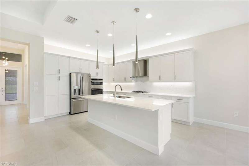 New construction available this November / December! This "Nautilus" home offers impact resistant windows throughout and has 3 bedrooms, a Den, 2 baths, 2 car garage plus golf cart storage with 24 x 24 tile throughout main living areas and bathrooms. The Open Kitchen features stainless steel GE appliances, upgraded quartz countertops and gourmet package including under and above cabinet lighting and Built-In Cabinet Pantry. The master bedroom offers a coffered ceiling, spacious his and her closets and a master bath with dual sinks. Valencia Trails is located just minutes away from shopping and dining and provides a new standard of 55 plus living by offering an exciting vacation-inspired lifestyle that rivals the finest resorts. The opulent 42,000 sq. ft. Clubhouse and Lifestyle Complex offers hundreds of exciting events including Broadway style shows, matinees, cocktail parties and galas. A full-time, on-site lifestyle staff ensures that there is something for everyone to enjoy. Photographs are from the Nautilus Model, not the actual home.