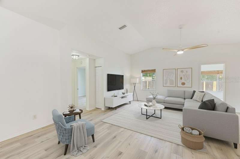 One or more photo(s) has been virtually staged. No Flood Zone • No Storm Damage • Completely Remodeled and Move-In Ready! Located just on the edge of Downtown Clearwater and only three blocks from the Intracoastal Waterway that leads directly to Clearwater Beach, this stunning 5-bedroom, 2-bath home delivers modern coastal living at its best — all just 3 miles from world-famous Clearwater Beach and the Gulf of Mexico. Step inside and fall in love with the open-concept design, vaulted ceilings, and beautiful luxury vinyl plank flooring throughout. The brand-new kitchen steals the show with gleaming quartz countertops featuring elegant gold veining, a dramatic wood-slat island with seating for six, brass fixtures, all-new stainless-steel appliances, and abundant cabinetry. The spacious great room and dining area flow effortlessly together, perfect for entertaining or everyday living. Both bathrooms have been completely remodeled with quartz counters, designer lighting, and stylish gold accents. The primary suite includes a large walk-in closet and serene en-suite bath, while the flexible split-bedroom floor plan offers space for guests, family, or a home office. Additional updates include a 2018 HVAC system. The fenced backyard offers space for relaxing, gardening, or play, and the extended driveway accommodates multiple vehicles. Please note the sq footage is approximate based on the 2 car garage being converted, the permitted sq ft on tax record is 1582. Seller offering a $5,000 credit to help buyer which could cover the cost of converting 5th bedroom back to a 2 car garage by removing wall and re-installing a garage door if desired. With no HOA fees, no flood insurance required, and a location that combines walkability to the water with quick access to the beach, this home offers the Florida lifestyle you’ve been dreaming of — stylish, convenient, and truly move-in ready.