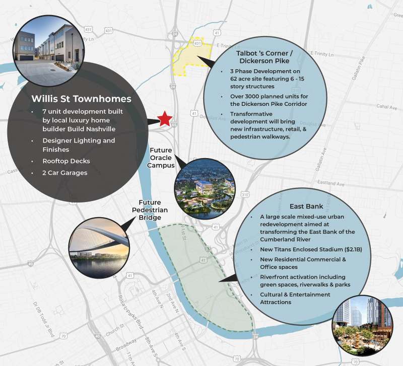 Experience elevated urban living in this stunning Nashville townhouse, perfectly positioned near the epicenter of over $10 billion in approved East Bank redevelopment. Just steps from Oracle's forthcoming global headquarters, the state-of-the-art Tennessee Titans Stadium, and a proposed pedestrian bridge connecting Germantown and Downtown, this home places you at the heart of Nashville's most transformative growth.