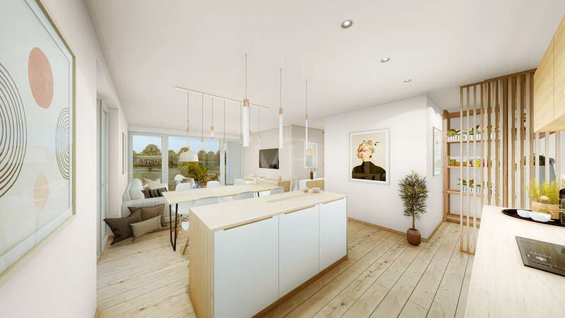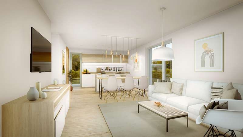 Two modern, ecologically & energetically sustainable semi-detached villas are being built here in a prime location in Kaufbeuren. The house, which has a complete basement, will spoil you on a total of 4 floors with a spacious living/ cooking/ and dining area, 5 bedrooms, a guest WC, storage room and a spacious daylight bathroom. There is also a roof terrace/balcony and terrace with direct access to the garden. The high energy standard and thus the very low heating costs characterize this property. The use of an air-to-water heat pump means you are independent of fossil fuels. Hot water is provided by a fresh water system. All living spaces are heated by underfloor heating. The temperature of each room is controlled individually with a room thermostat. The modern bathroom is equipped with an acrylic bathtub and shower tray, porcelain washbasins, WCs, towel rails, bath towel rails, paper roll holders, mirrors and washing machine connections. The spacious terrace and garden are optimally oriented to the south / west. With 2 allocated underground parking spaces, there is room for two vehicles or motorbikes/bicycles. The house can be customized to your personal wishes with a choice of different floors. In addition to the house price, the two underground parking spaces can be purchased for a total of € 50,000. Here you have the chance to turn your dream home into reality in a top location. 2 semi-detached houses are being built. Completion of the houses is planned for the end of 2025. If you are interested, we look forward to hearing from you. The illustrations are non-binding.