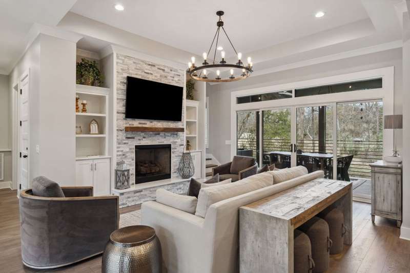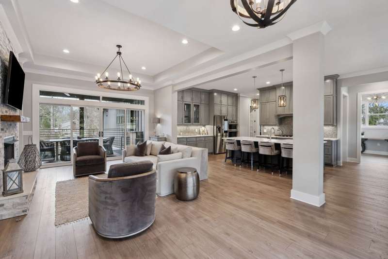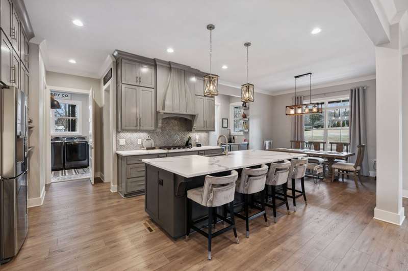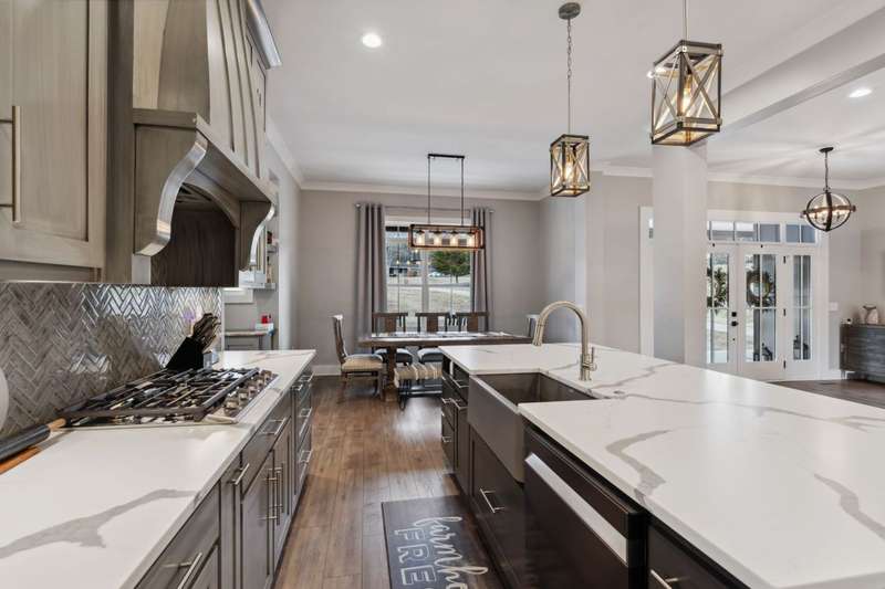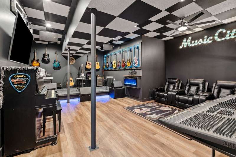 Stunning 6889 Sq Ft Residence with Recording Studio & In-Law Suite Potential! This magnificent 5-bedroom, 5 full bath, 3 half bath estate spans 1.09 acres, blending luxury, comfort, and functionality. The gourmet kitchen boasts quartz countertops, a gas cooktop, double ovens, a microwave, a disposal, and a spacious walk-in butler's pantry with granite. The primary suite is a serene retreat featuring double sinks, a separate tub, and a walk-in shower, while guest bedrooms offer walk-in showers and tub/shower combos. A professional recording studio makes this home ideal for musicians, podcasters, or audio professionals. The basement provides in-law suite potential with a plumbed kitchen area and 220V for an oven. Climate control includes gas HVAC, two water heaters (tankless), and mini-split units in the garage, bonus room, and adjacent spaces. The insulated garage features its own mini-split unit for heating and cooling.An additional garage/workshop with an insulated door and 220V power access caters to hobbyists and mechanics. Luxury finishes such as LVP flooring, granite countertops, and custom details are found throughout the home. The friend's entry and laundry room have charming brick flooring for added character. The exterior showcases Hardie board siding, a metal and shingle roof, and gas exterior lighting for a welcoming, low-maintenance environment. Two natural gas fireplaces in the great room and outdoor patio enhance warmth and ambiance. Offering modern convenience, upscale finishes, and versatile design, this residence is perfect for multi-generational living, entertaining, or creating professional recordings. Contact Spouses Selling Houses today to schedule your private tour!