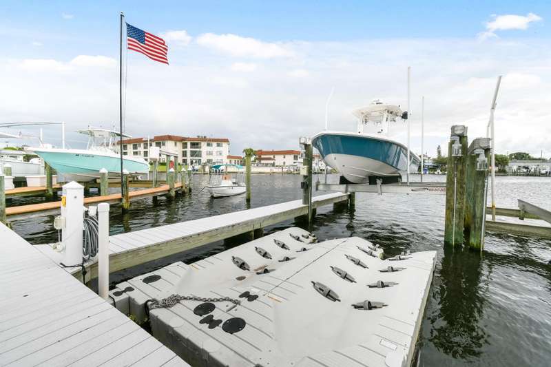 Welcome to this stunning, fully furnished waterfront condo, perfectly updated with modern coastal charm. Enjoy gorgeous water views and the convenience of a 40 FT deeded boat slip, featuring a newer elevated dock with a 24,000 lb boat lift and high-speed motors. Max beam: 113. Inside, the space is thoughtfully designed to maximize comfort and functionality. Highlights include complete hurricane impact windows,stainless steel appliances, gorgeous quartz countertopsand a newer central A/C. Whether youre boating out to Peanut Island or the Palm Beach Inlet, youll appreciate this ideal location. Youre also just minutes from I-95, PBI Airport, and some of the areas best shopping and dining.All measurements are approximate.Call today to schedule your private showing!