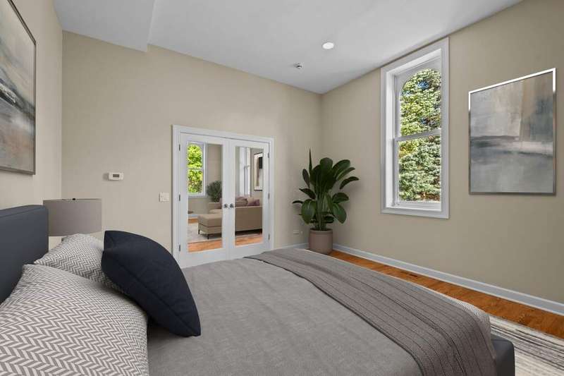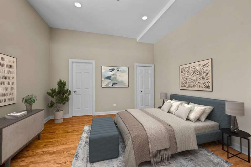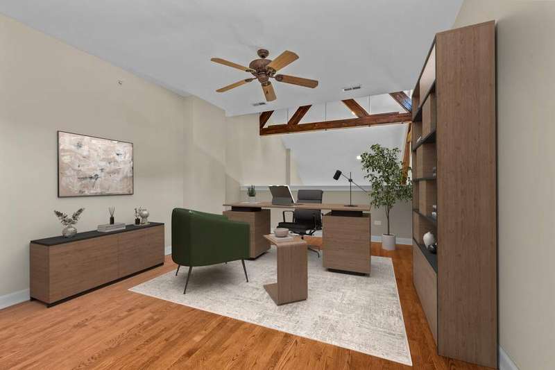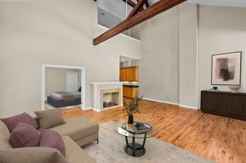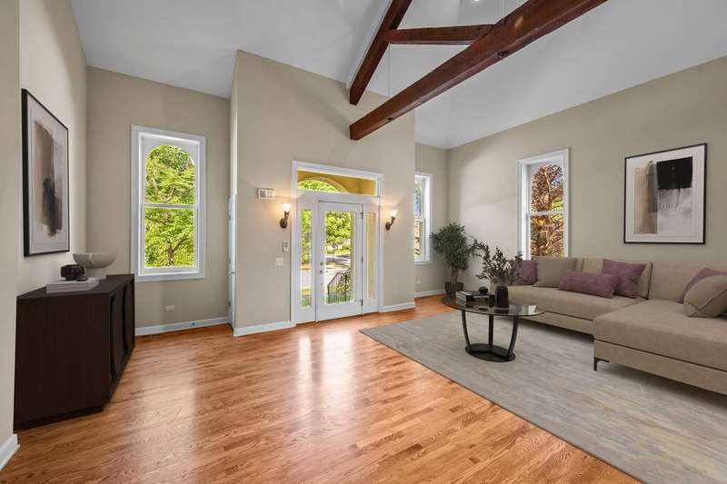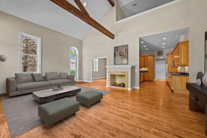 Welcome to Fort Sheridan! Bright and beautifully maintained, this southern-exposure end unit 2 bedroom + loft townhome offers over 2,550 sq. ft. of thoughtfully designed living space. Gorgeous hardwood floors flow throughout much of the home, creating a warm and cohesive feel. The spacious living room welcomes you with soaring vaulted ceilings, arched windows and a gas fireplace. The main floor features an en-suite bedroom, a stylish kitchen with granite countertops, stainless steel high-end appliances including a double oven, and a convenient powder room. A spacious laundry/mudroom leads directly to the attached two-car garage. Step outside to a private south-facing patio-perfect for relaxing or entertaining. Upstairs, the expansive primary suite boasts a spa-like bath with a large walk-in shower, separate soaking tub, and double vanity. A generous walk-in closet and an oversized open loft provide flexible space for work or relaxation. Easy-access attic storage adds even more convenience. Enjoy Fort Sheridan's unique blend of natural beauty and lifestyle amenities, including miles of scenic trails and multiple beach access points. Walk to the Metra, Starbucks, shops, and Highwood's vibrant restaurant district.