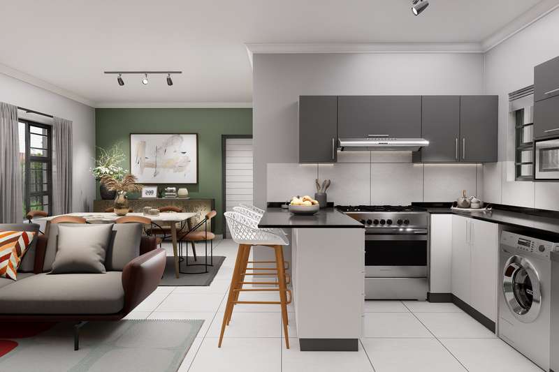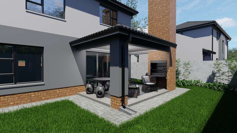 Welcome to your dream home in the making – a 210 sqm double-storey haven where modern design meets everyday comfort. Step into an airy open-plan lounge and dining area that flows seamlessly onto a covered patio with built-in braai – ideal for relaxed family dinners or vibrant all-season entertaining. A guest bathroom downstairs ensures convenience for visitors. Gourmet Kitchen Perfection The heart of the home is a stylish kitchen featuring sleek Quartz countertops, a Defy 4-burner gas stove, and a scullery – the perfect balance of elegance and functionality. Private Upstairs Retreat All bedrooms are tucked away upstairs for added privacy. The main bedroom boasts a luxurious ensuite bathroom, creating the perfect end-of-day sanctuary. Enjoy cozy family time in the pyjama lounge, ideal for relaxed evenings. Practical & Secure 1.8m high boundary wall with pedestrian gate for added privacy Double garage option only – no compromise on space or security Family-Focused Estate Amenities Landscaped communal gardens for strolls and relaxation A safe children’s play area – where kids can be kids Built for Modern Living Save on monthly costs with a 200L solar flat panel split system providing energy-efficient hot water. All-Inclusive Pricing – No Hidden Fees: ? NHBRC registration ? VAT included ? Attorney & admin fees ? Interim bond interest ? Water & electricity connection fees and deposits Customise Your Finishes Create a home that reflects your style with curated options for: • Floor tiles • Kitchen cupboards & splashbacks • Countertops • Built-in bedroom cupboards • Bathroom tiles & vanities Exciting progress on site! ? Estate roads are now complete, making access smooth and convenient. Inside the show house, tiling has been completed, and bedroom cupboards are fitted. Work is currently underway on the kitchen installation, bringing us closer to the final finish. Stay tuned for more updates as we move towards showcasing the completed unit!