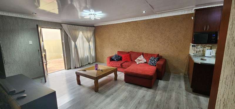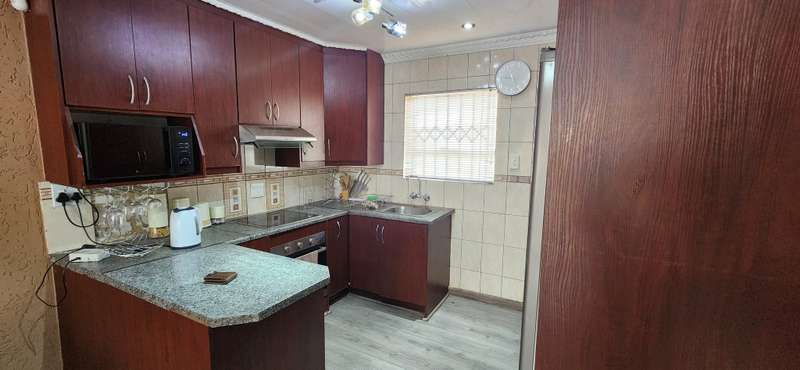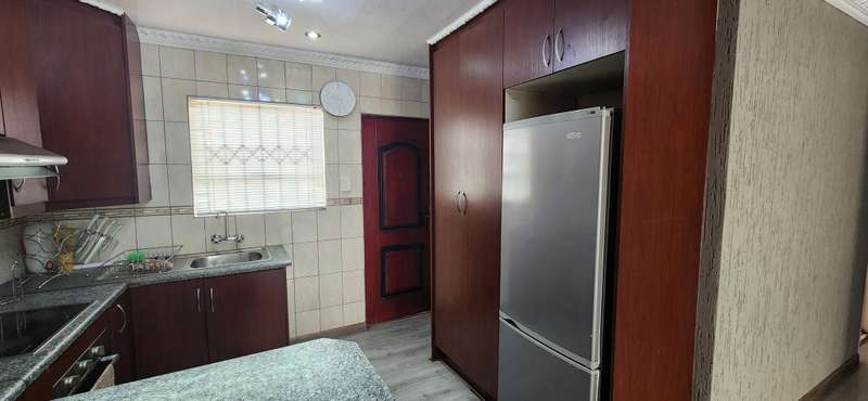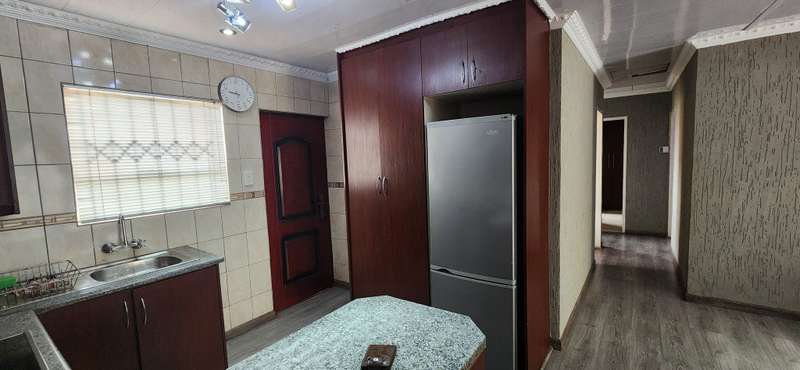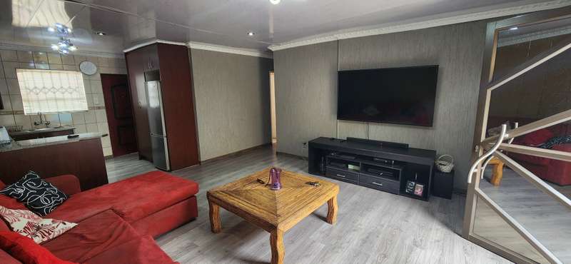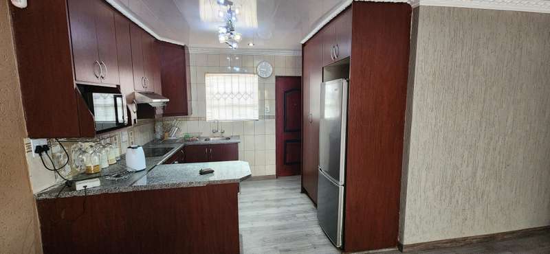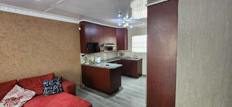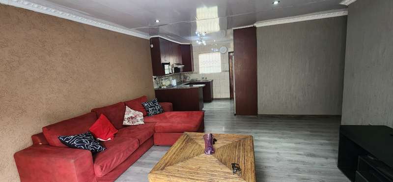 Step into this beautifully designed home offering 3 spacious bedrooms, including a main en-suite, and 2 bathrooms. The moment you enter, you’re welcomed by a bright, flowing open-plan reception area that seamlessly connects to a modern, fully fitted kitchen—perfect for effortless family living and entertaining. Additional features include: Double garages plus double carports for extra parking Pre-paid electricity for cost-effective, convenient living Fully walled property with alarm system and electric fencing for peace of mind This home offers comfort, security, and practicality—all in one. Contact me today for assistance with your pre-approval and to arrange your private viewing.