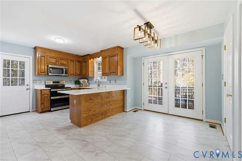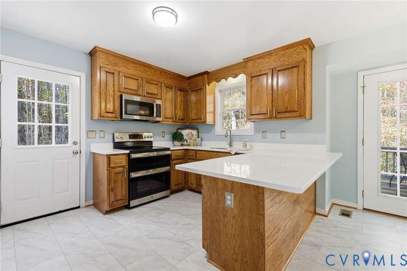 Beautiful Traditional Cape Home on over 5 Acres in the heart of Dinwiddie! This country home is located on a private road with lush landscape all around. A large front porch greets you and leads you into the family room with hardwood floors and fireplace. Open to the dining area, this is truly the heart of the home. The dining is open to the kitchen and also allows access to the large rear deck for entertaining. The kitchen has quartz counter tops, hardwood cabinetry and stainless appliances. The layout offers ease of cooking and with two pantrys, it has plenty of storage space. The primary bedroom has a large footprint and a well appointed en suite bath. Walk in tile shower and large soaking tub offer moments of relief after a long day. Two oversized bedrooms and a large shared bathroom upstairs offers endless possibility indoors. Outside is where the fun begins! There is an abundance of opportunity to curate and cultivate this beautiful land into your oasis or family farm. This property, with all it has to offer, is conveniently located to the heart of Dinwiddie shopping and Comcast internet for all your online needs!