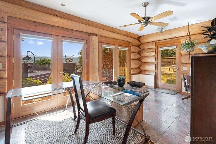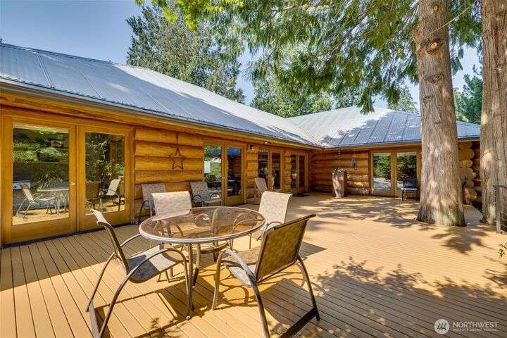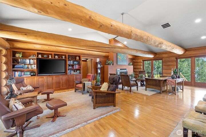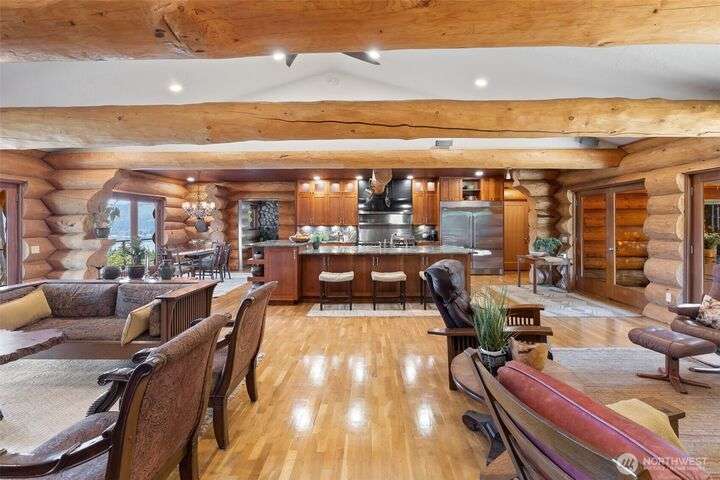 Panoramic Lake Samish & Chuckanut Mountains views from this custom log home built with massive BC timber with guest house perched on 7.85 acres in a park-like setting. Main house includes great room with chef’s kitchen, luxury master suite with fireplace, 3 bedrooms, 2 bathrooms, family room, and loft. Guest house includes studio bedroom, 2 bonus rooms, 2 bathrooms, walk-in closet, and steam shower. Two 2-car garages by the house plus extra 2400 square foot shop space with 3 finished offices. Outdoor living at its finest with multiple decks facing the lake or foothills, 2+/- acre fenced pasture with barn, tree fort, and garden shed. So many special features and finishes you need to see to believe! This is a must-see, one-of-a-kind property.