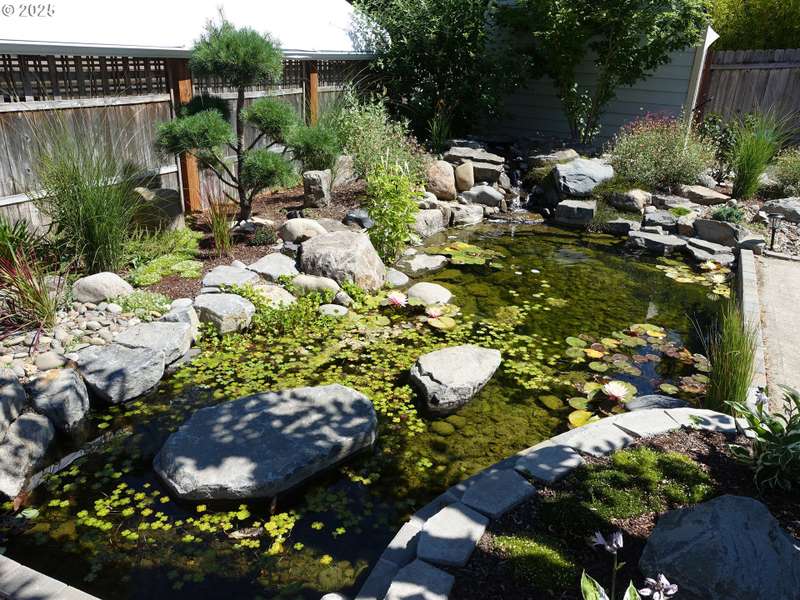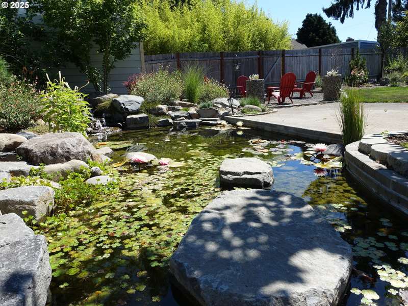 Great Five bedroom home with sunroom/office with access to back patio. Large living room, dining with hutch & French doors to huge patio. Kitchen with large unfinished walk-in pantry & dinette ready for your creativity. Fifth bed on main level doesn't have a closet and can be an additional office, music or home school room, or a lovely sitting room with West facing window. Primary suite with double closets and three generous guest rooms upstairs, two with access to the front veranda. Beautifully landscaped property with large multi-sectioned patio, pond with waterfall, large grass space and raised garden area. Newer furnace & water heater in oversized two car garage. Extra long driveway for multiple cars and room for a RV/boat/trailer. Gated alley access in the back. Central A/C and ceiling fans in each bedroom to keep the entire family cool on warn days.