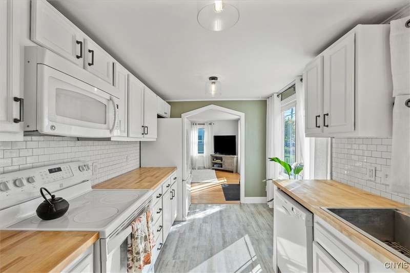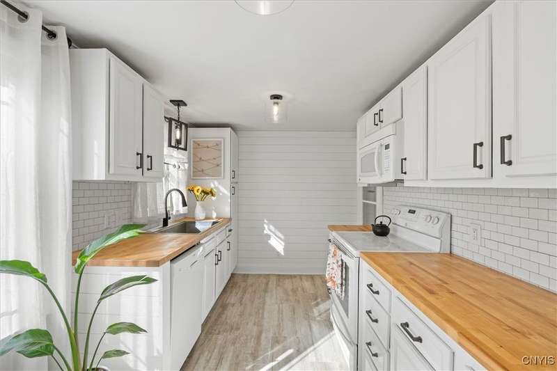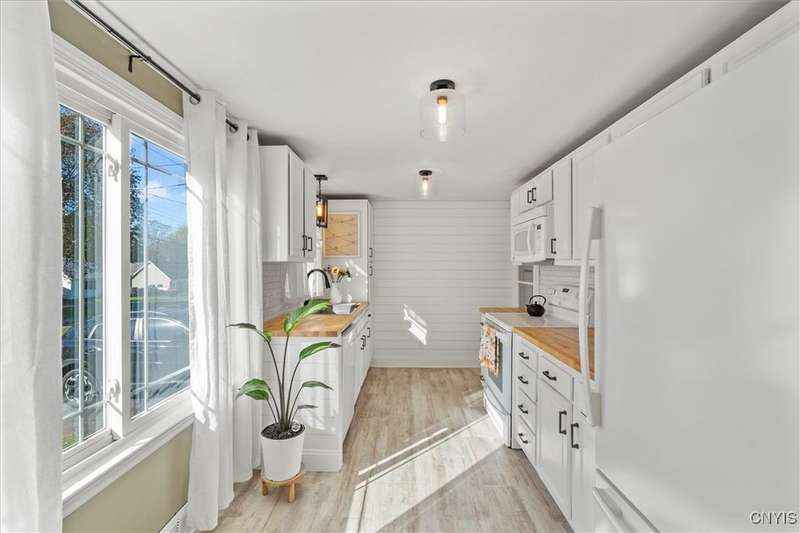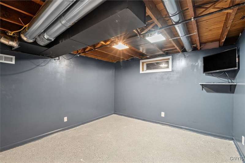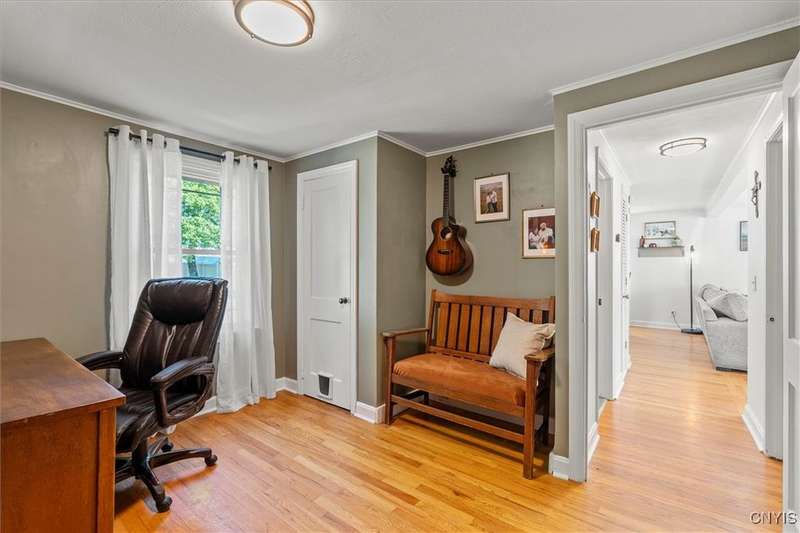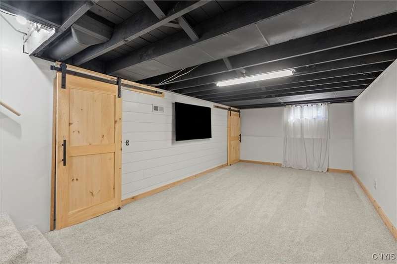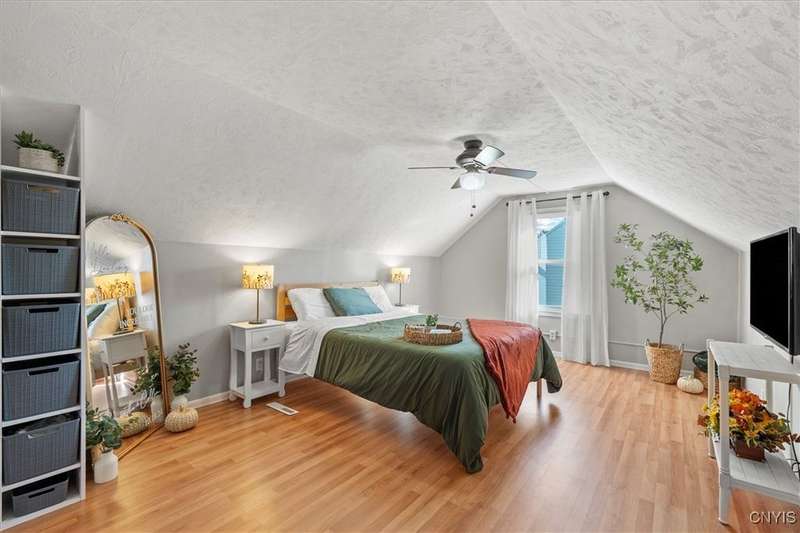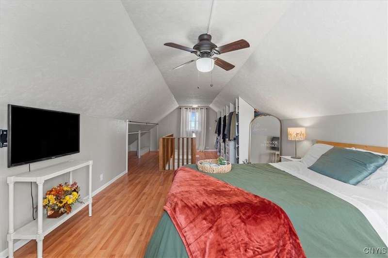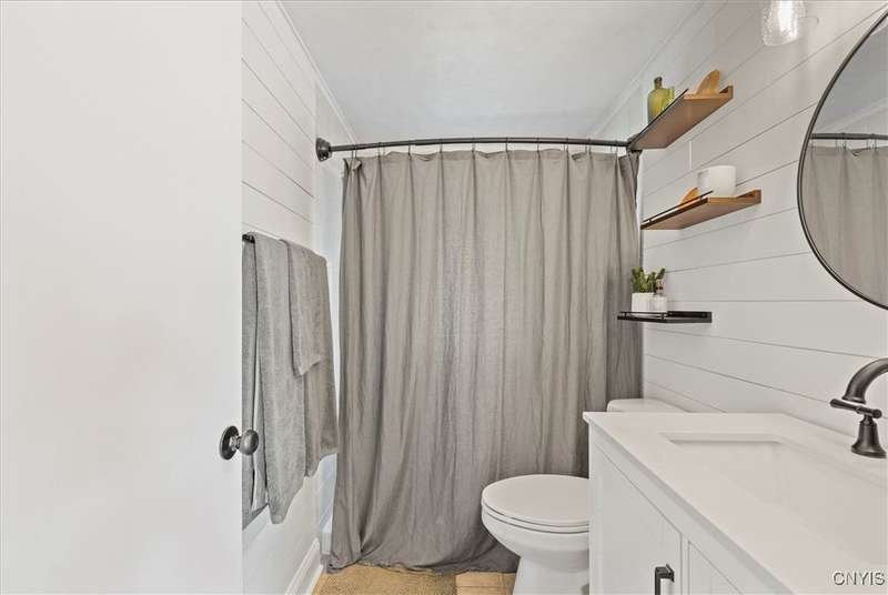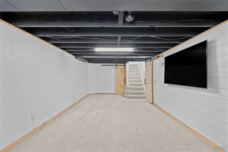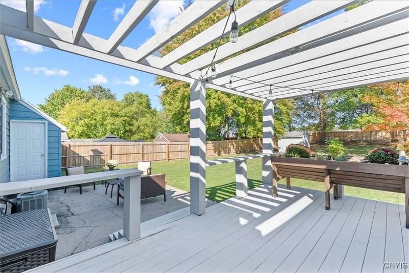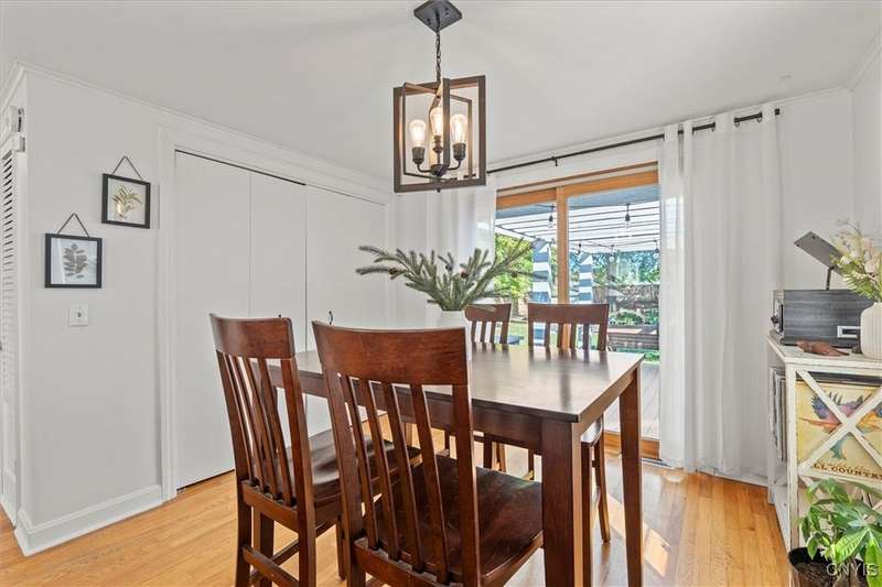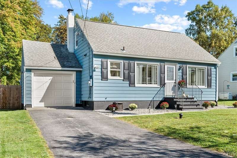 Welcome to 112 Kendall Drive West, a charming Cape Cod home that beautifully balances style and practicality. Situated in the East Syracuse Minoa (ESM) school district, this inviting residence features an open living and dining room area full of large windows that flood the space with natural light. On the first floor, you'll find a flexible bedroom option, ideal for a guest room or a home office, along with a conveniently located full bath. Upstairs, step into the large second-floor bedroom that provides ample closet space and a large retreat to unwind. Sliders seamlessly blend the main living area with a beautiful private backyard, making it perfect for gatherings and casual entertaining. The generously sized, fully fenced yard-complete with a deck and patio is an excellent spot for outdoor fun, gardening, or simply relaxing in the fresh air. The 6ft privacy fence and mature trees create an outdoor oasis that is all your own. This home also boasts plenty of storage options, including a spacious garage and a large shed, perfect for tools, seasonal items, or hobbies. Downstairs, you will love the finished basement, complete with new carpet and sliding barn doors. This space offers the potential to be used as an additional 3rd bedroom, movie room or a man cave! The flexibility of this space is endless as there is also a second room that offers the potential for a home gym or more storage. Location is key, as this home is just minutes from downtown Syracuse, Hospitals, Wegmans, shopping centers, and a variety of dining options. Don't miss out on the chance to fall in love and call this house home. Offered with a Home Warranty!