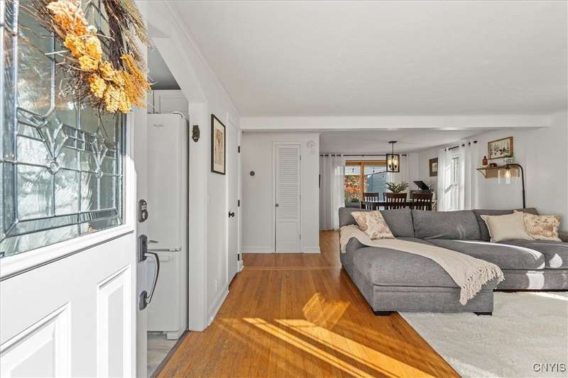 Welcome to 112 Kendall Drive West, a charming Cape Cod home that beautifully balances style and practicality. Situated in the East Syracuse Minoa (ESM) school district, this inviting residence features an open living and dining room area full of large windows that flood the space with natural light. On the first floor, you'll find a flexible bedroom option, ideal for a guest room or a home office, along with a conveniently located full bath. Upstairs, step into the large second-floor bedroom that provides ample closet space and a large retreat to unwind. Sliders seamlessly blend the main living area with a beautiful private backyard, making it perfect for gatherings and casual entertaining. The generously sized, fully fenced yard-complete with a deck and patio is an excellent spot for outdoor fun, gardening, or simply relaxing in the fresh air. The 6ft privacy fence and mature trees create an outdoor oasis that is all your own. This home also boasts plenty of storage options, including a spacious garage and a large shed, perfect for tools, seasonal items, or hobbies. Downstairs, you will love the finished basement, complete with new carpet and sliding barn doors. This space offers the potential to be used as an additional 3rd bedroom, movie room or a man cave! The flexibility of this space is endless as there is also a second room that offers the potential for a home gym or more storage. Location is key, as this home is just minutes from downtown Syracuse, Hospitals, Wegmans, shopping centers, and a variety of dining options. Don't miss out on the chance to fall in love and call this house home. Offered with a Home Warranty! Multiple offers received. Offers due Sunday 10/5 at 3:00pm
